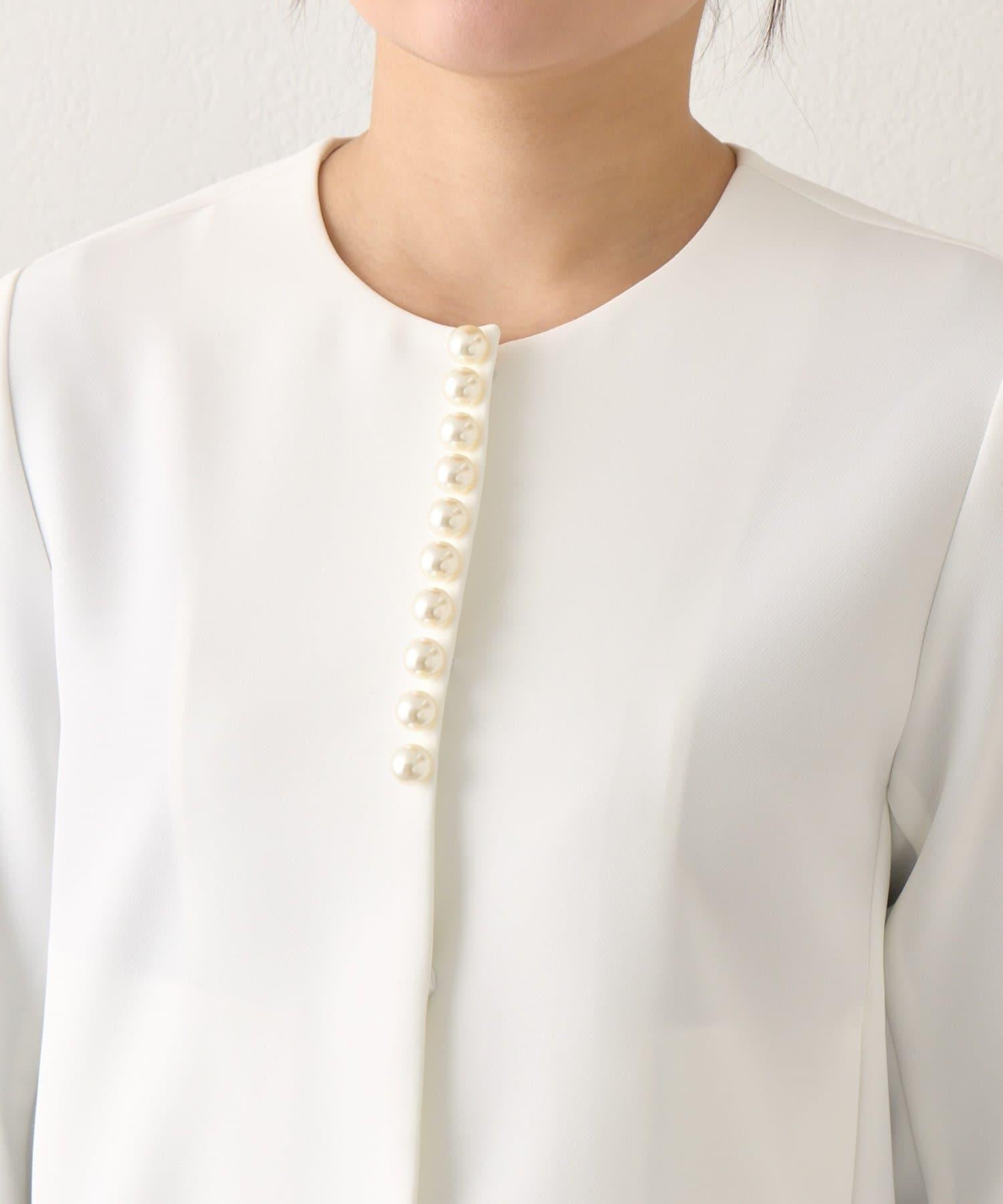 雙層面料 前襟珍珠裝飾 夾克外套