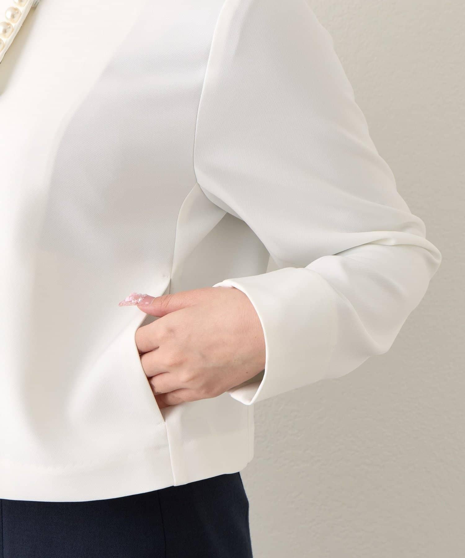 整潔優雅的無領夾克,鑲有華麗的珍珠。