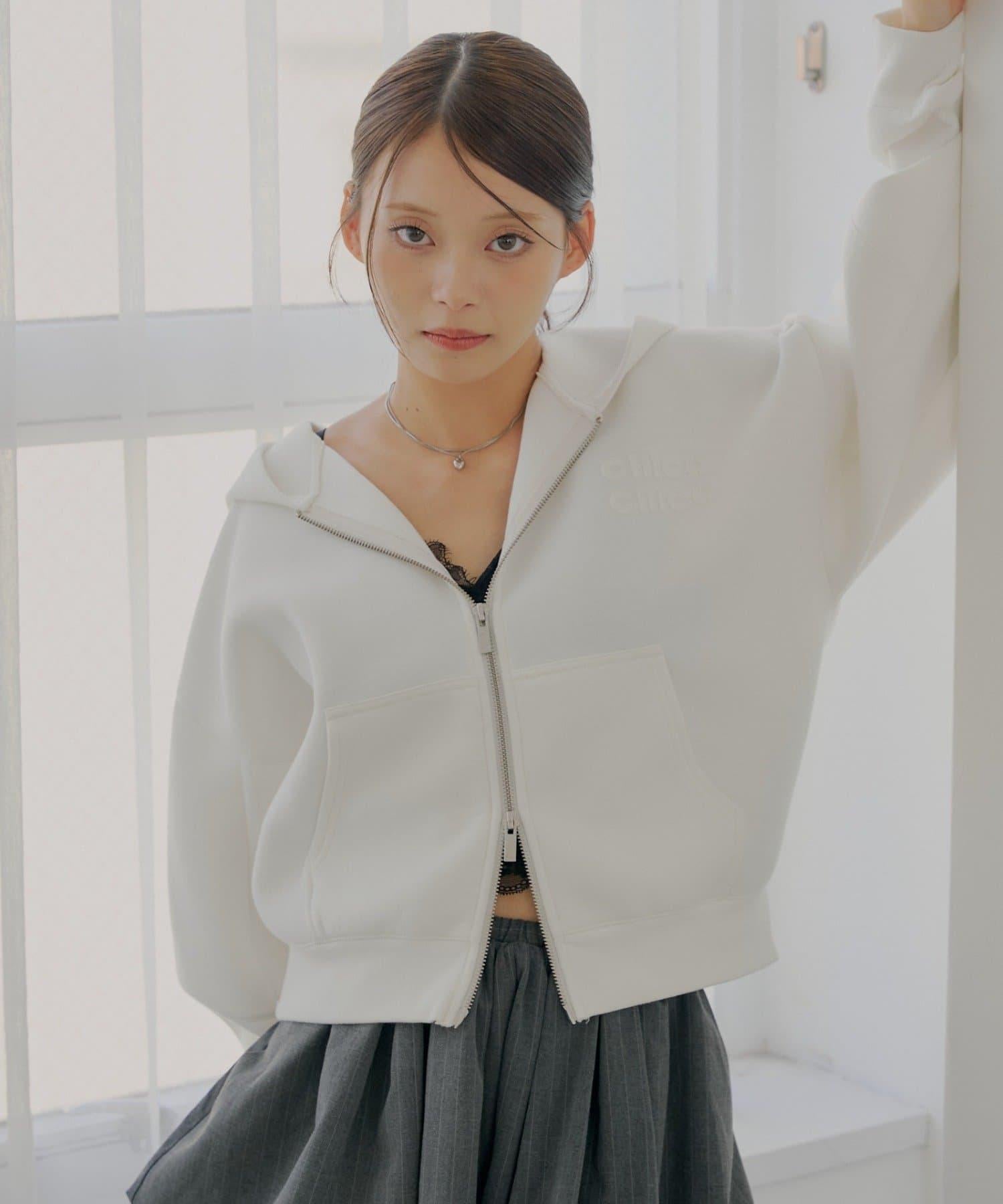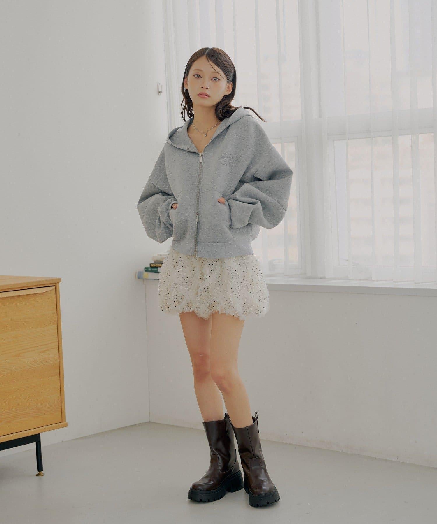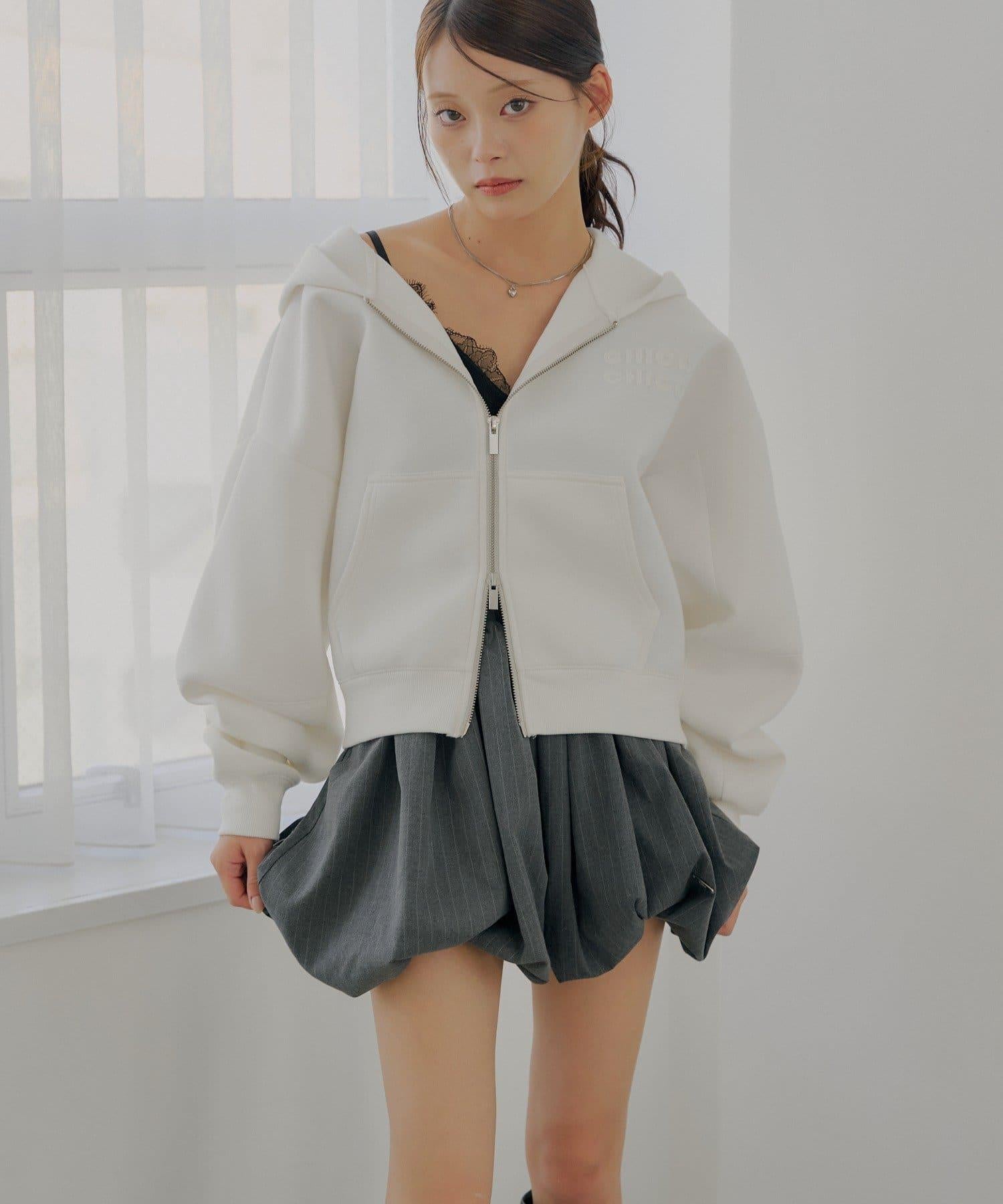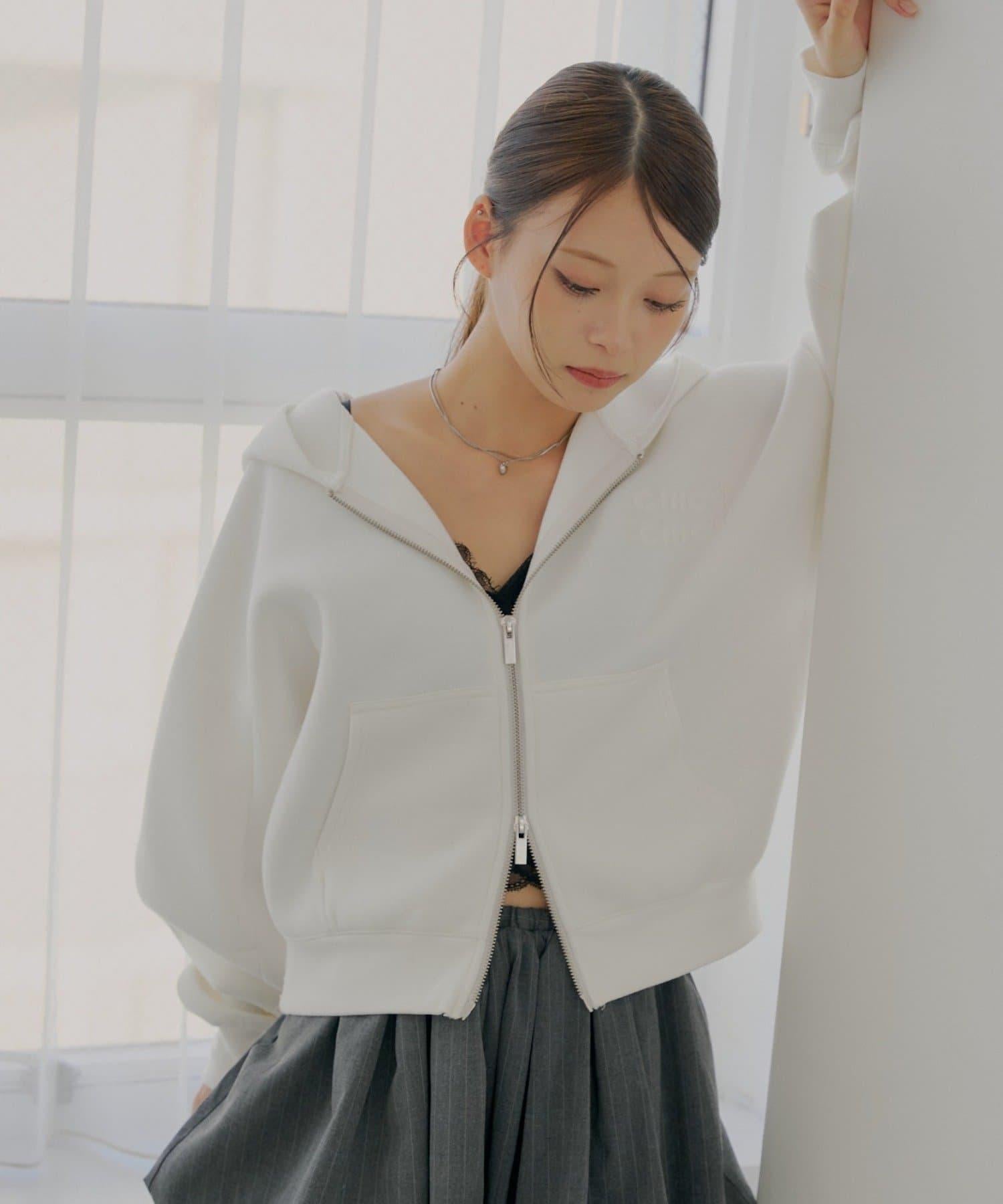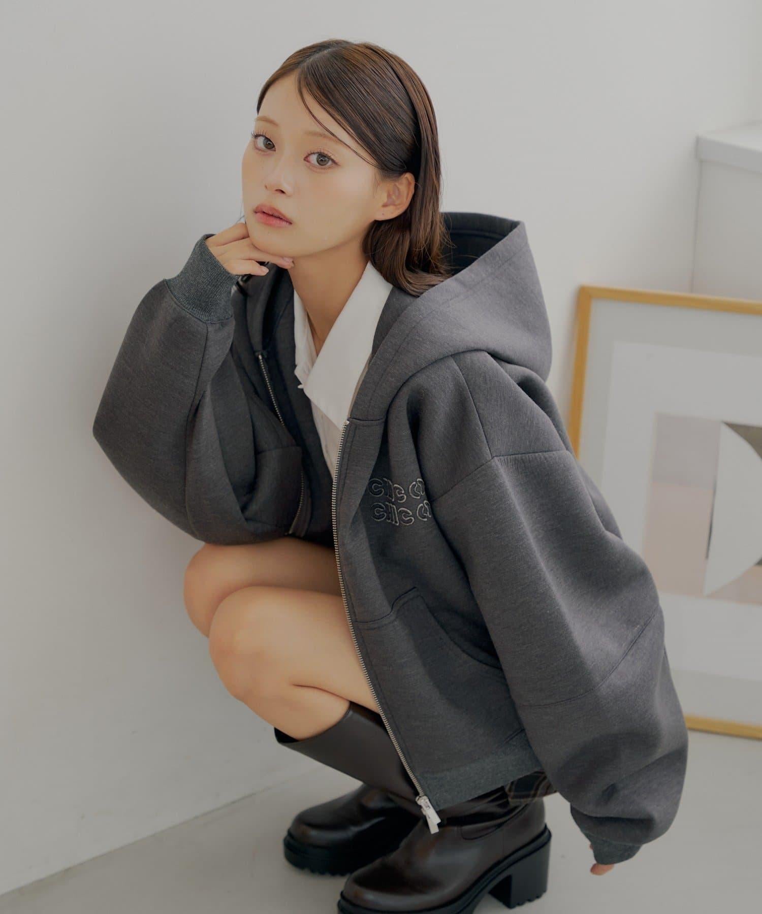 雙拉鍊寬鬆袖連帽衛衣