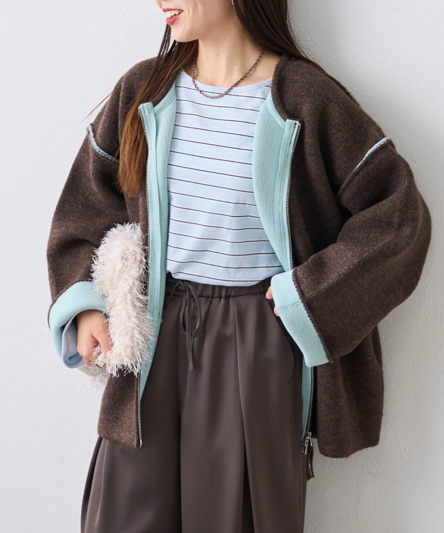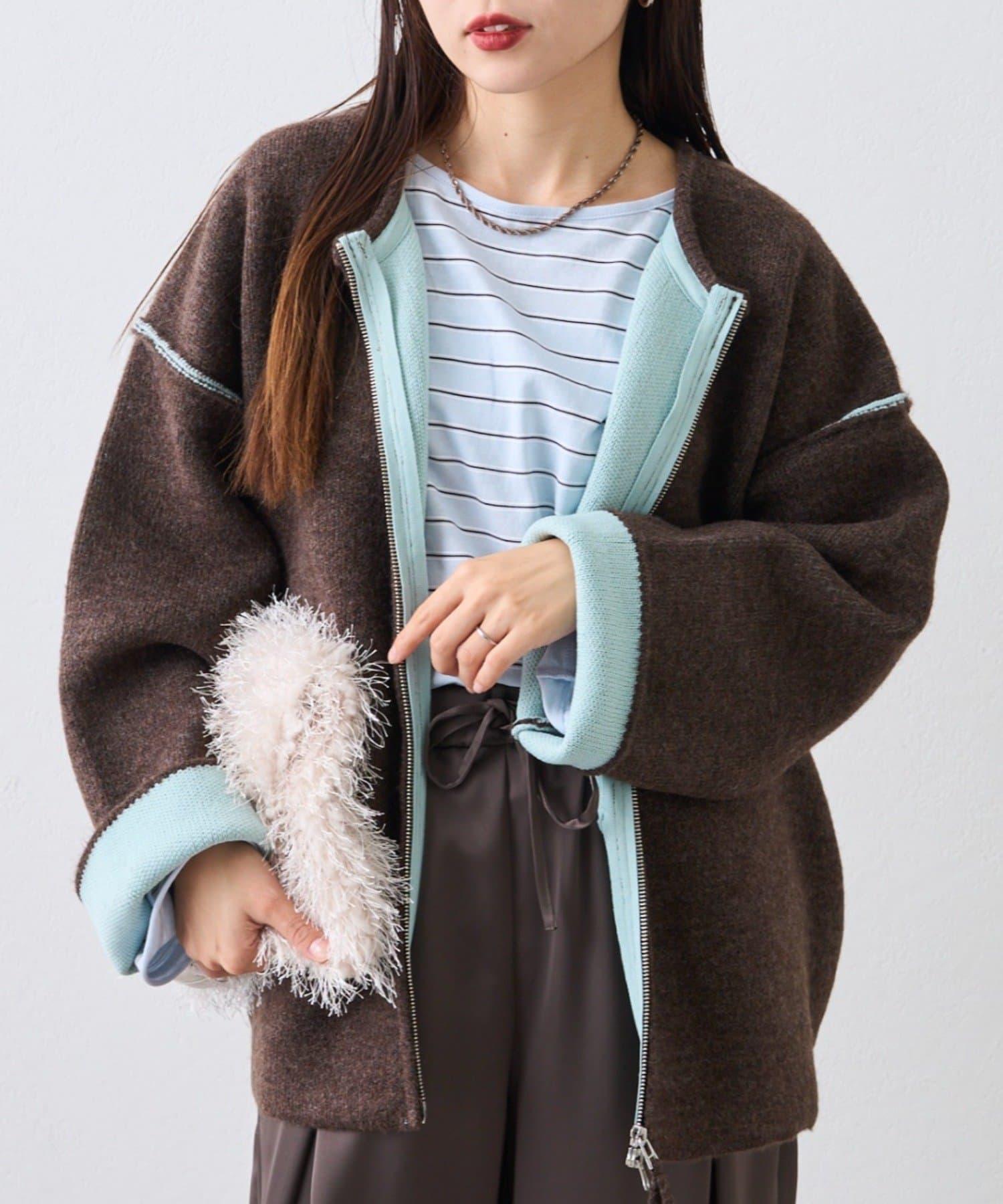 配色設計看起來很棒!柔軟蓬鬆的針織外套