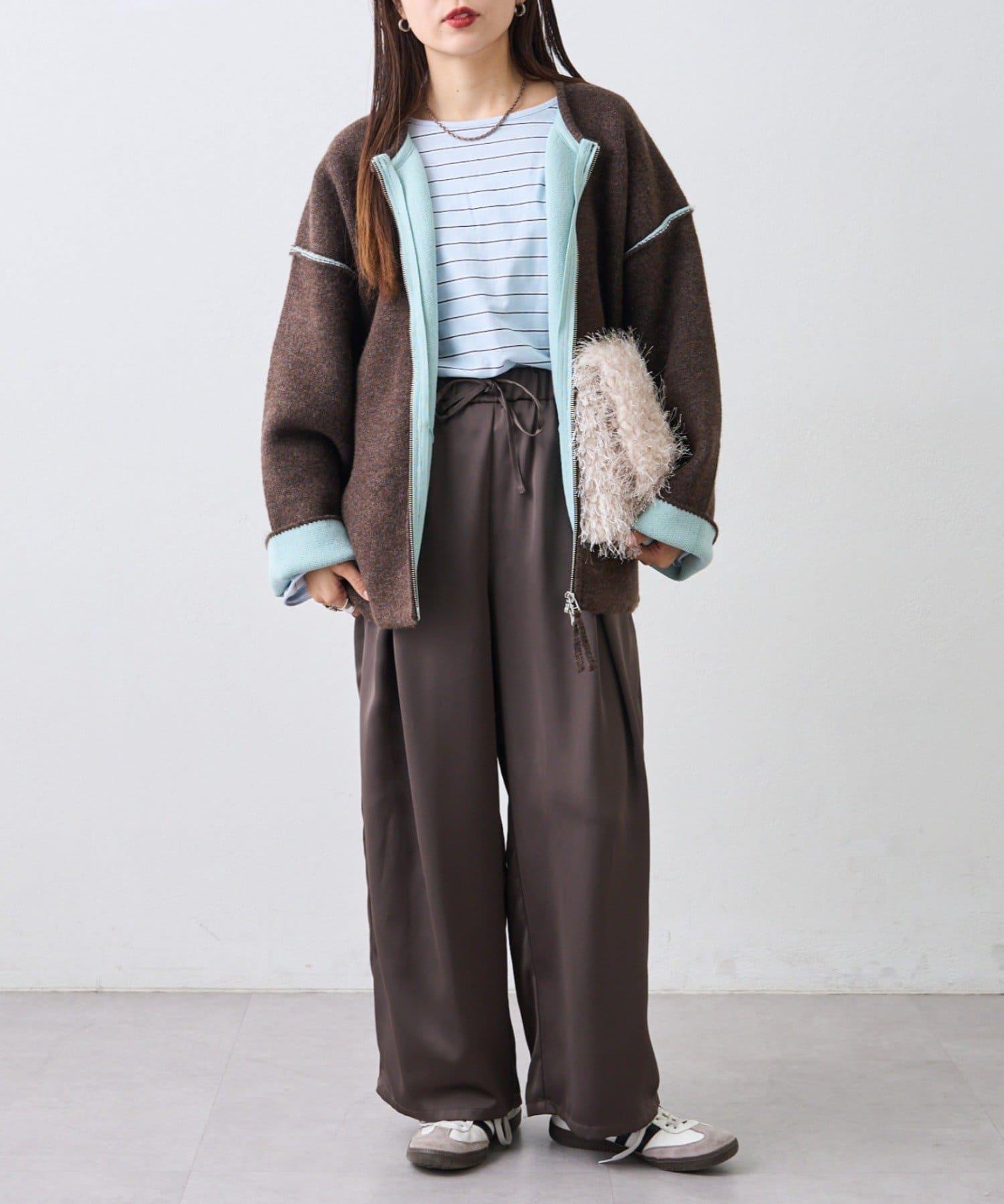 拉開拉鍊或將袖子輕輕向後摺疊時,可以瞥見襯裡的顏色,起到點睛之筆的作用。