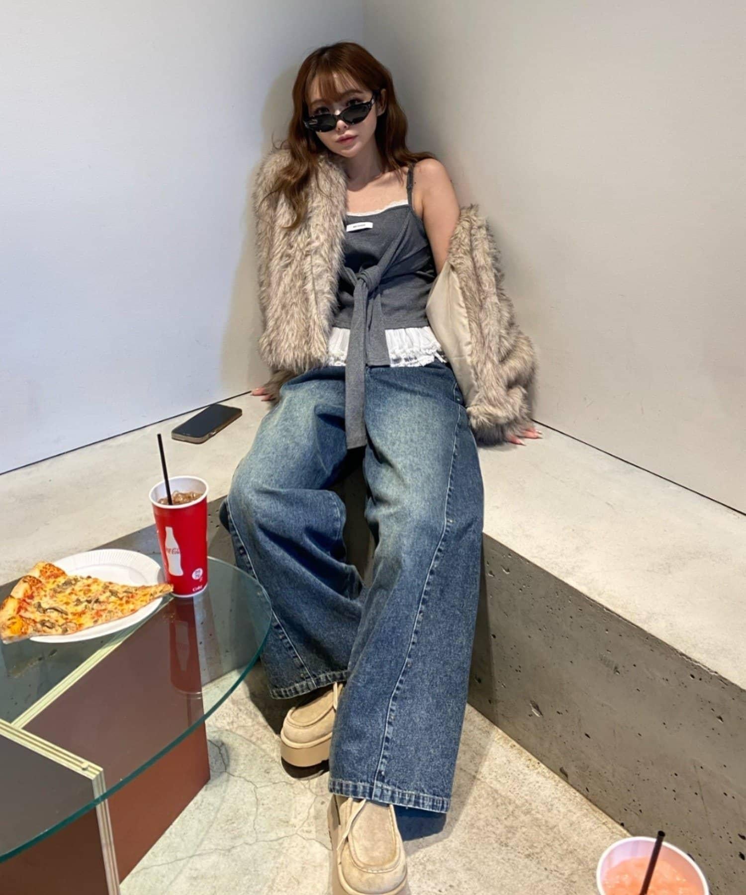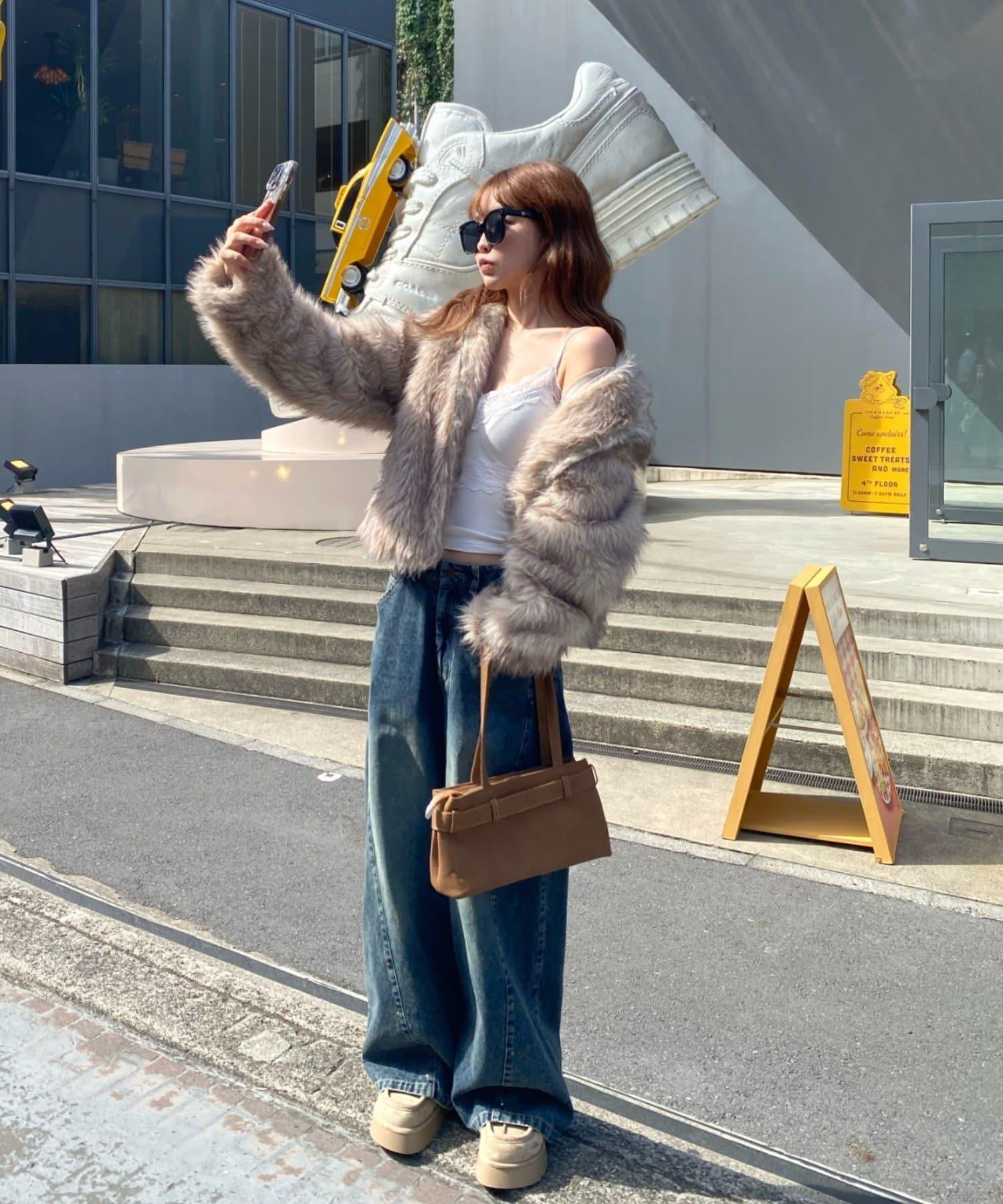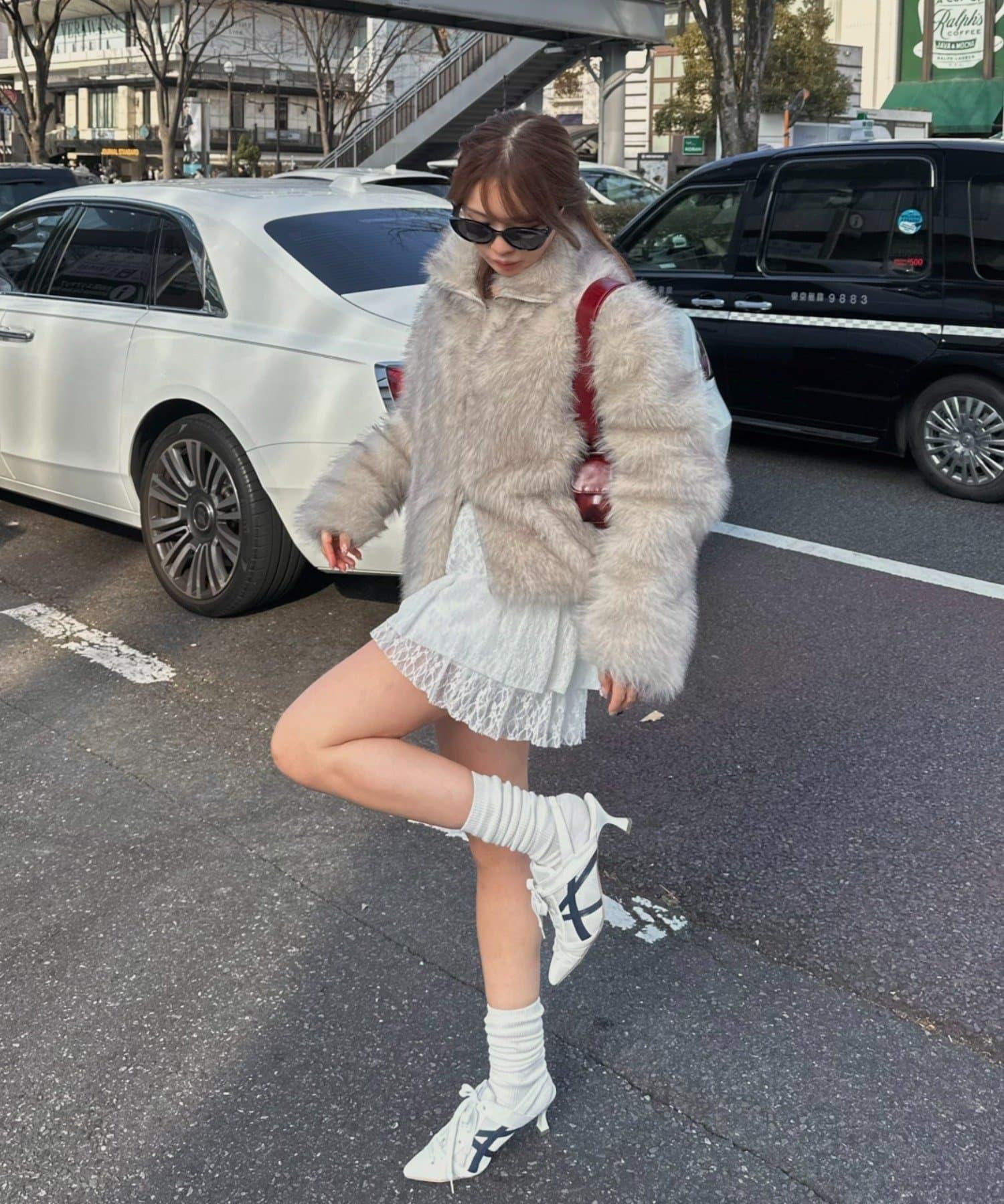 雙拉鍊從底部拉開,所以它是一件百搭的外套,當然可以搭配牛仔褲,也可以搭配迷你打底褲和長裙。