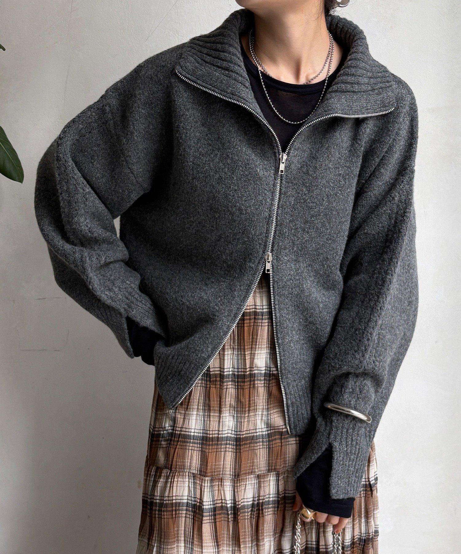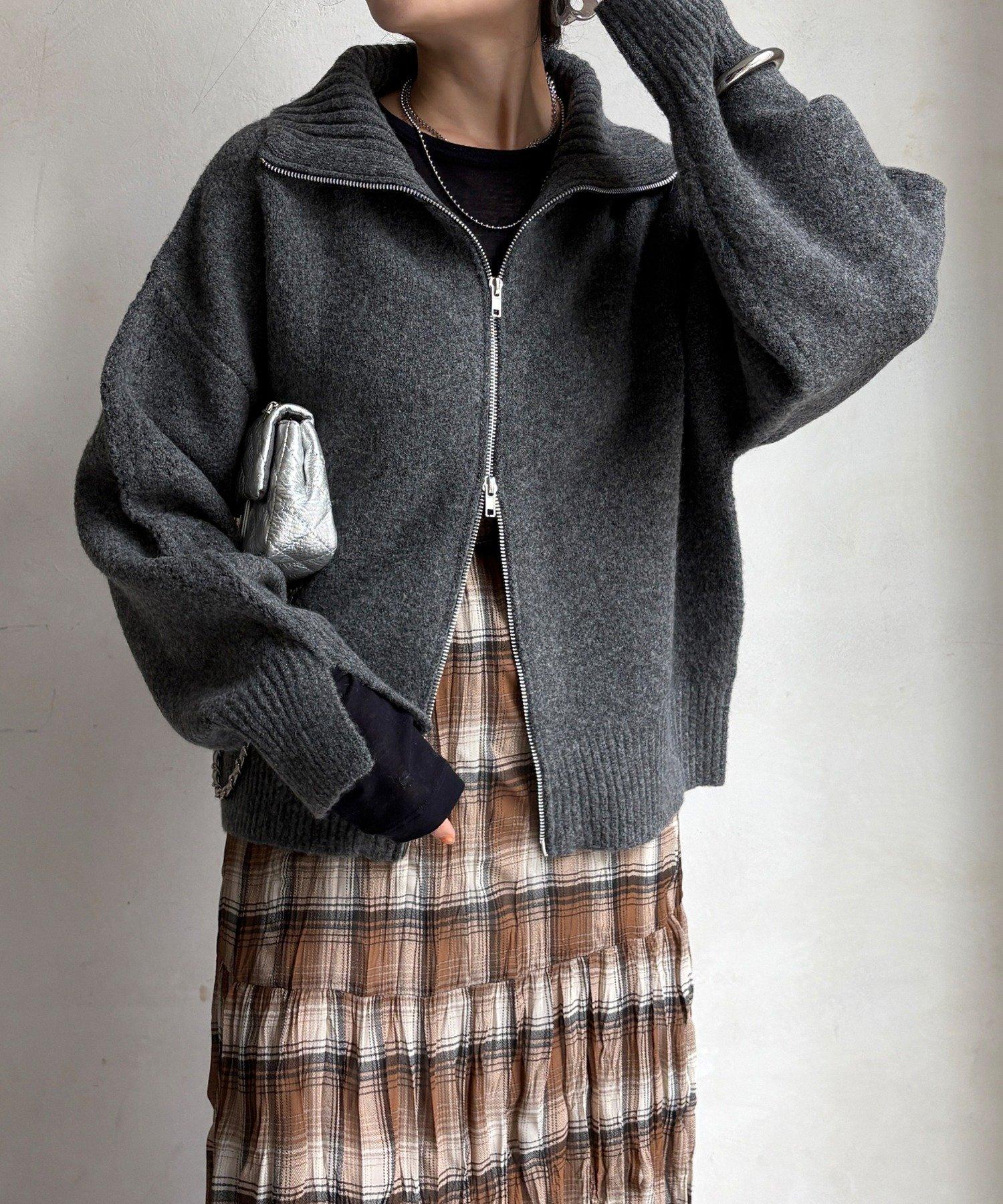 雙拉鍊針織夾克