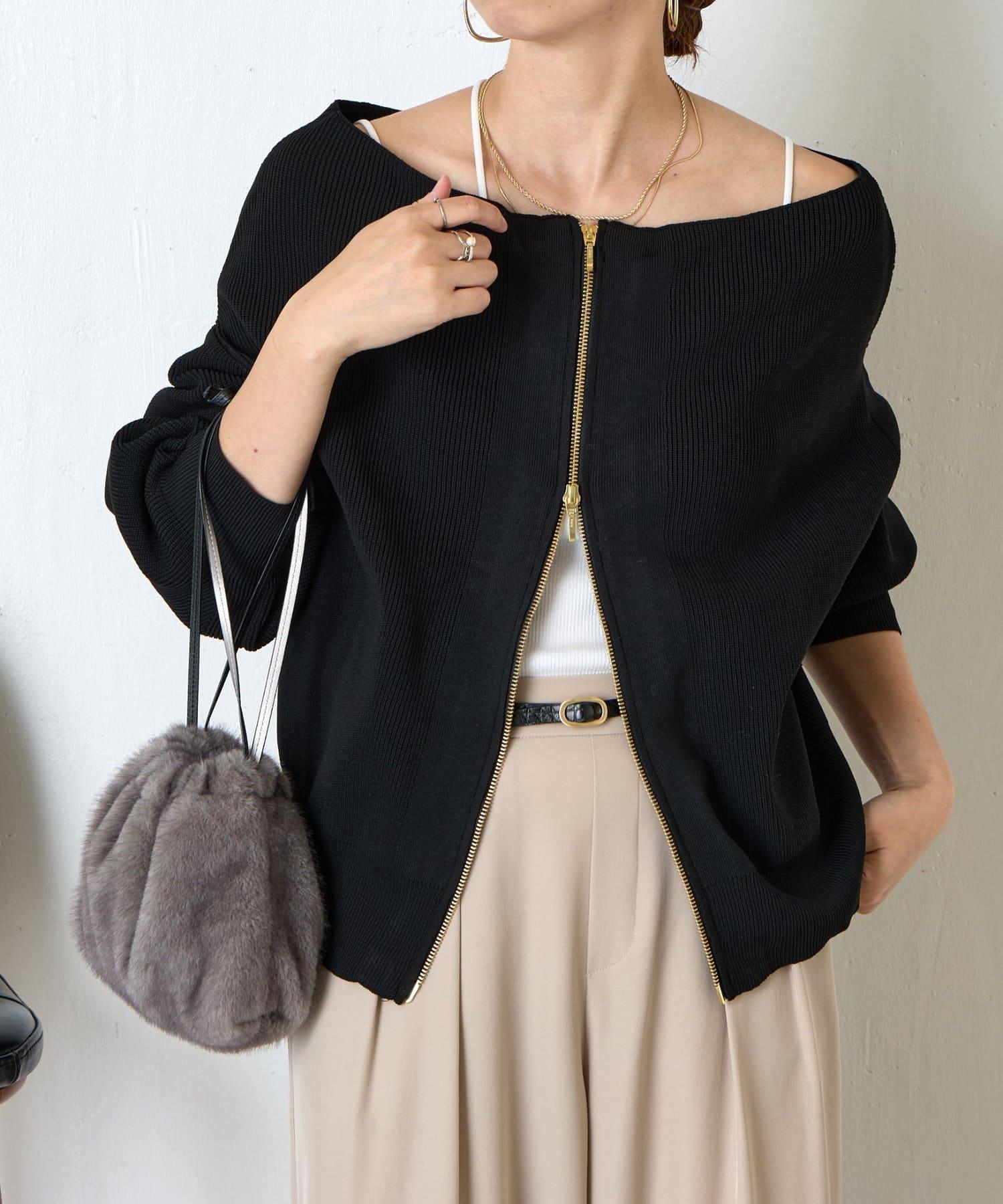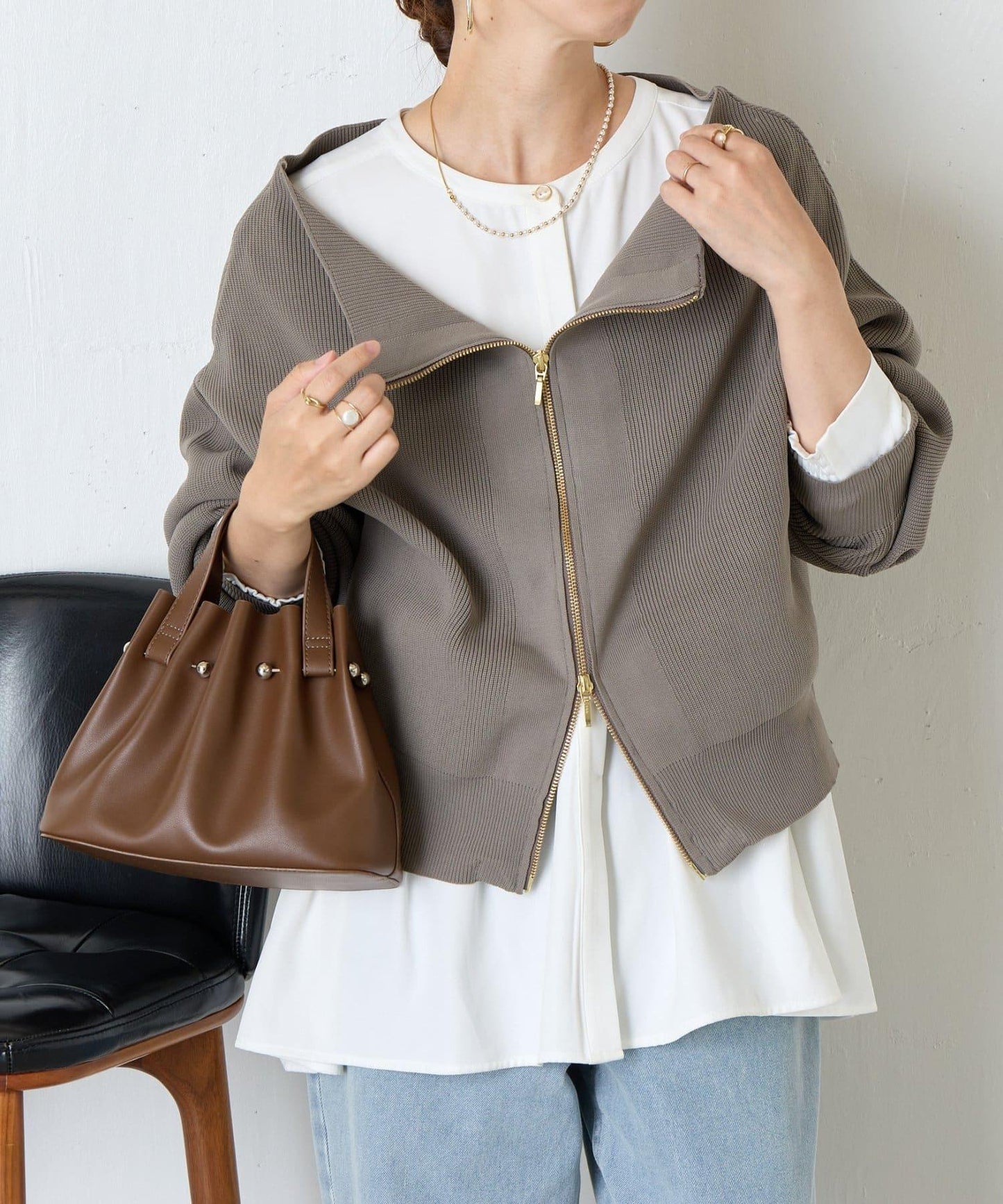 簡潔的雙拉鍊設計,採用彈力羅紋面料。