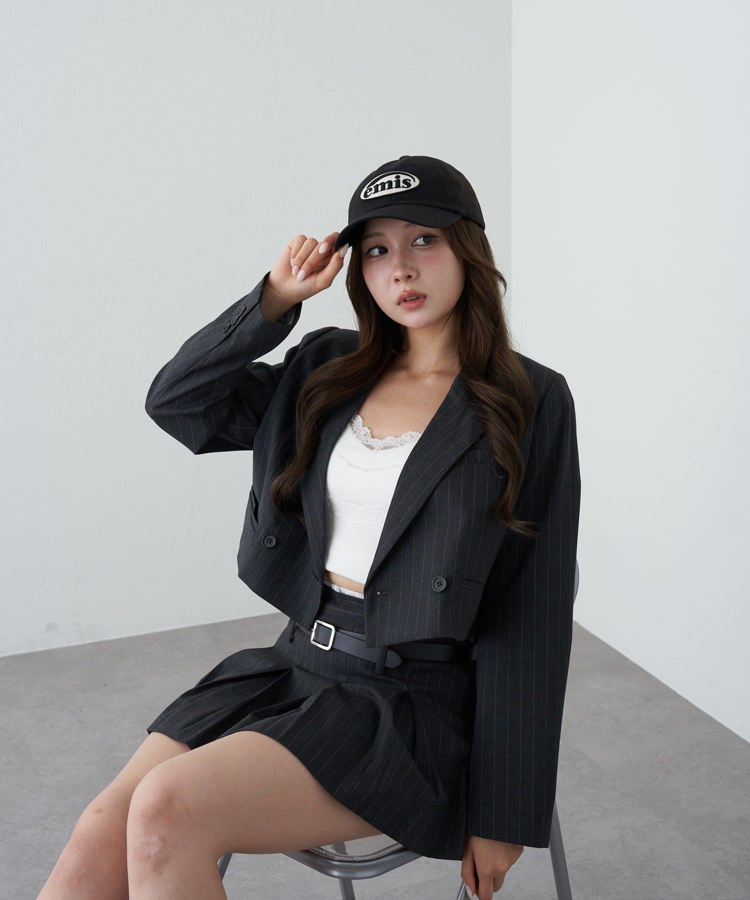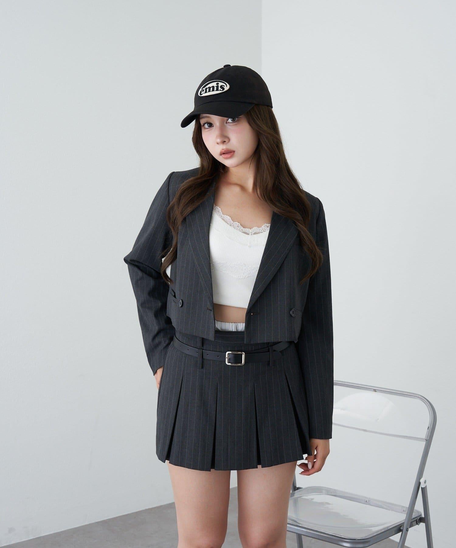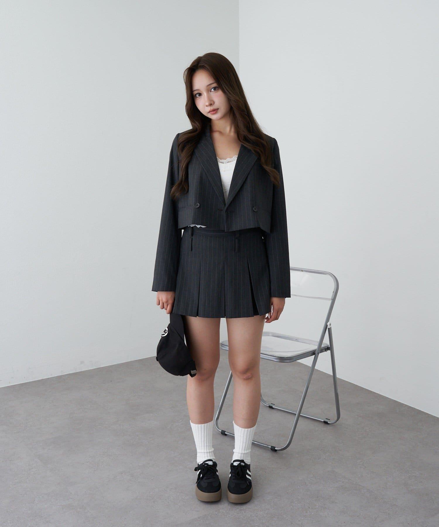 外衣 / 有領 / 夾層 / 條紋 / 迷你長款