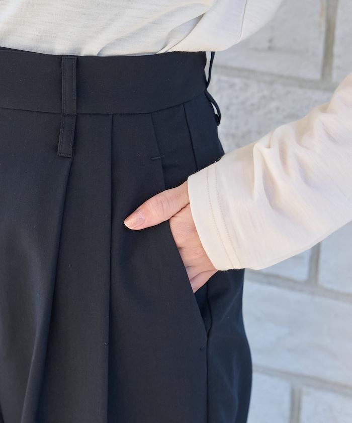 腰部的兩處收褶勾勒出整齊的腰線,可搭配上衣穿著。