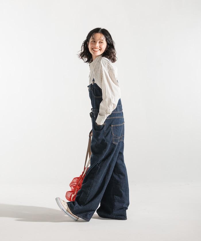 吊帶褲也可以當下裝穿,只要去掉吊帶,讓上半身垂下來,再用繩帶收緊腰部即可。