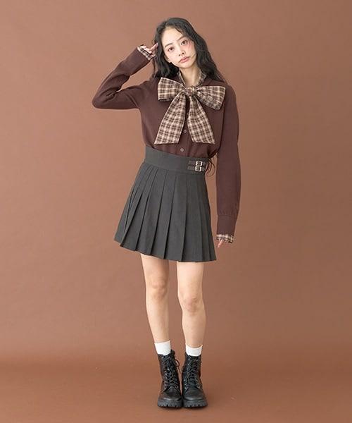腰側飾有兩條迷你腰帶!有純黑色和格紋可供選擇。