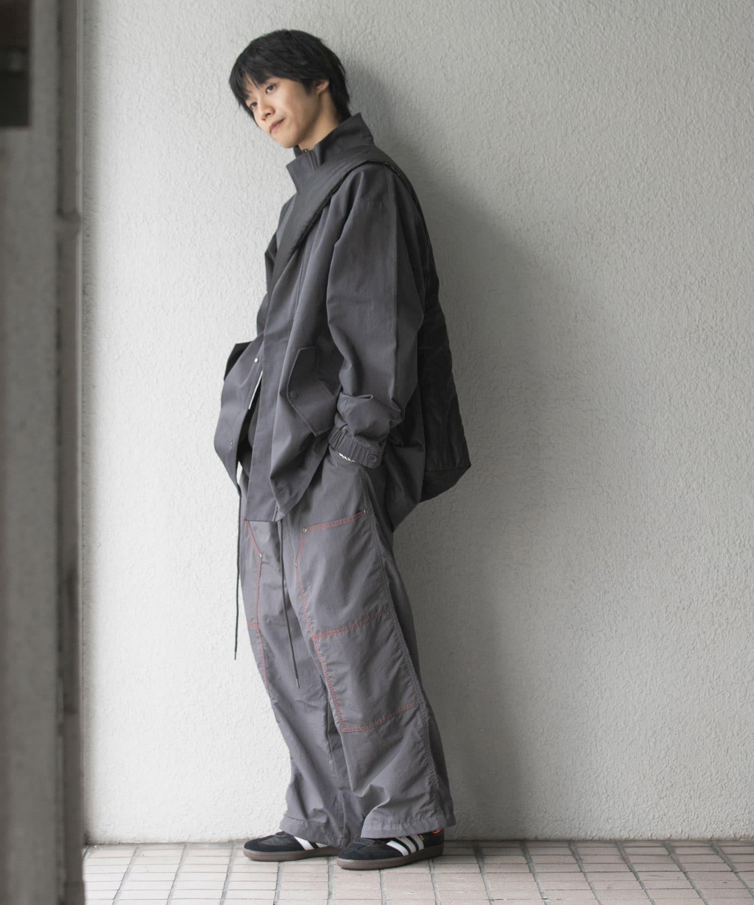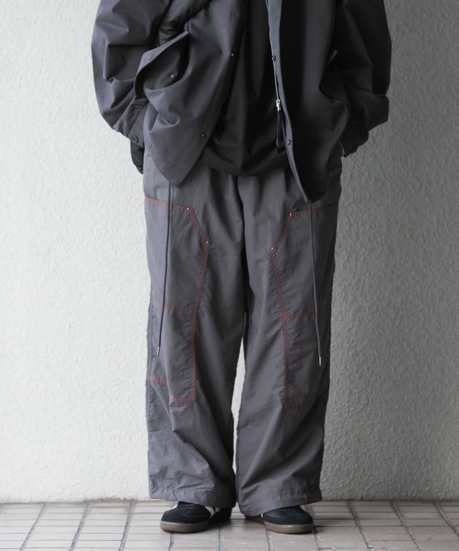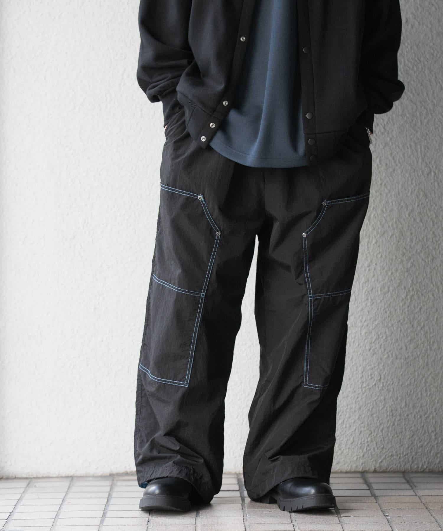 雙膝款式的工裝褲採用運動型尼龍面料。