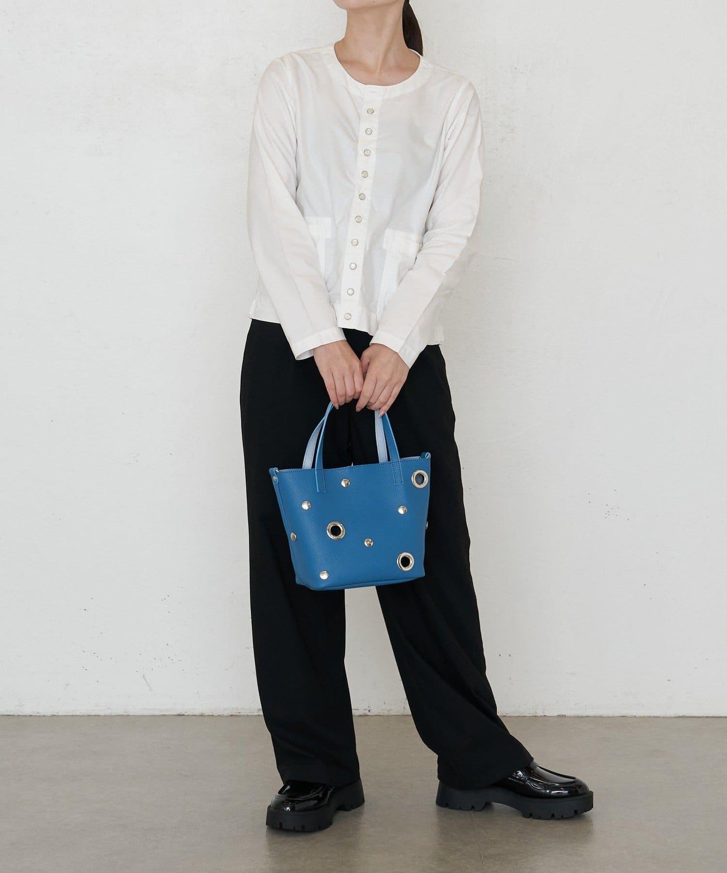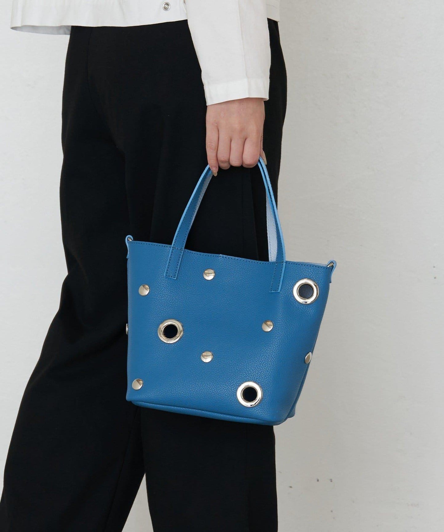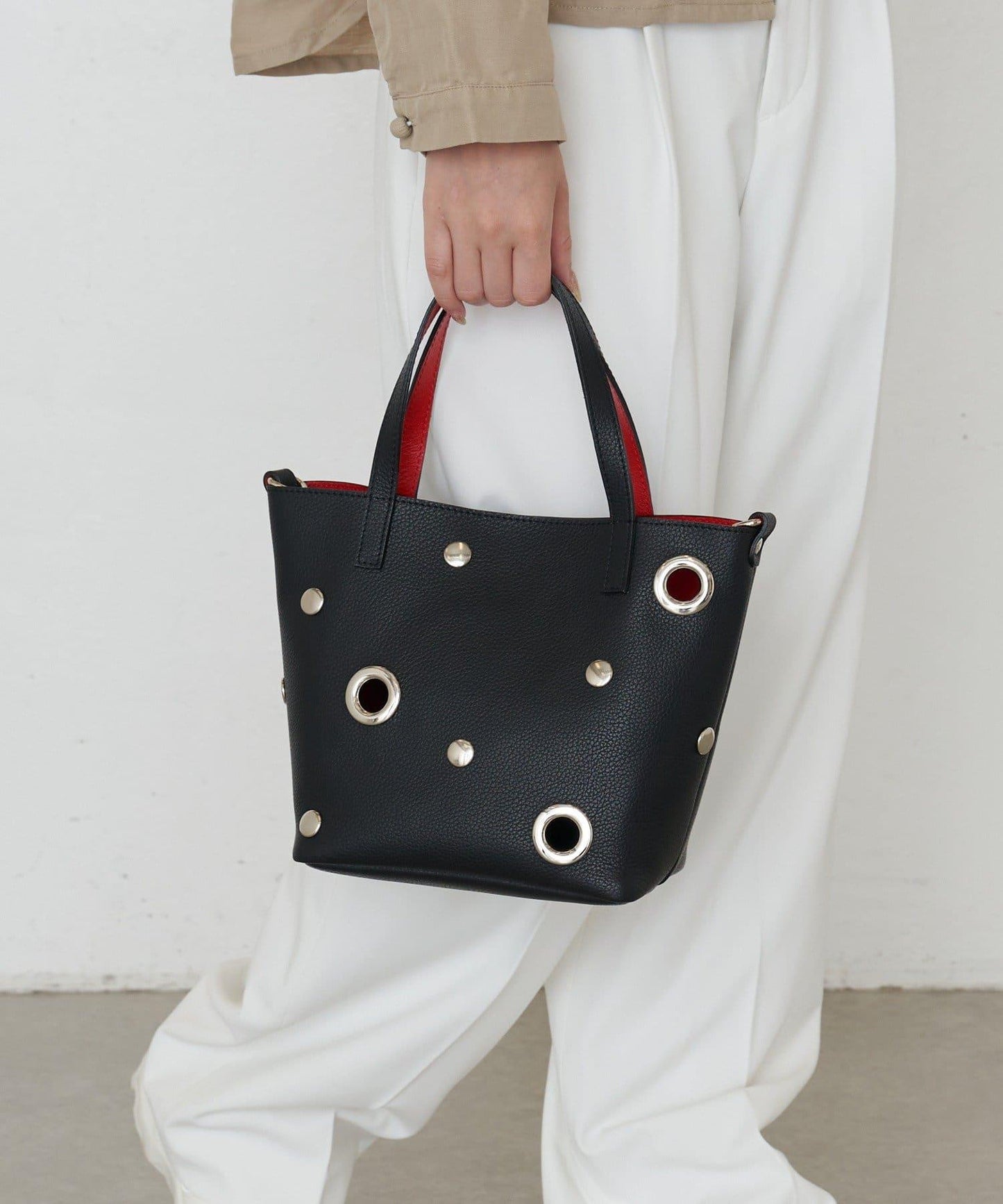 基本的手提包造型加上金屬配件,更顯前衛個性。