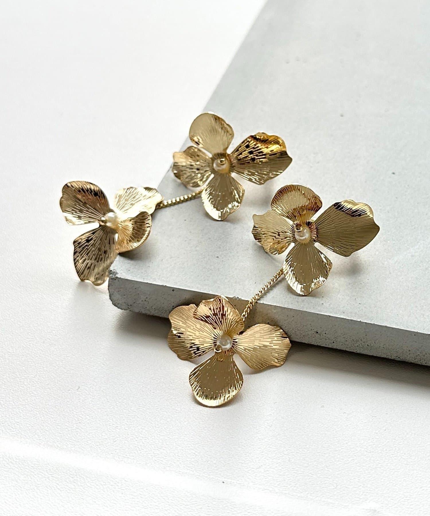 優雅的金屬花和珍珠打造出迷人的外觀。