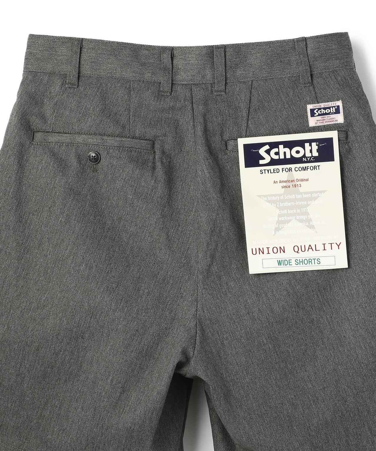 這款雙襉短褲由 TC 斜紋布製成。尺寸略寬鬆。口袋布上印有肖特標識。肖特是騎手夾克的代名詞,其歷史由歐文-肖特(Irving Schott)和傑克-肖特(Jack Schott)兄弟於 1913 年在紐約開始。 他們👍初是一家雨衣工廠,1928 年推出了 "Perfecto "系列騎手夾克,這是世界上👍款使用前拉鍊的夾克。 在當時只有紐扣前襟夾克的時代,這是一款劃時代的夾克,對後來的騎手歷史產生了重大影響。 20 世紀 50 年代推出的夾克前部星形鉚釘讓肖特的名字享譽全球。