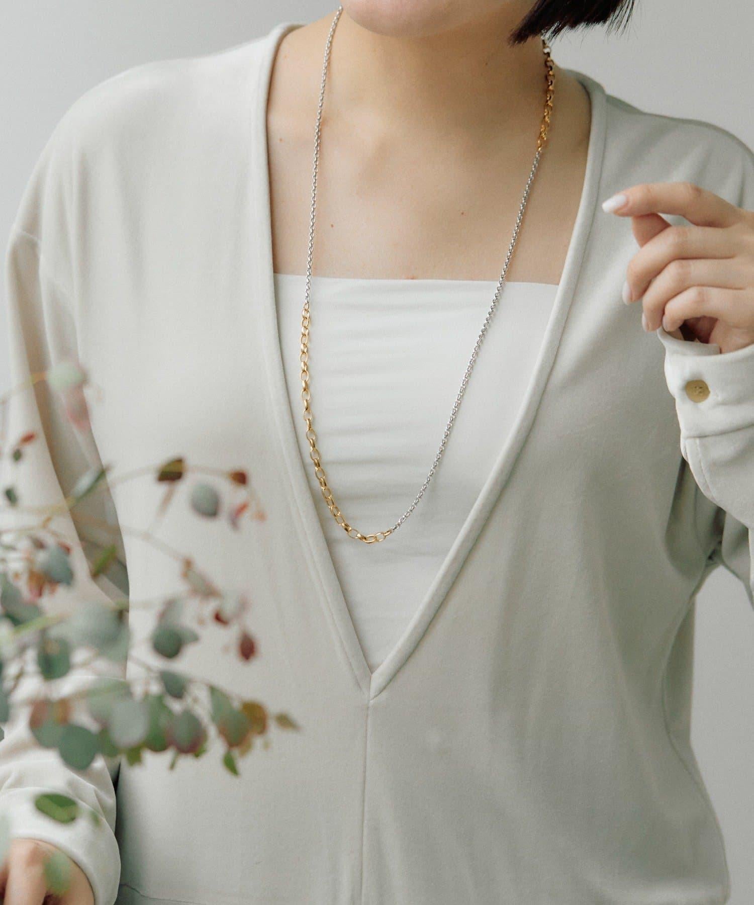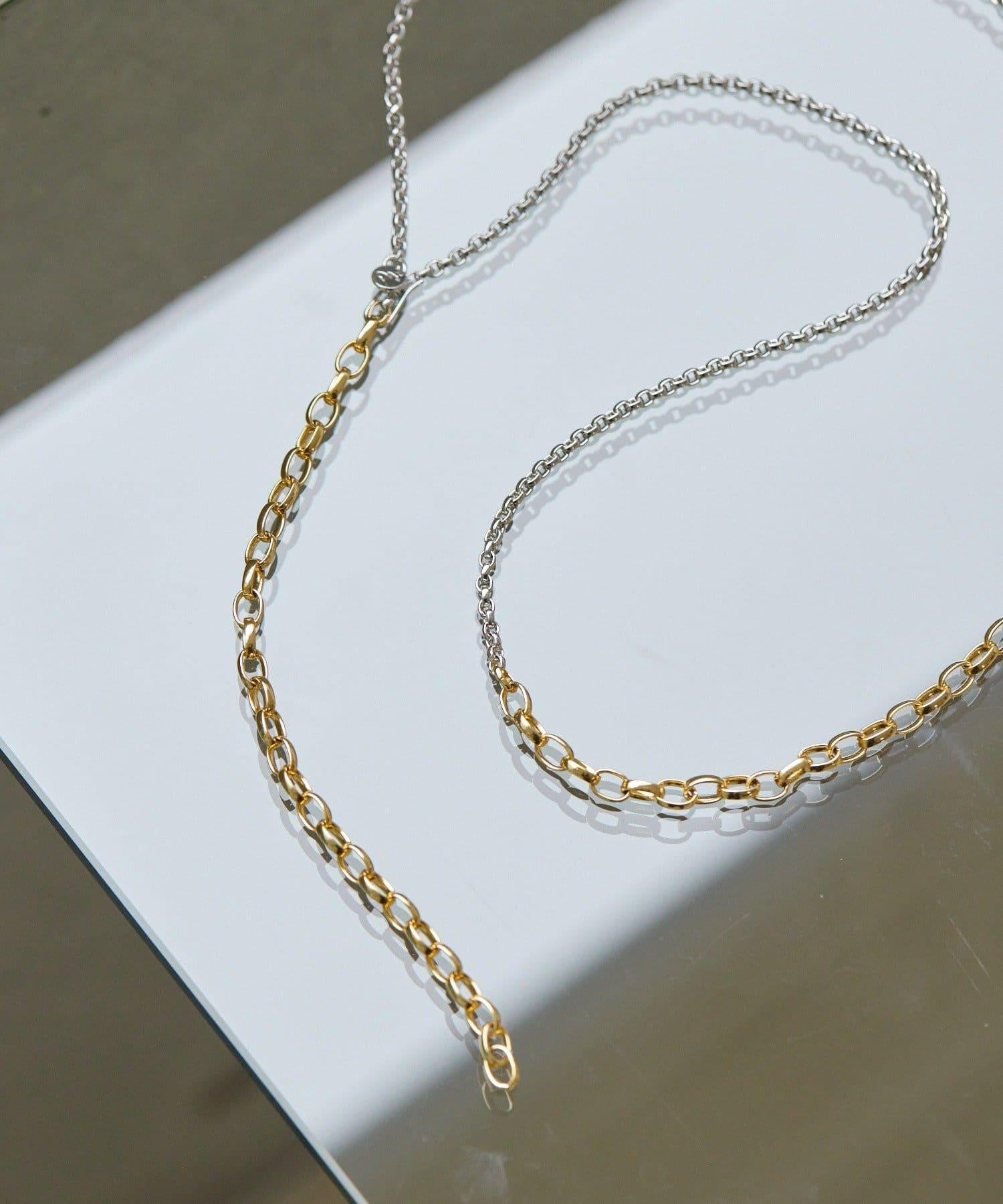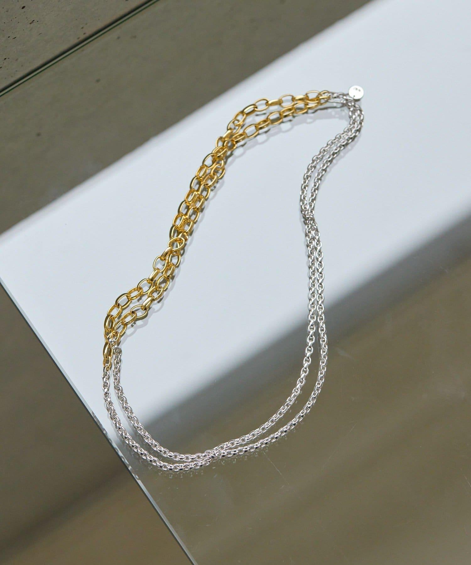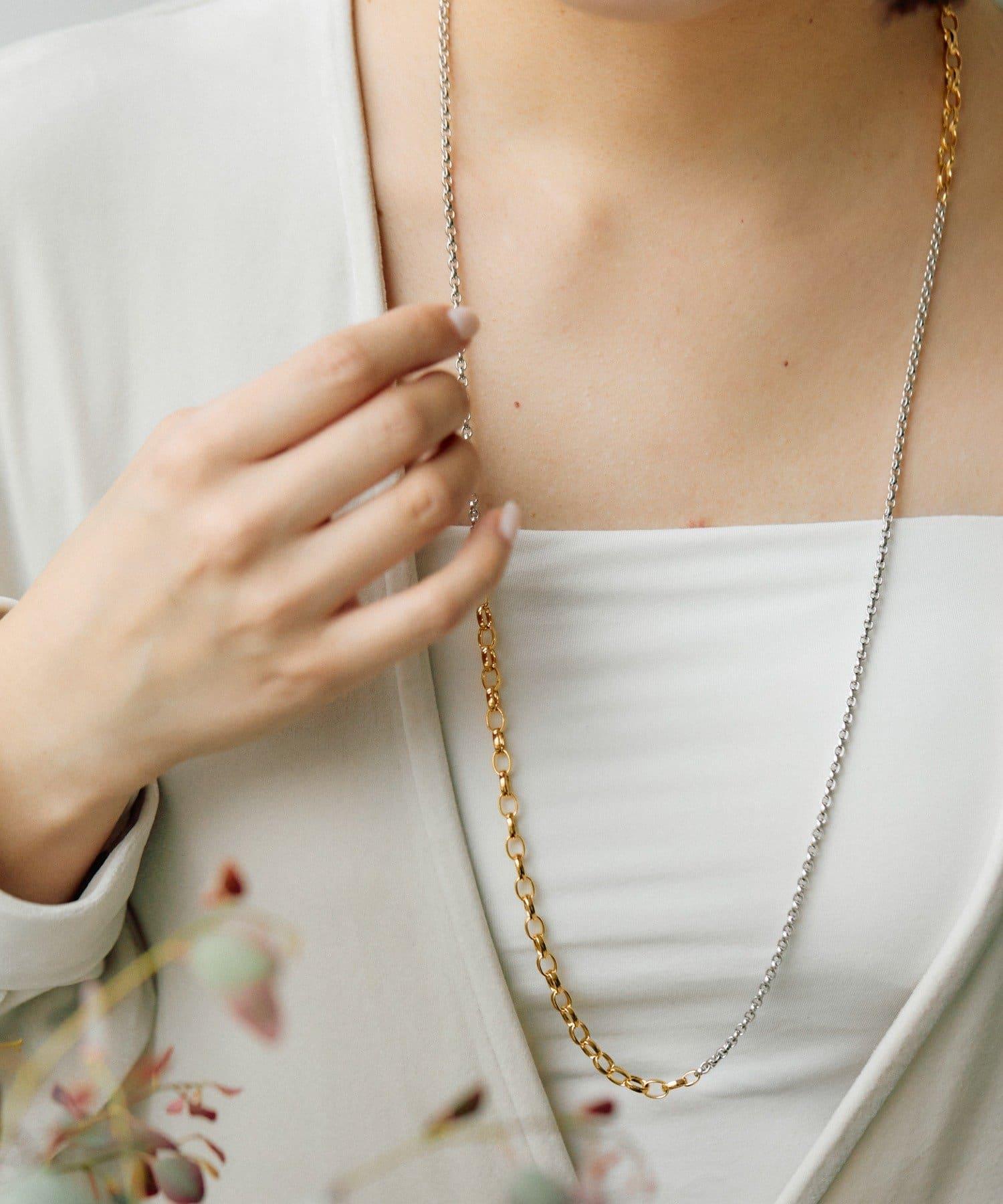 這是一款鏈條項鍊,有兩種不同顏色的鏈條。