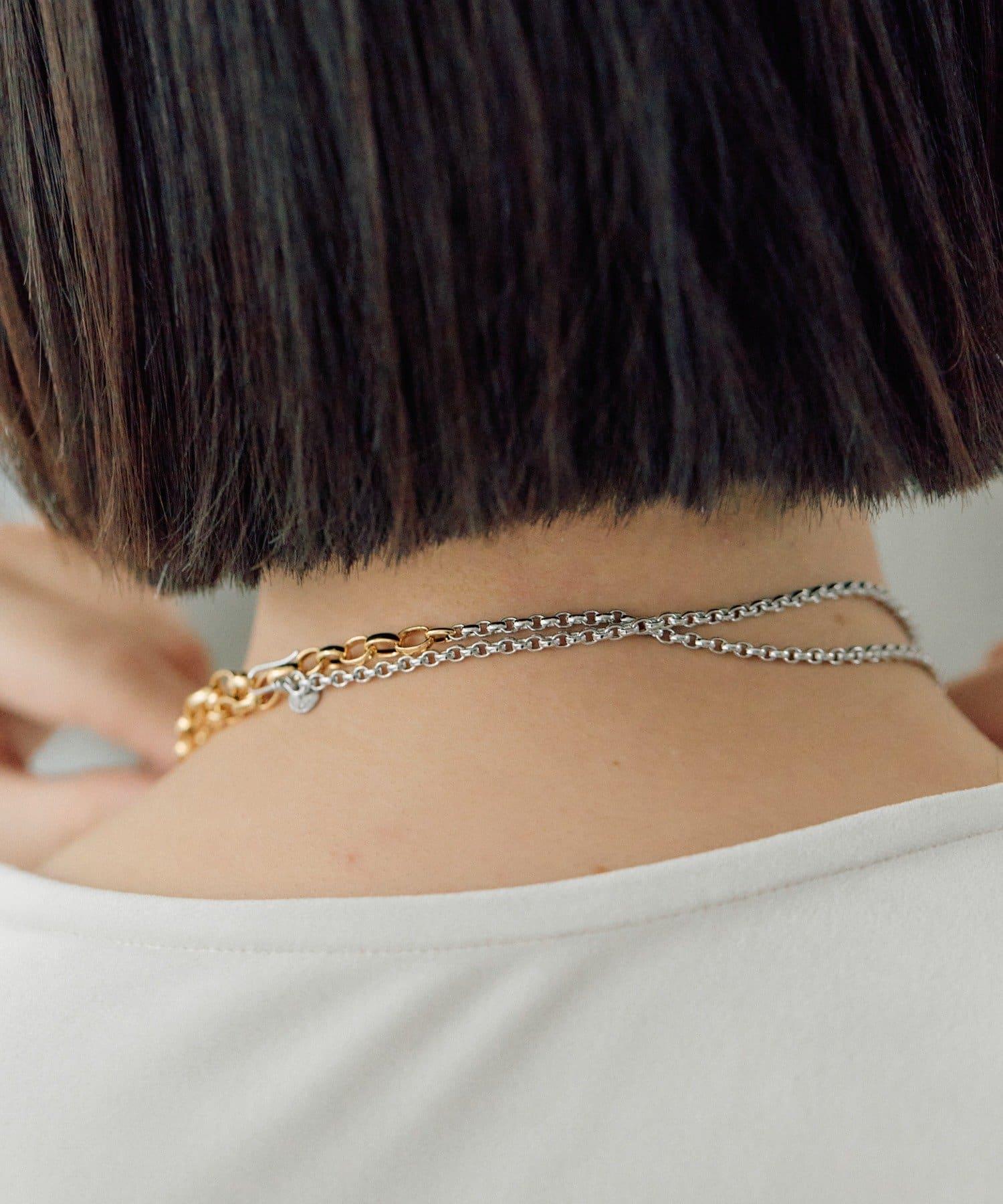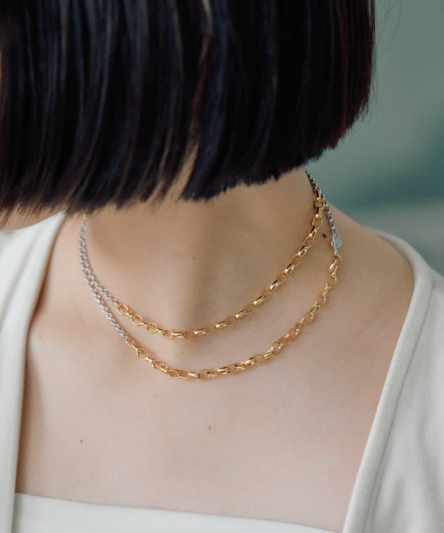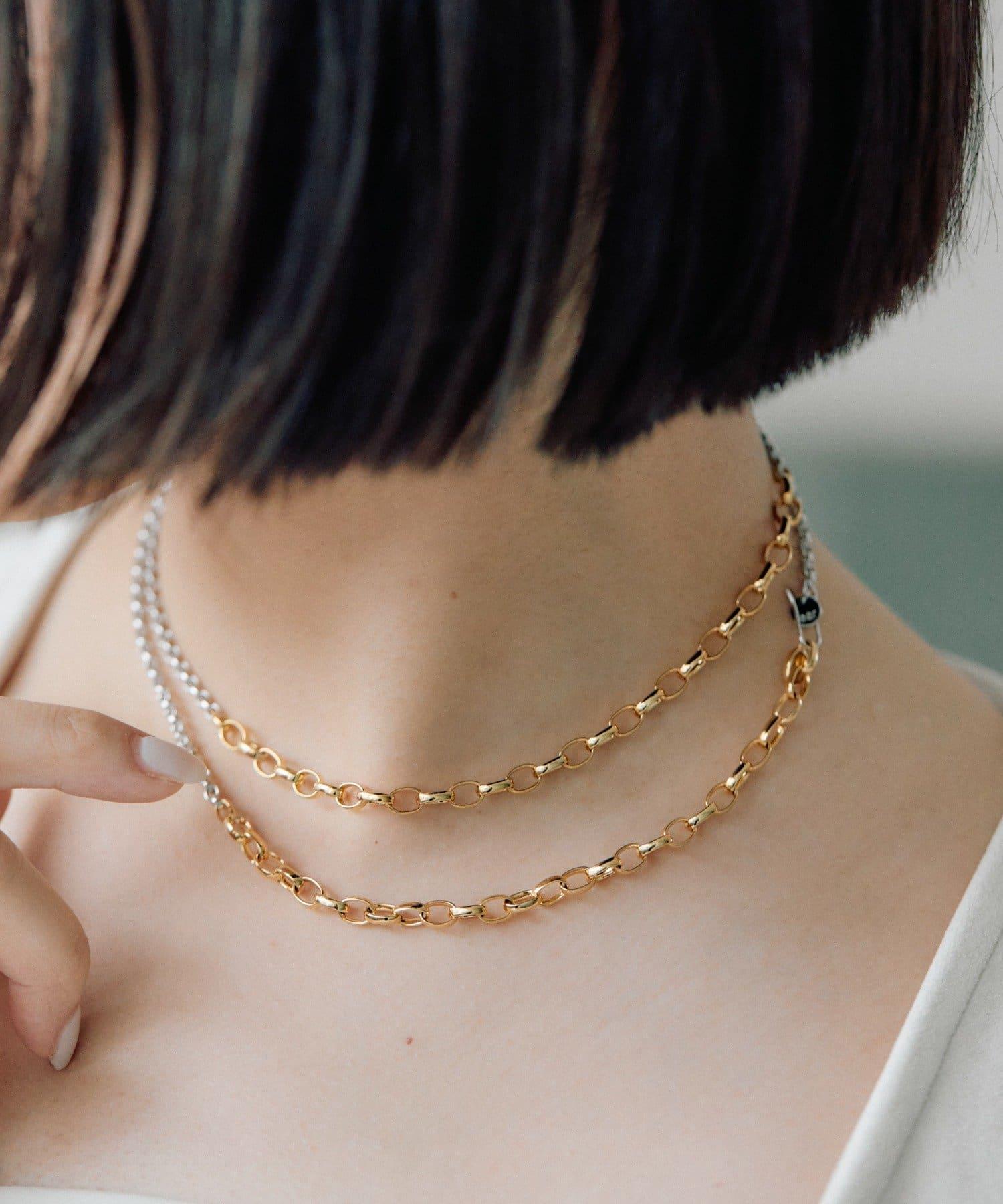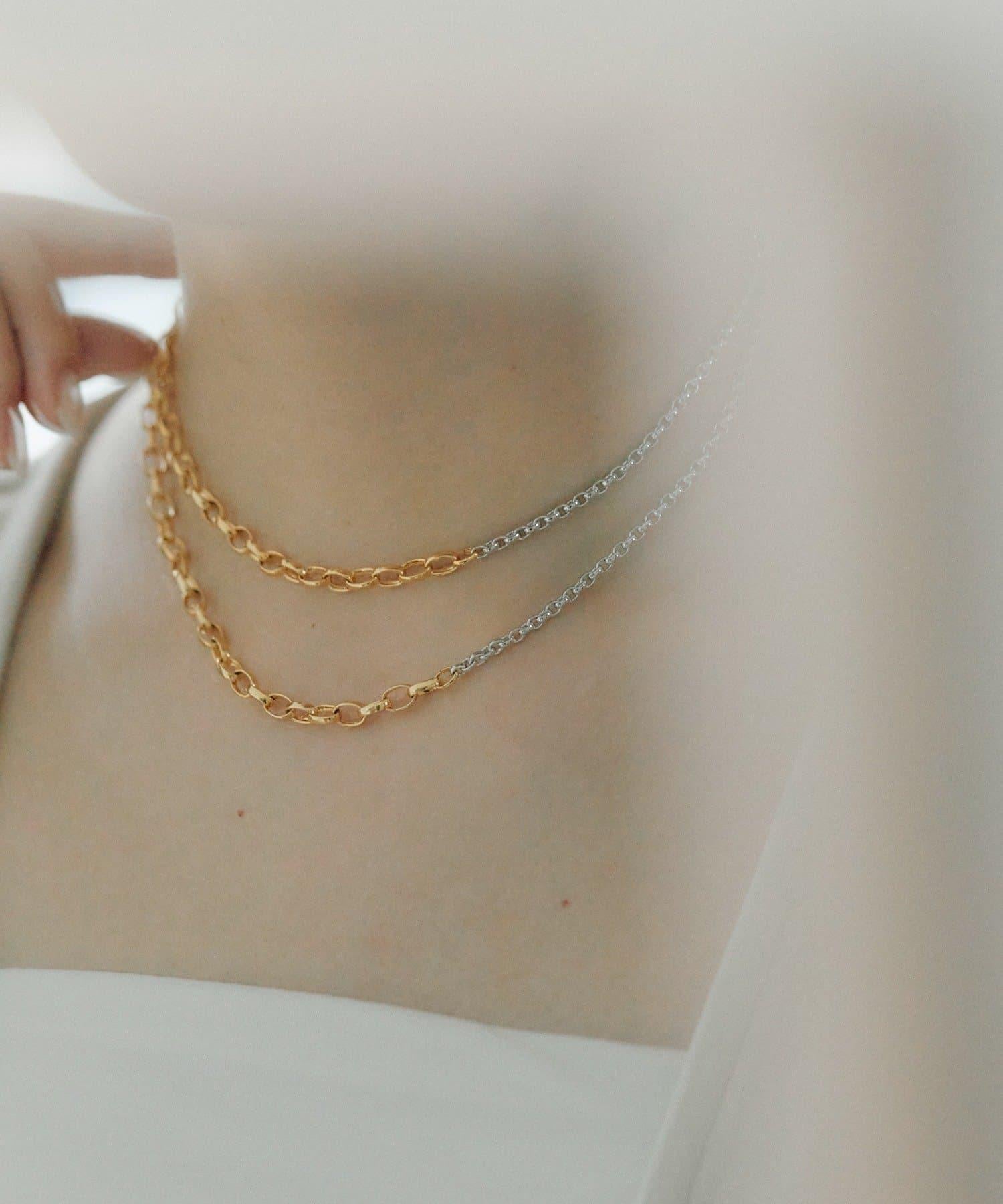 這是一款鏈條項鍊,有兩種不同顏色的鏈條。