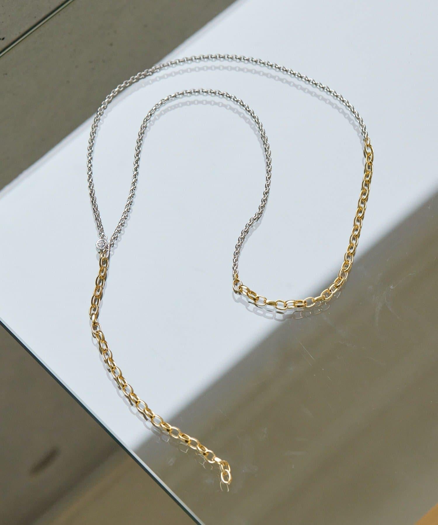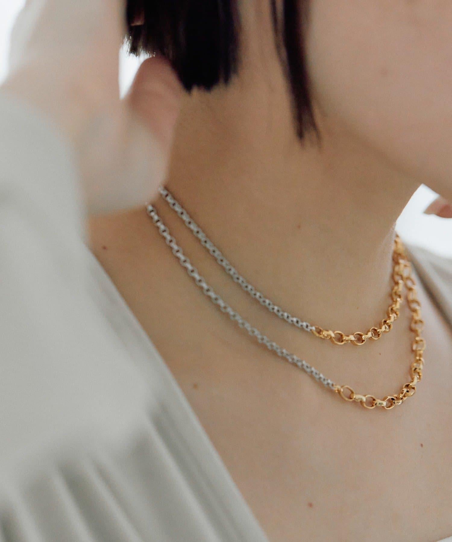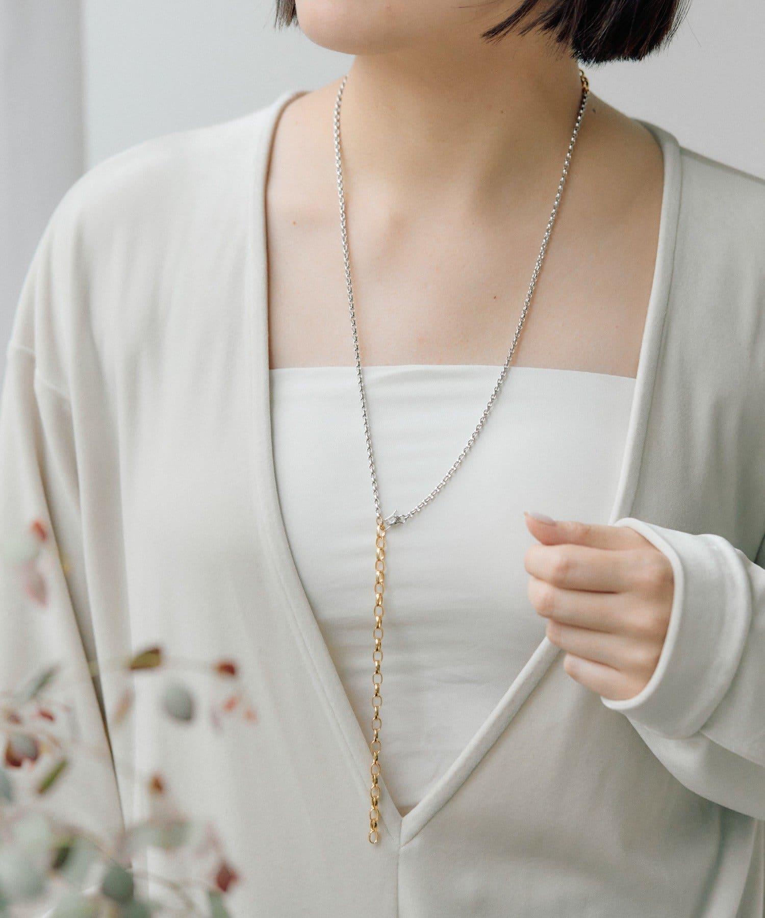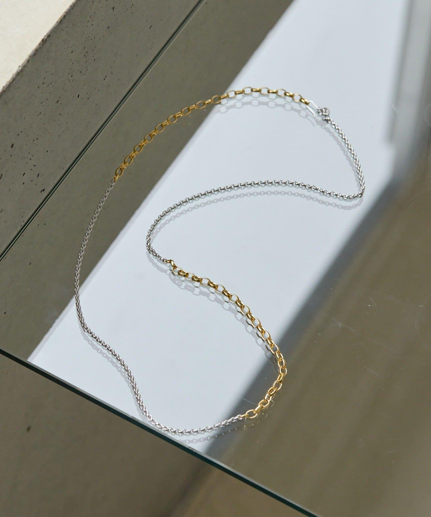 這是一款鏈條項鍊,有兩種不同顏色的鏈條。