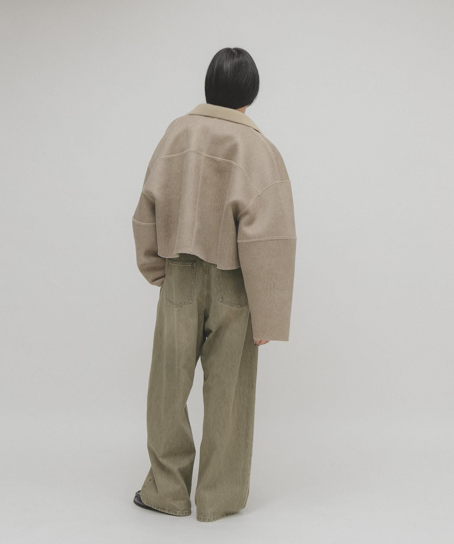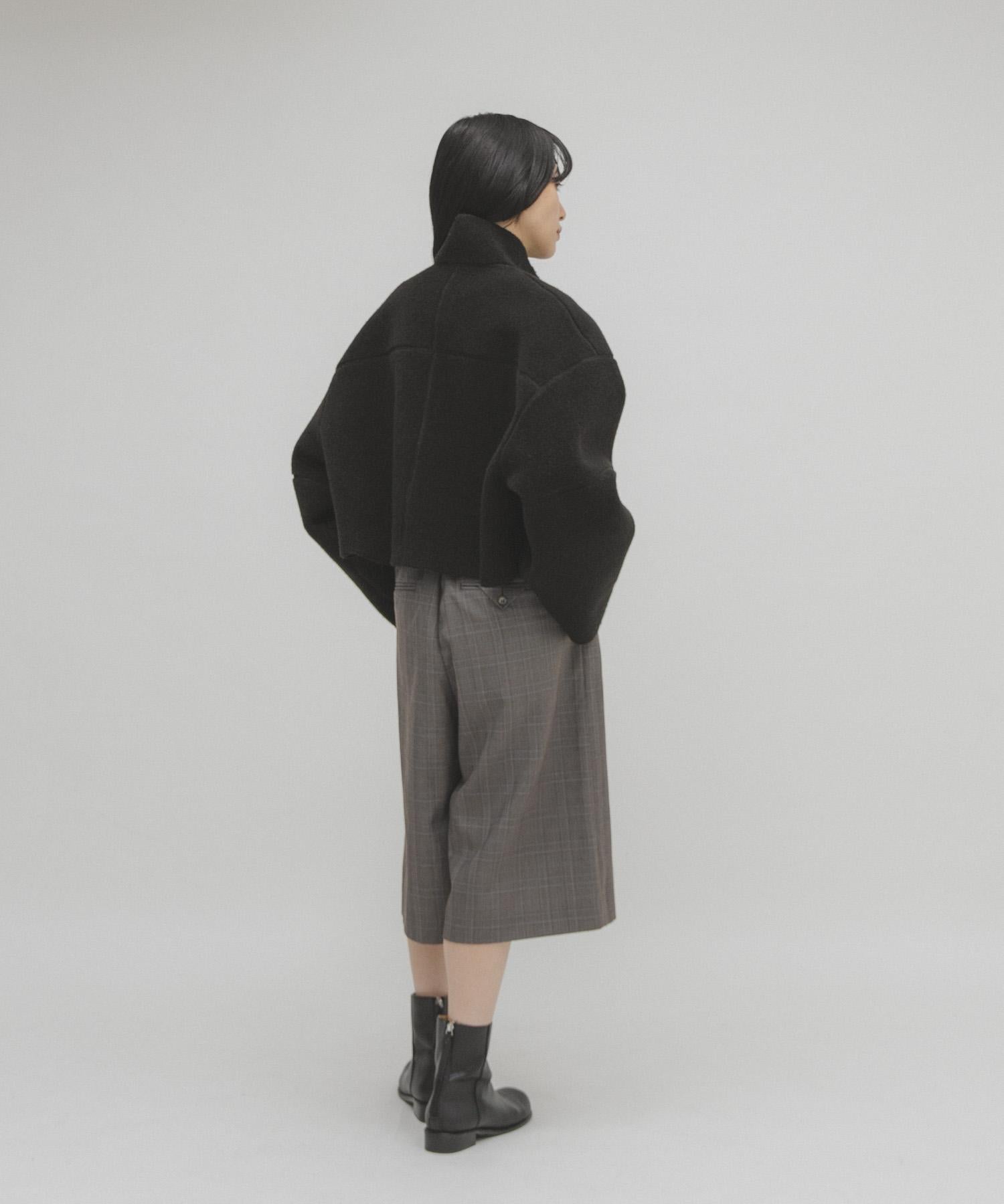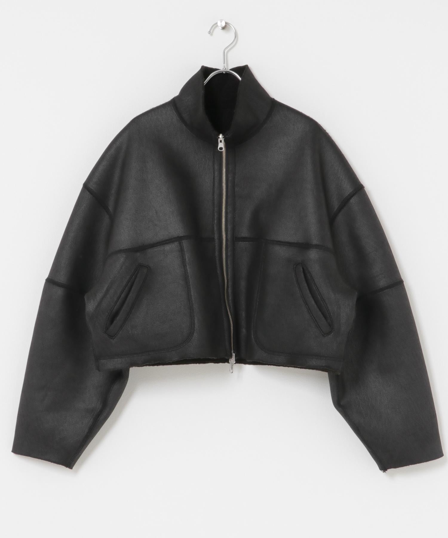 上等蟒蛇皮和人造皮革均可享受的雙面外衣。立體豐滿的袖子是一大特色,柔軟度高,在給人模式印象的同時不會膨脹,這也是一大亮點。短款的長度確保了與豐滿的下裝搭配時造型的均衡性。