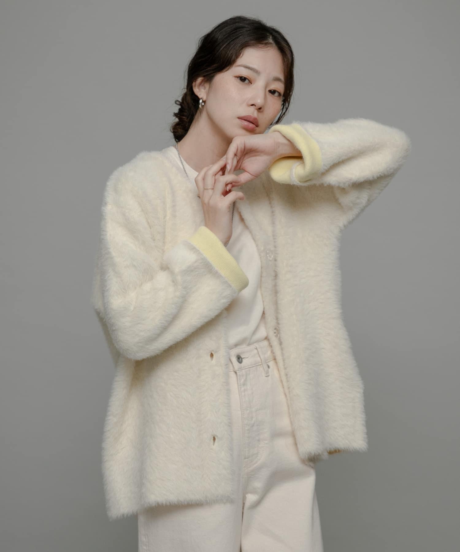 透明紐扣營造出一種逃逸感,為偏向厚重的秋冬款式增添了輕盈感。