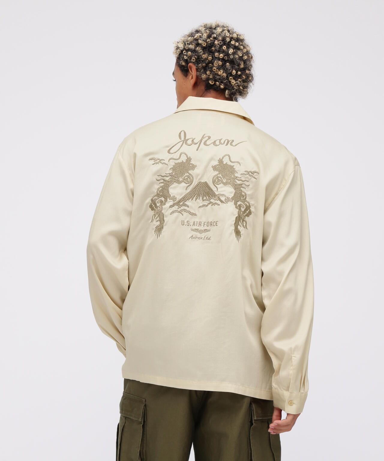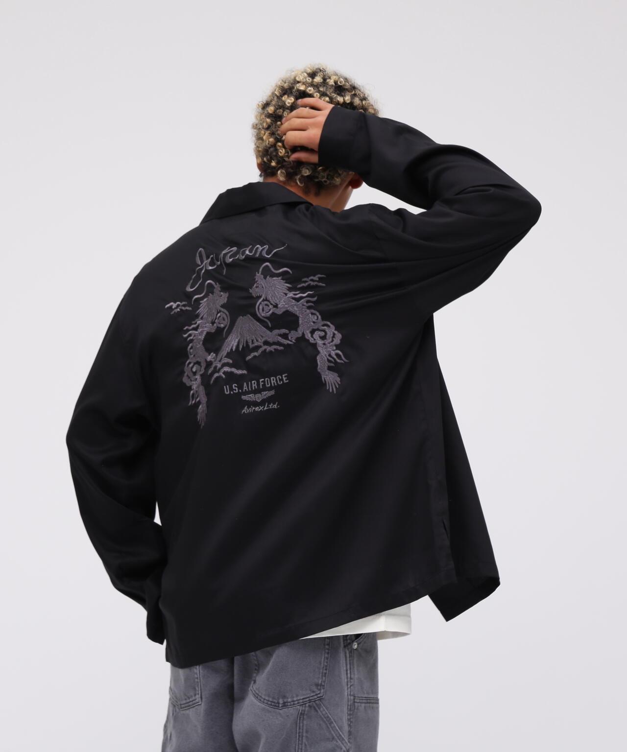AVIREX官方商城】《網絡限定》雙龍紀念衫商品詳情--開領長袖襯衫,典型的網絡限定Avilex風格,採用天絲面料,具有特有的垂墜感和暗淡光澤,配以日本紀念圖案,刺繡設計與日本圖案相呼應。通過同色系的色彩搭配,可以實現簡潔的造型和勻稱的輪廓 【AVIREX】它成立於 1975 年,當時是美國空軍的承包商,通過提供飛行夾克而知名度大增。Avirex 源自軍隊,以功能性設計所散發出的獨特美感為基礎。其獨特的外觀讓人聯想到電影《奪寶奇兵》。