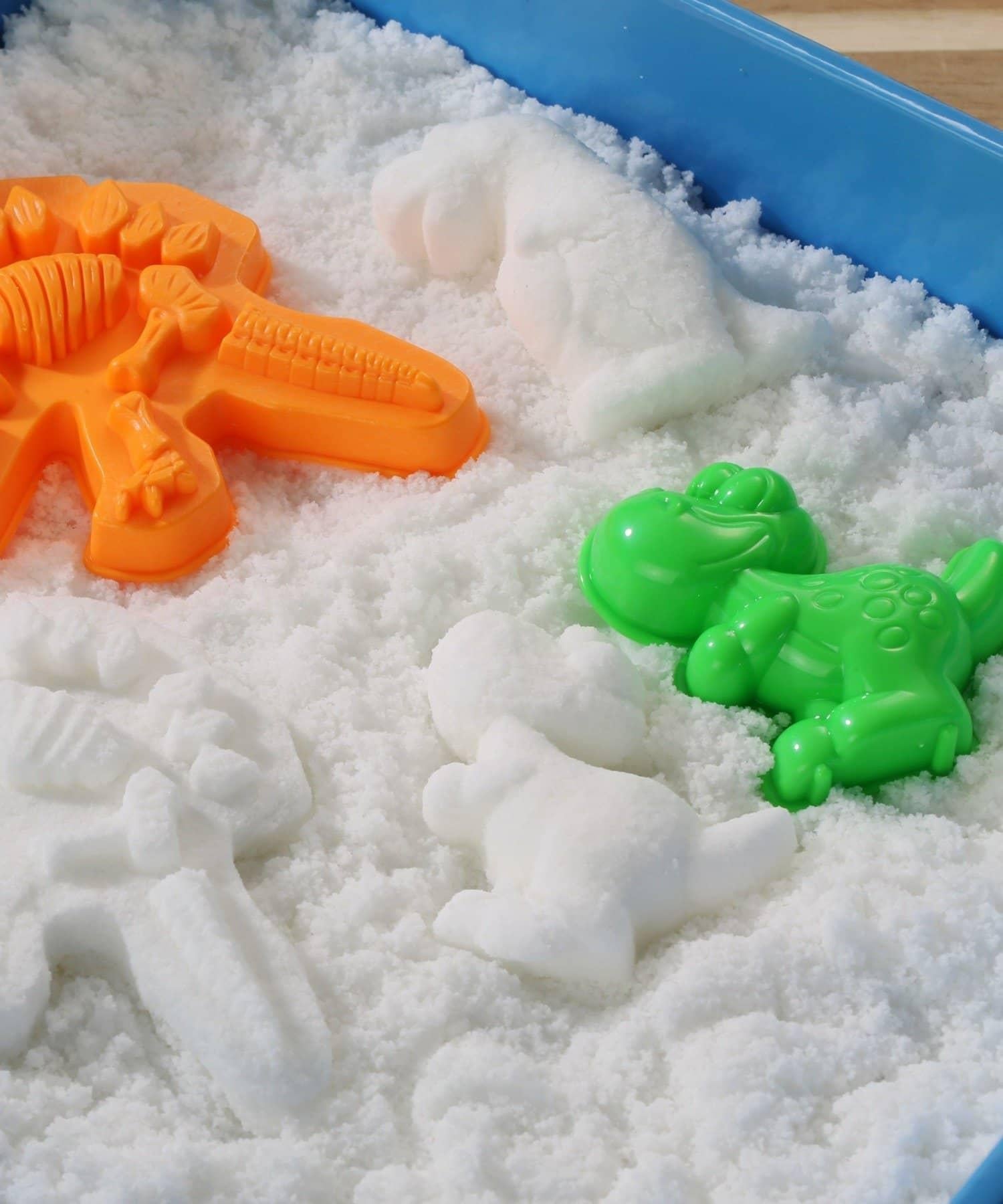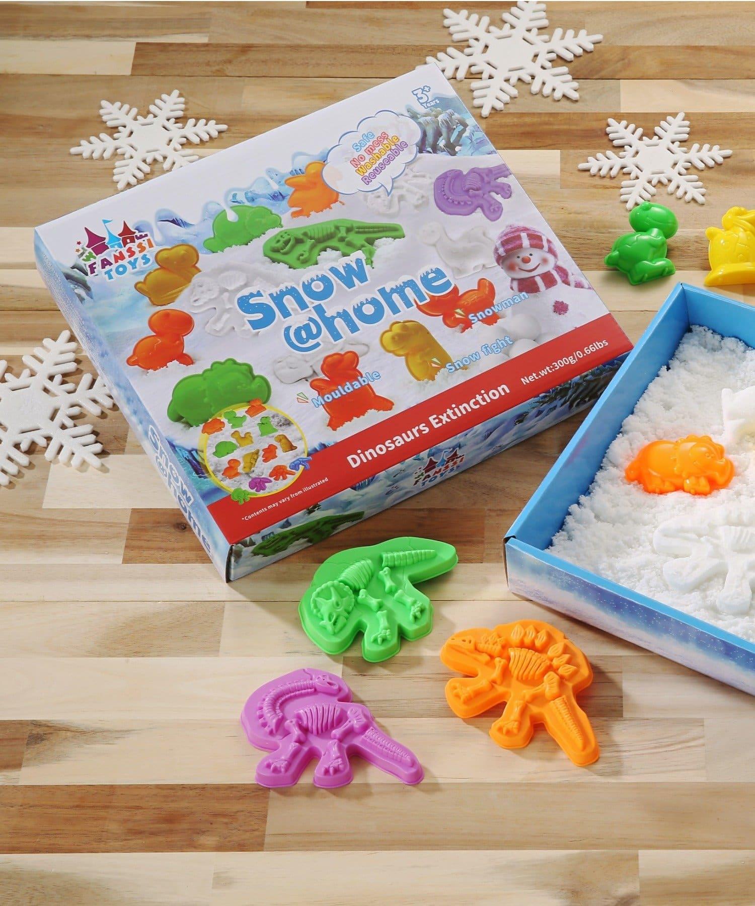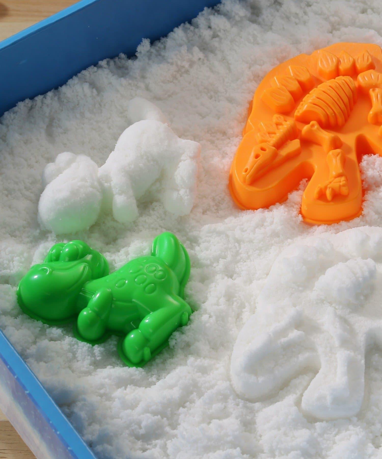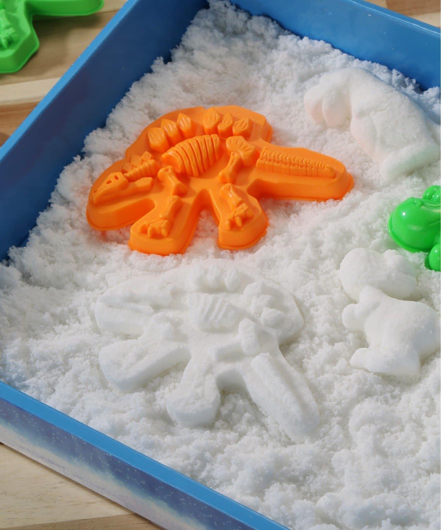 將雪放入模具中,製作自己的原始恐龍,或者挖掘化石。