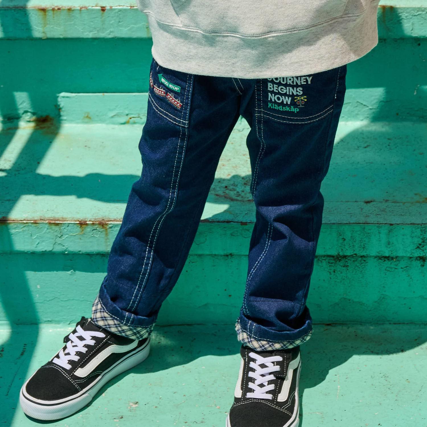 電車下襬翻邊長款直筒褲