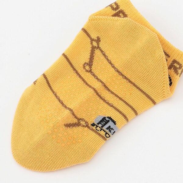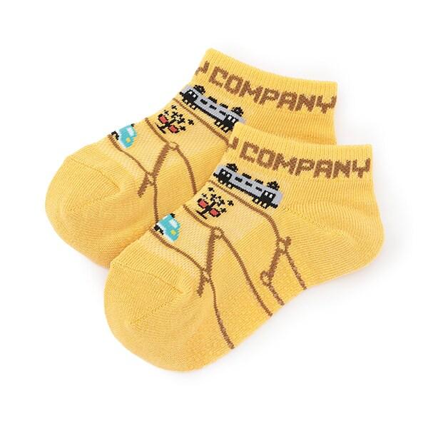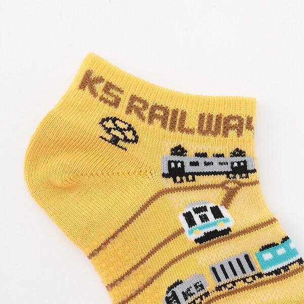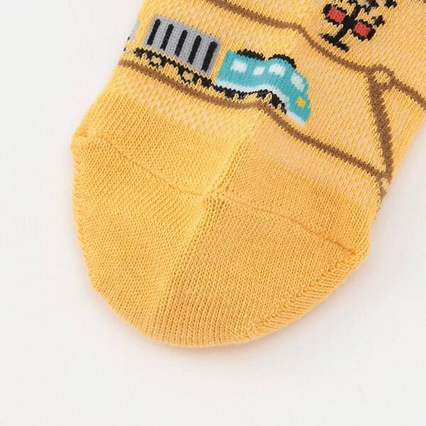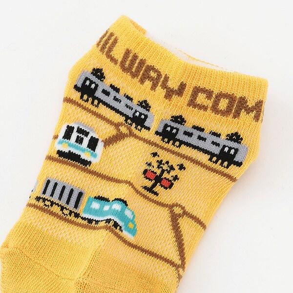 獨特的運動鞋內增高襪,襪子上印有沿著鐵軌行駛的火車圖案。