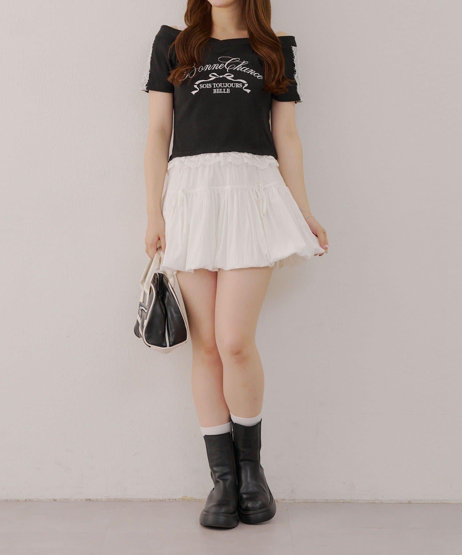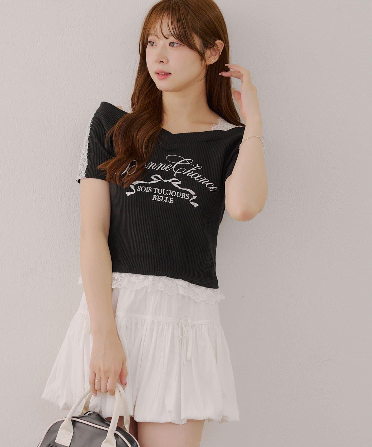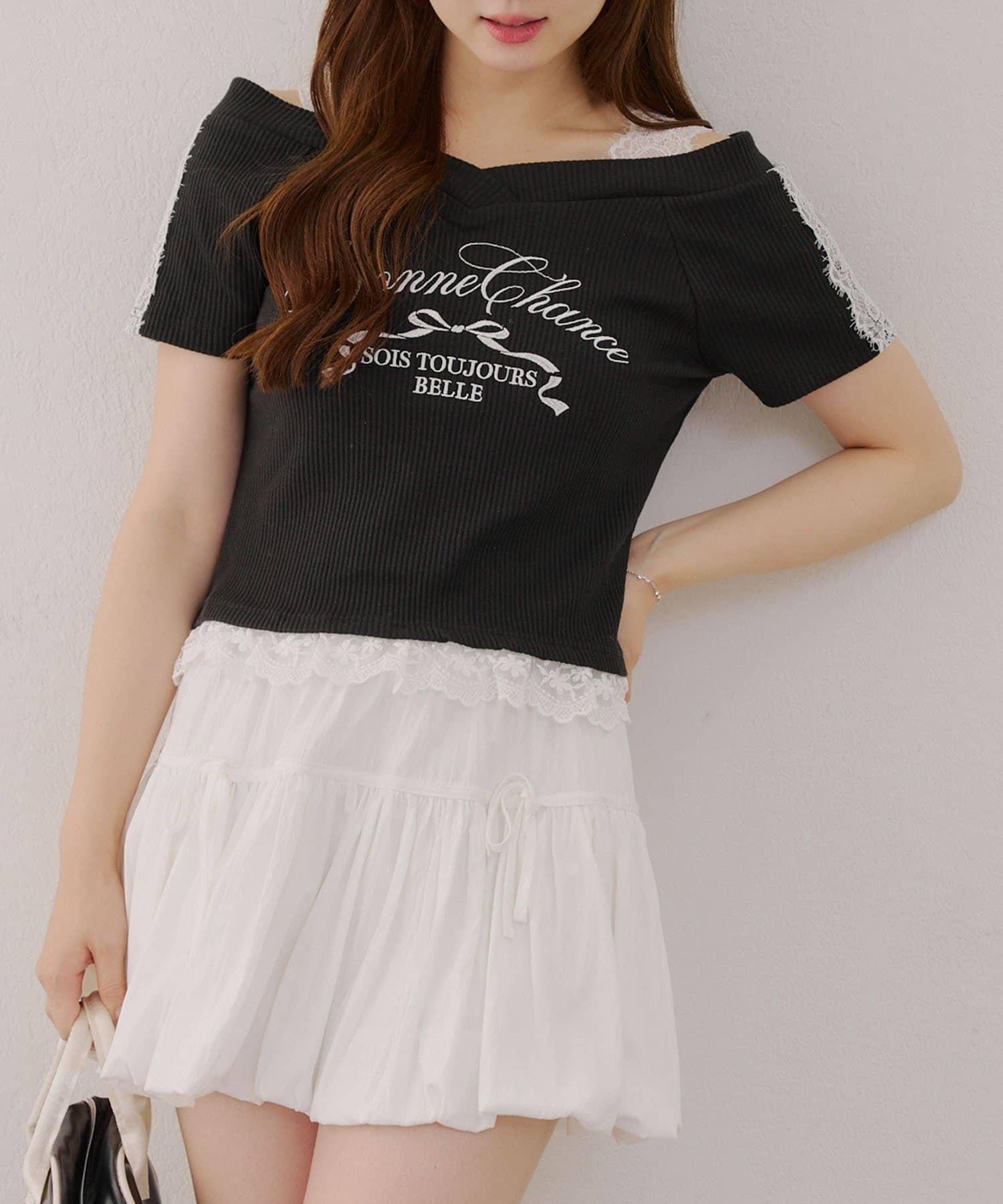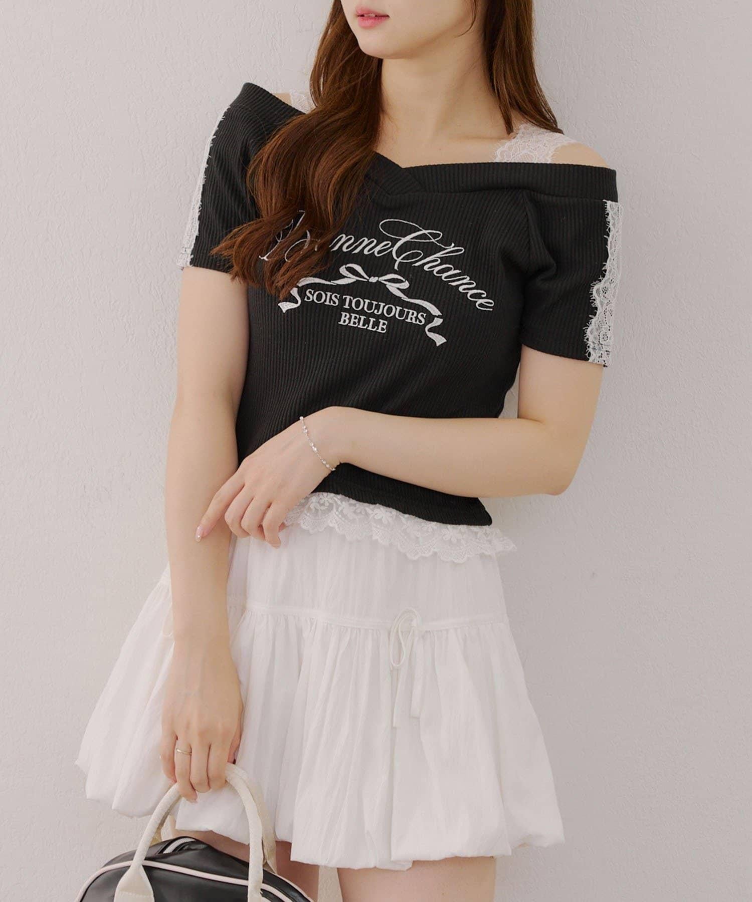 肩部、袖子和下襬有可愛的蕾絲、絲帶和徽標設計。