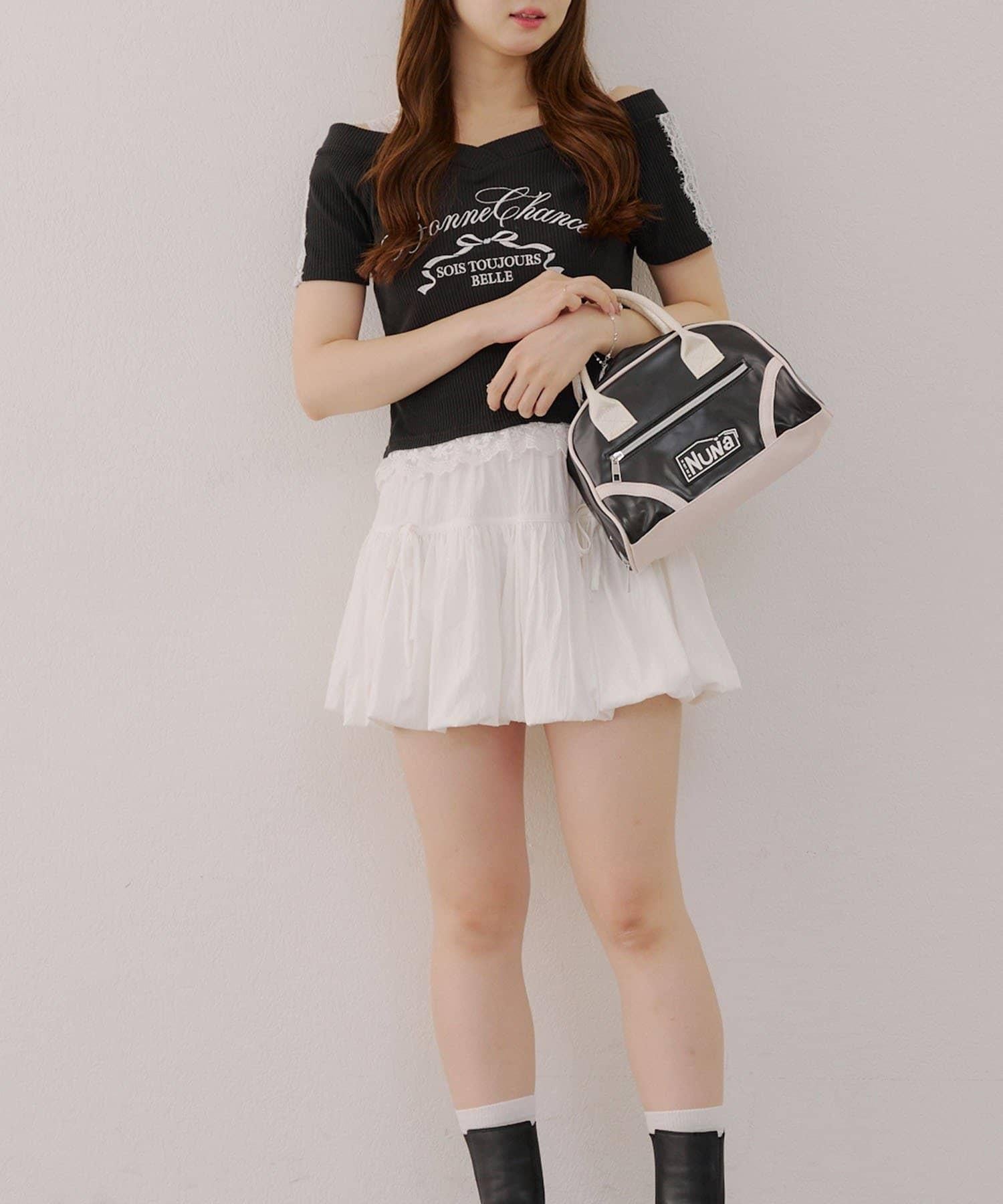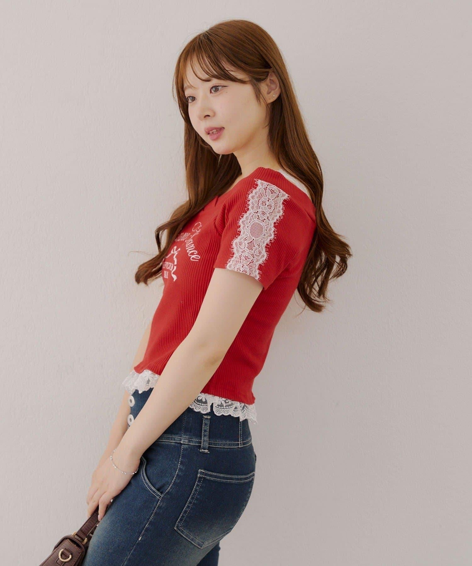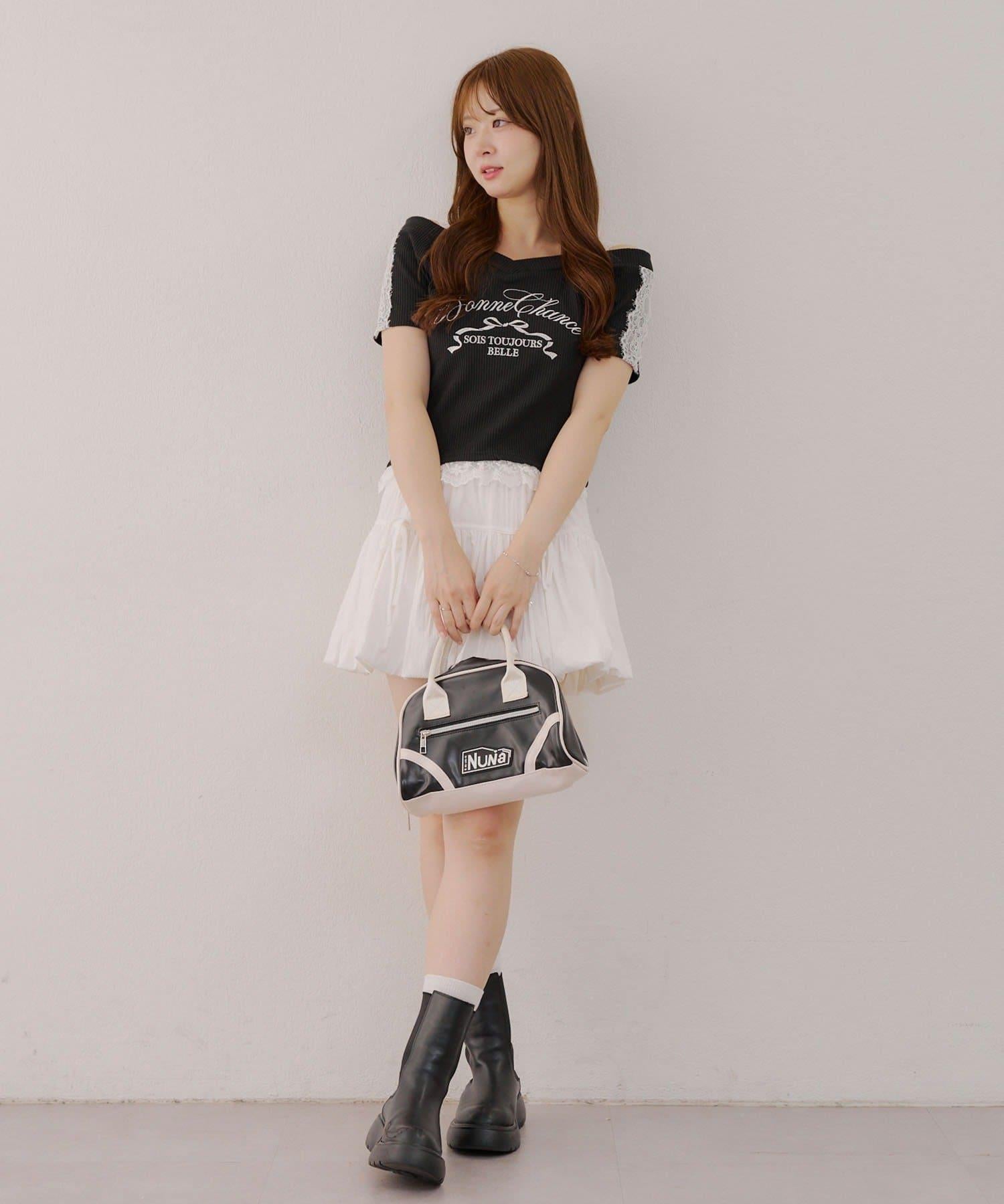 肩部、袖子和下襬有可愛的蕾絲、絲帶和徽標設計。