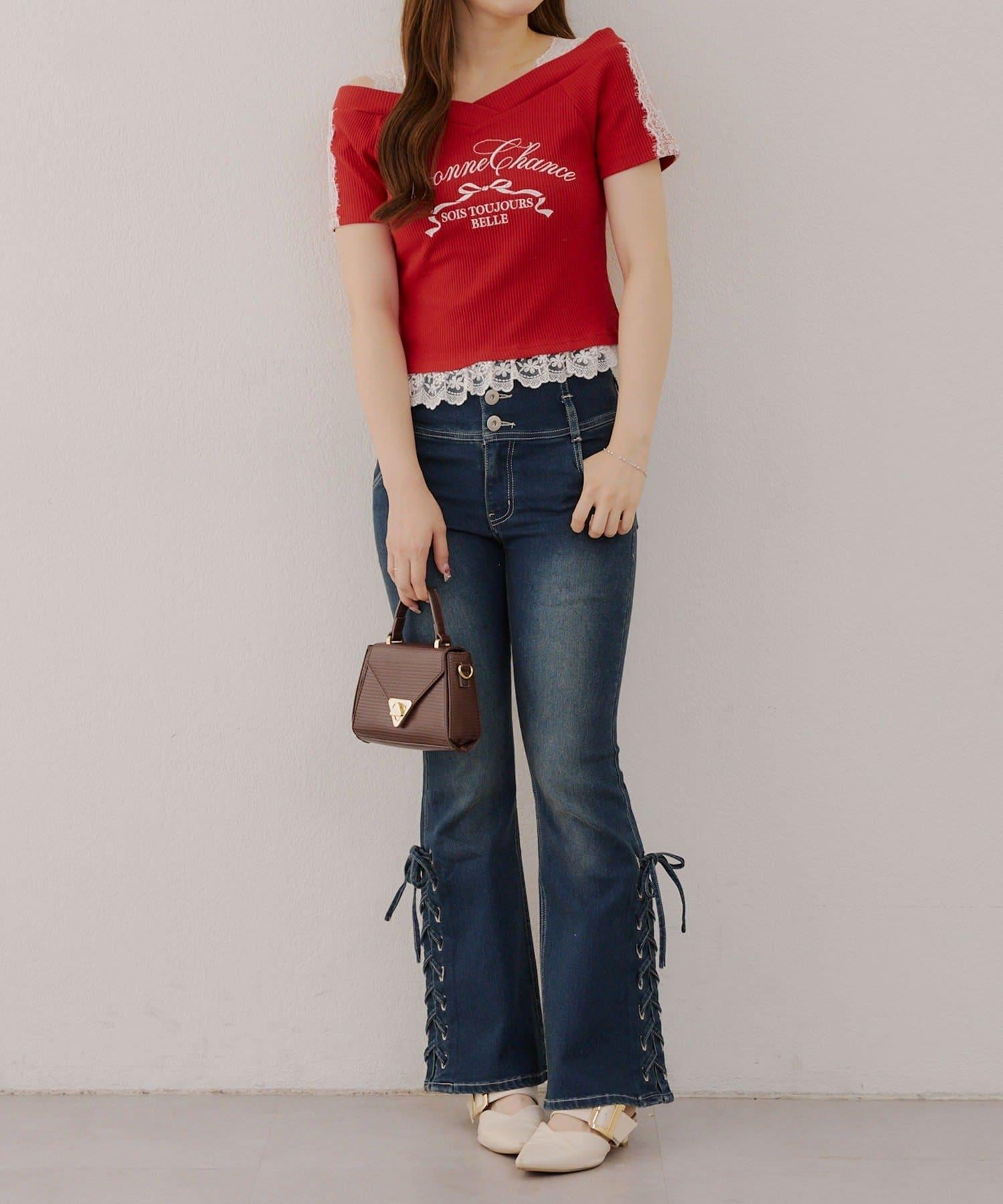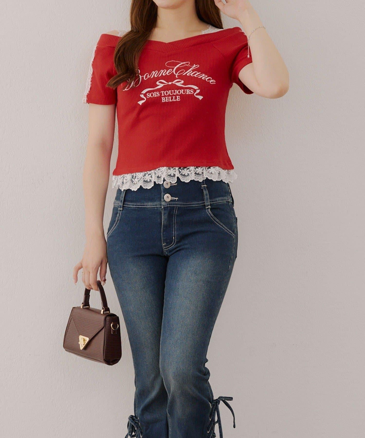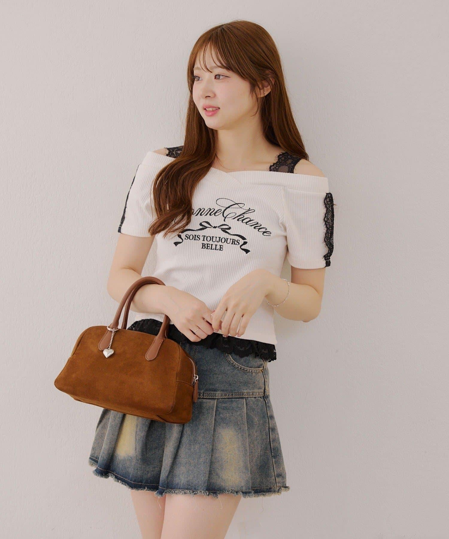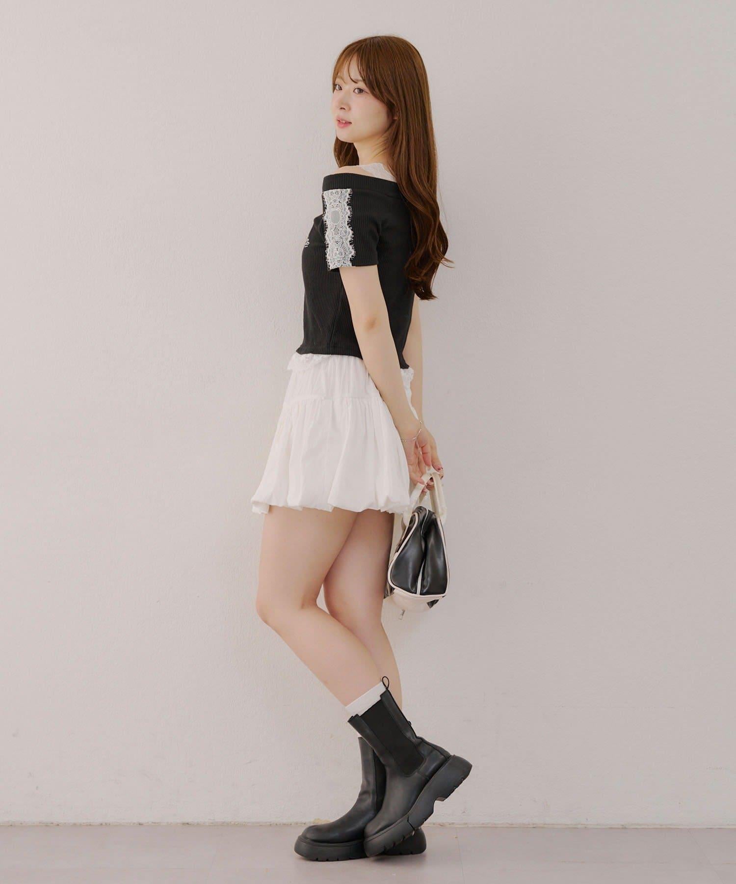 肩部、袖子和下襬有可愛的蕾絲、絲帶和徽標設計。