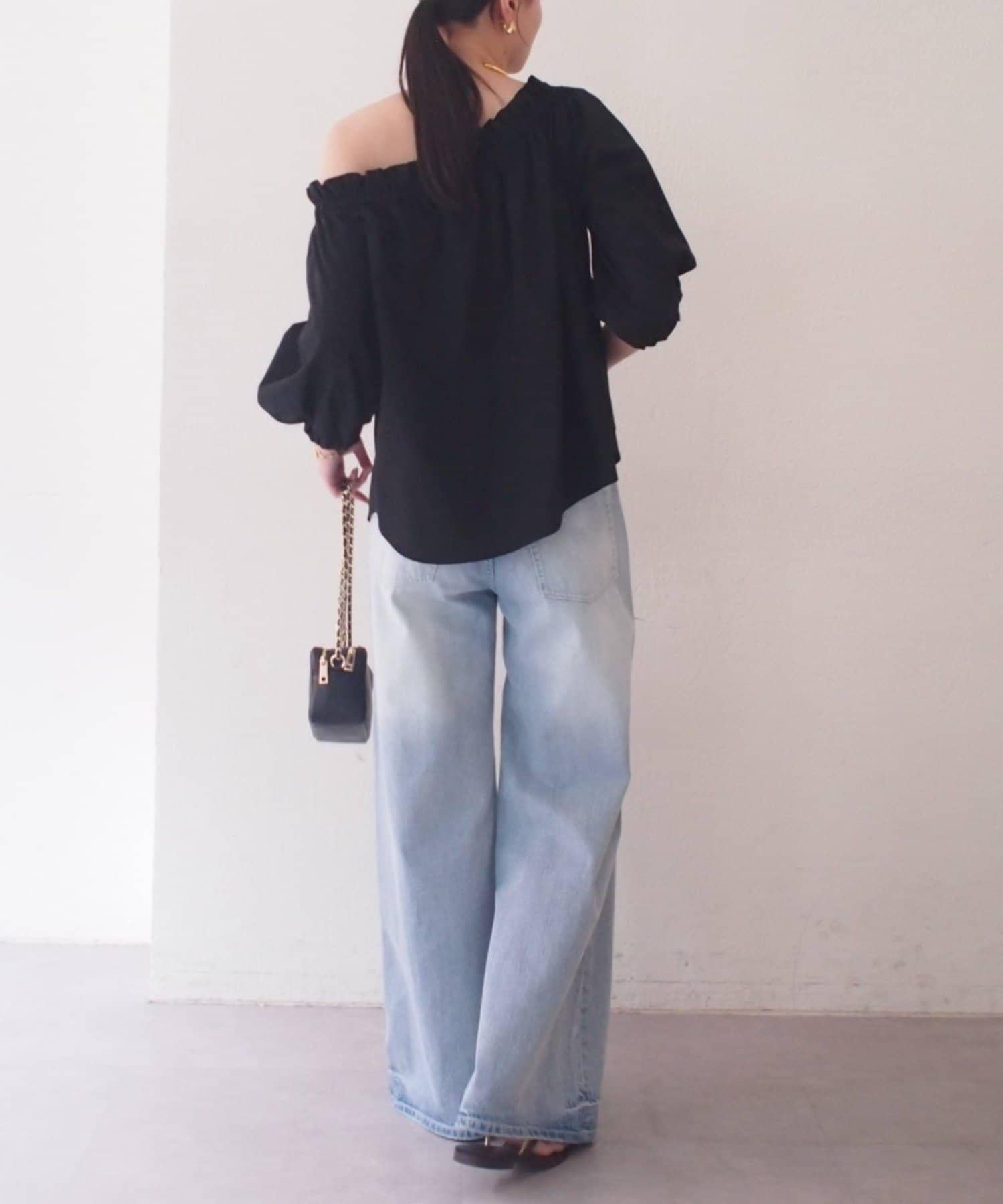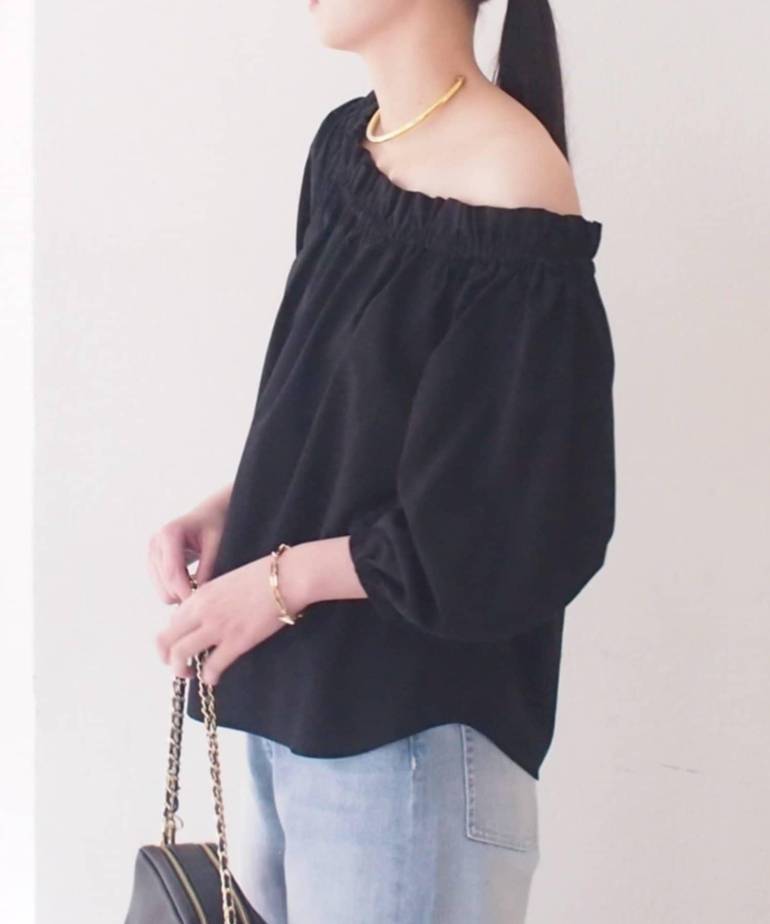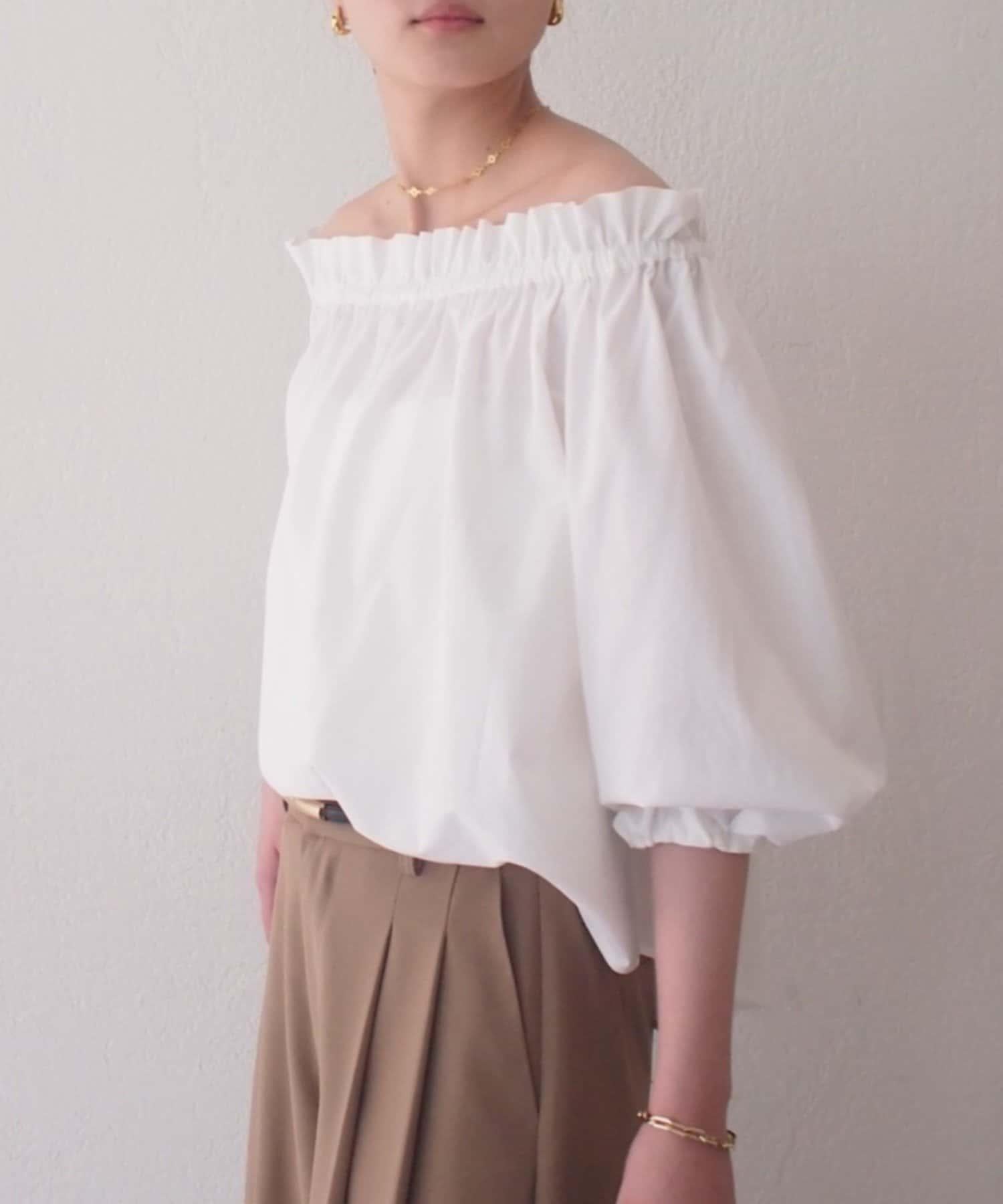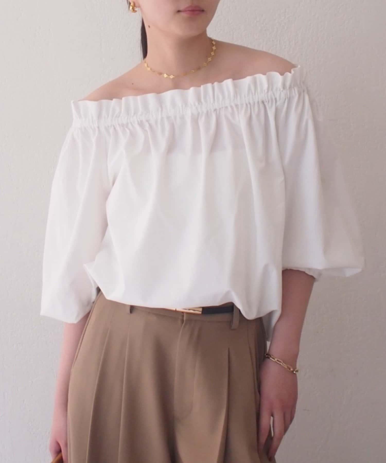 這款露肩上衣採用蓬鬆的廓形設計,增強了成人的可愛感。