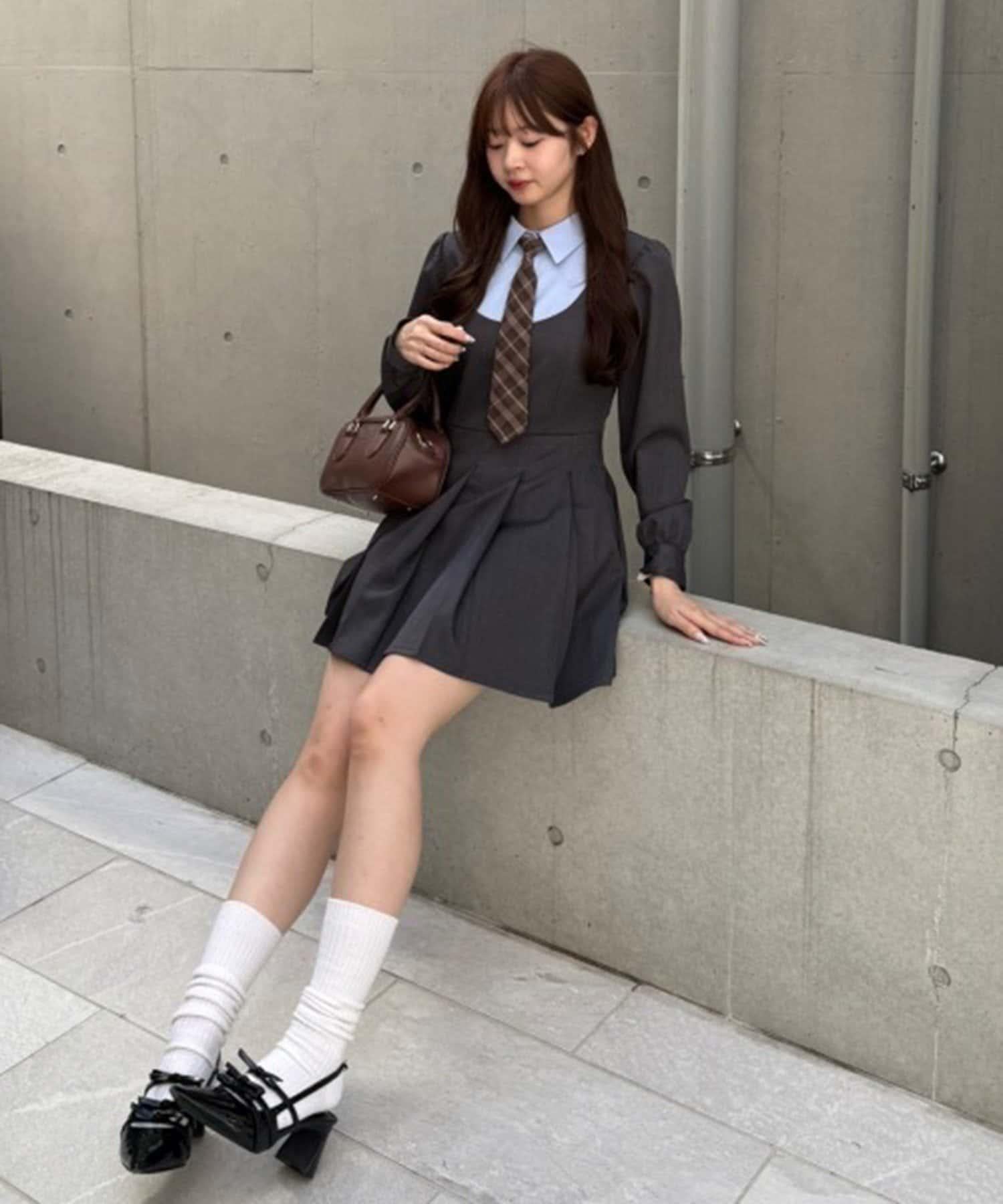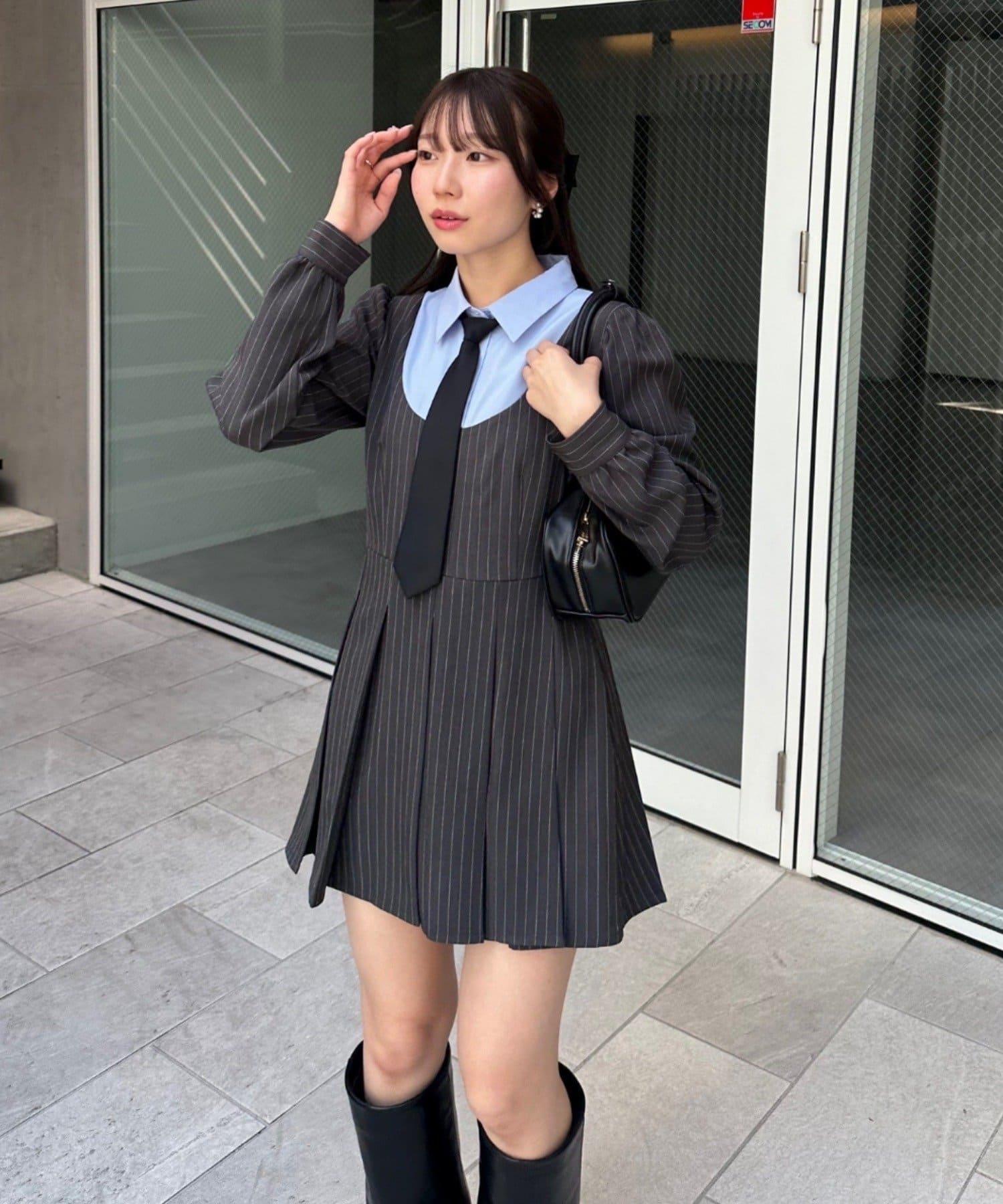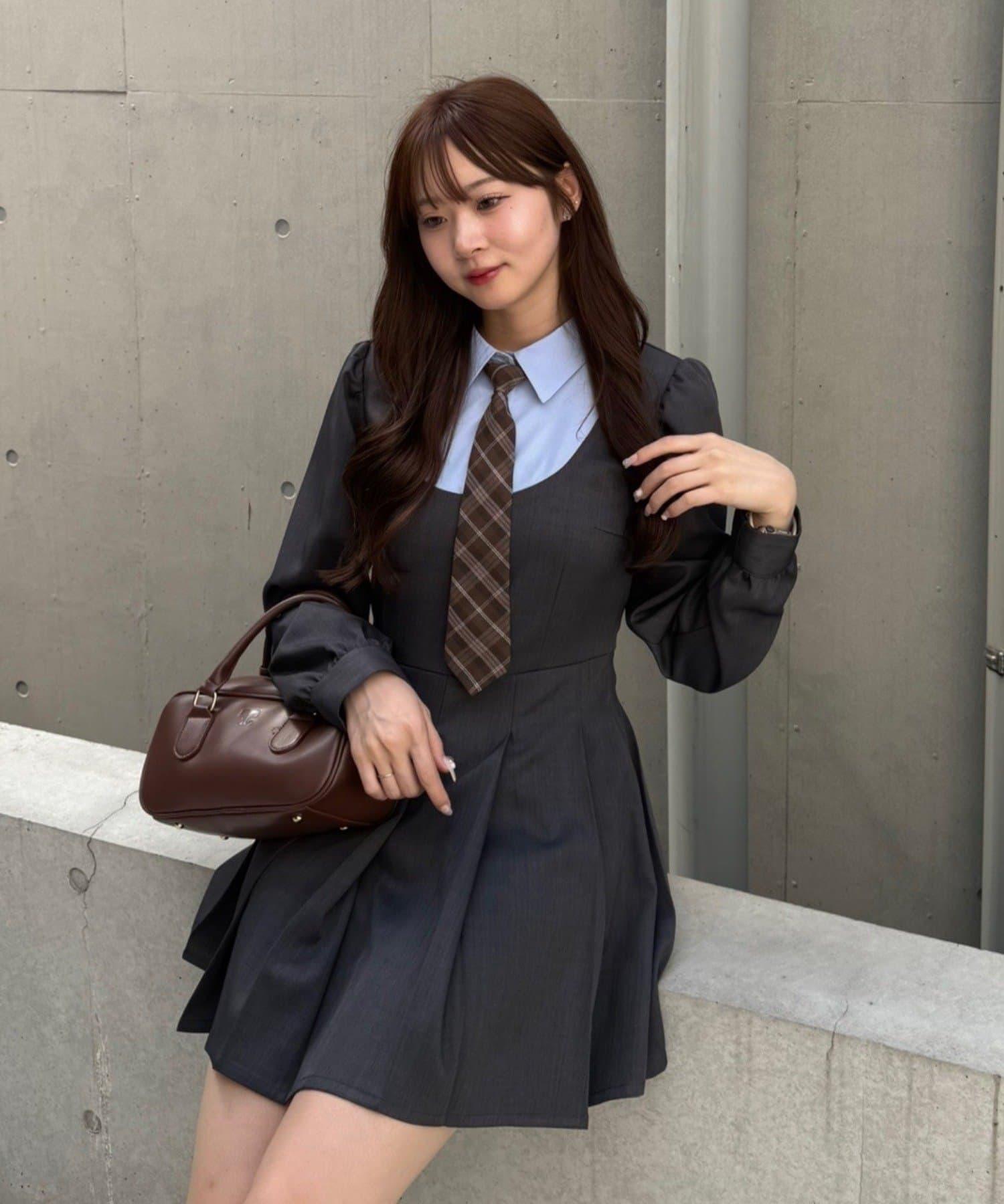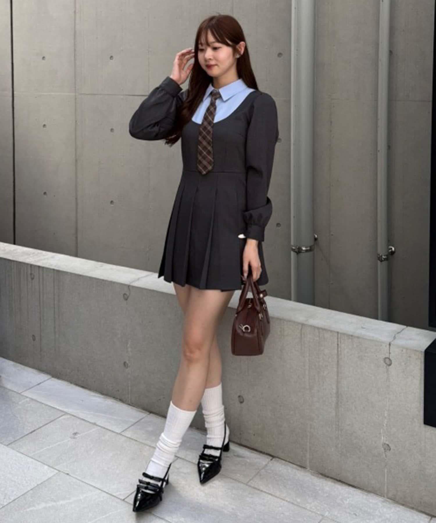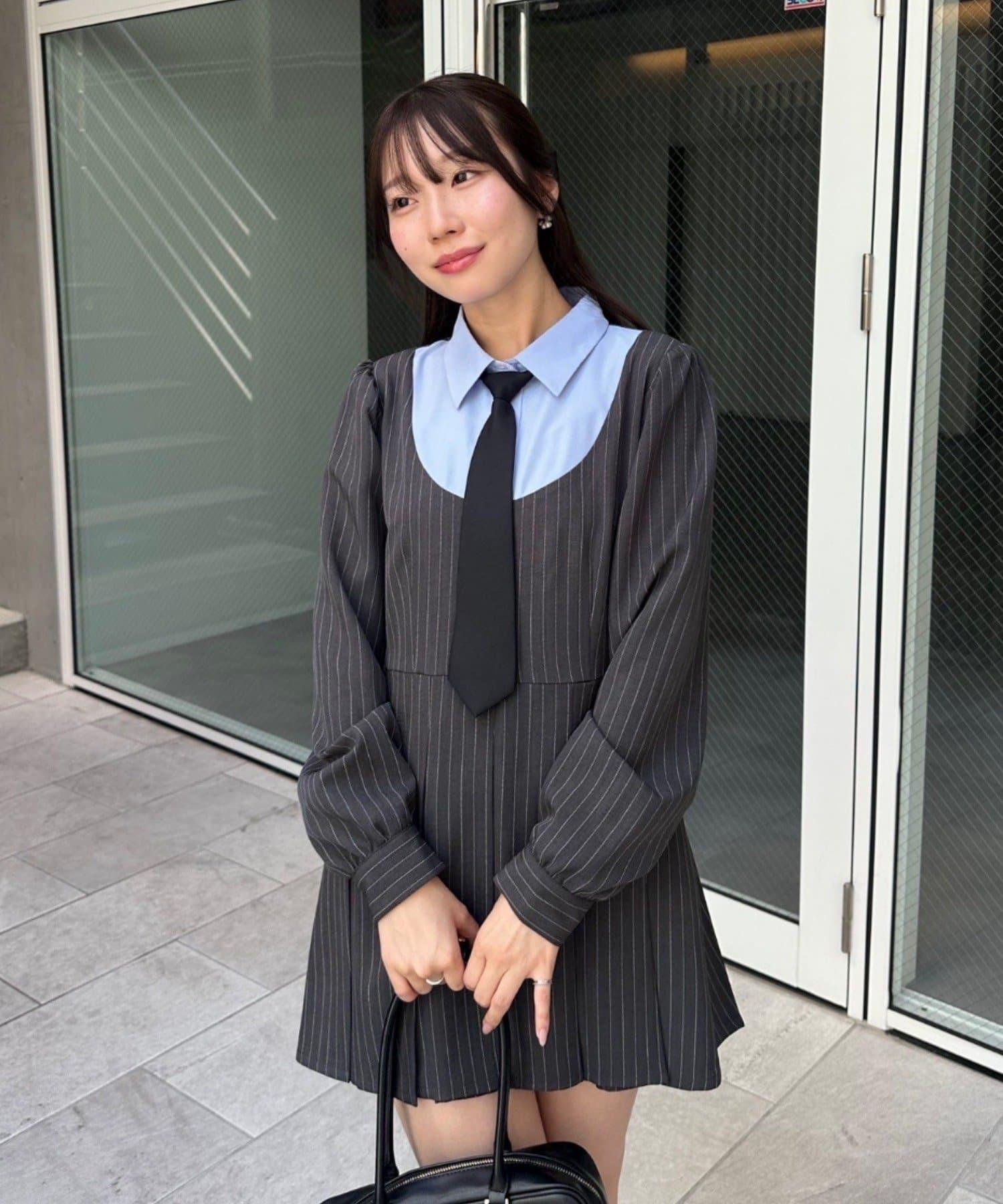 領口整齊的設計營造出優雅的氛圍,即使是迷你長度的領帶也不會過於甜美。