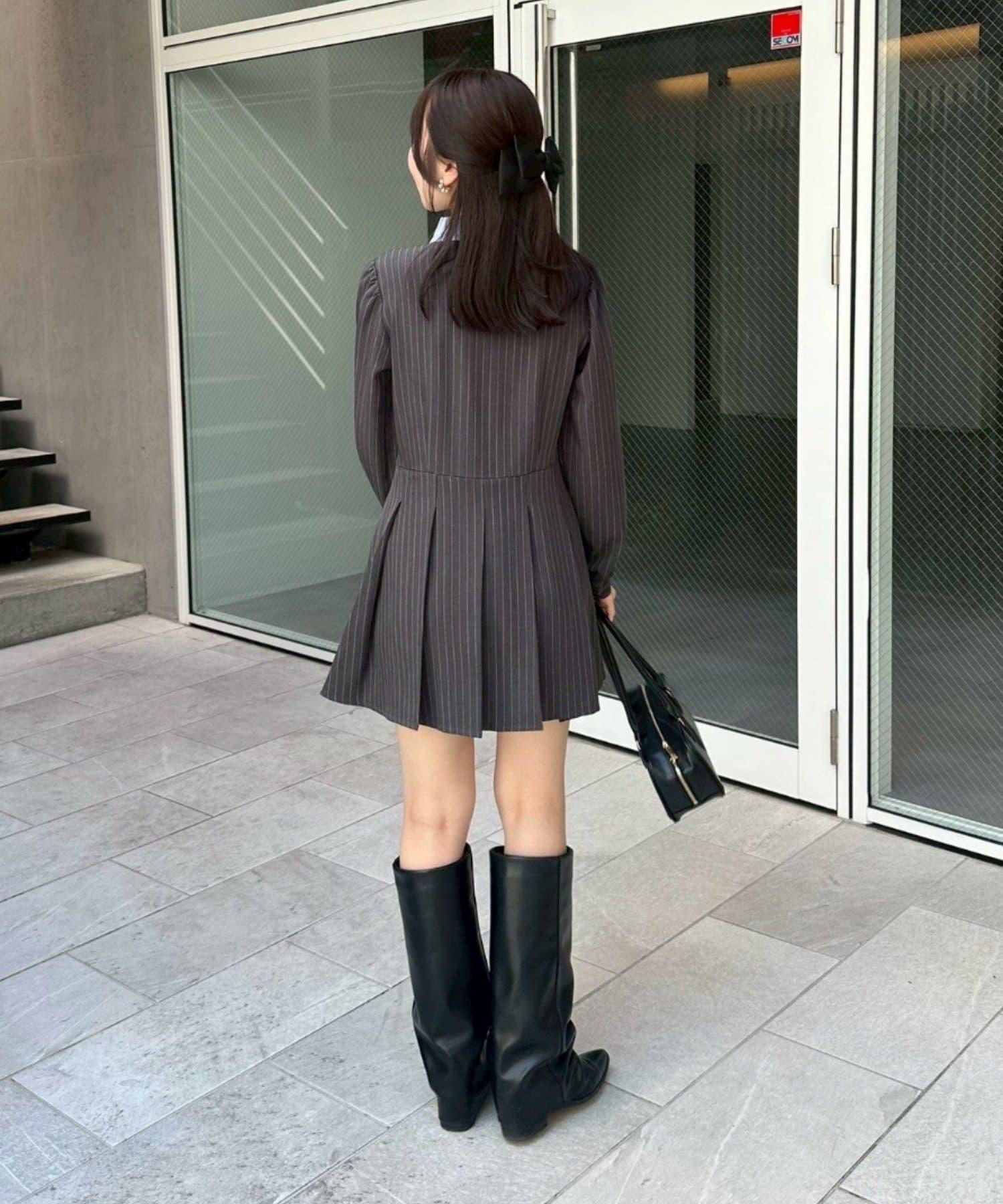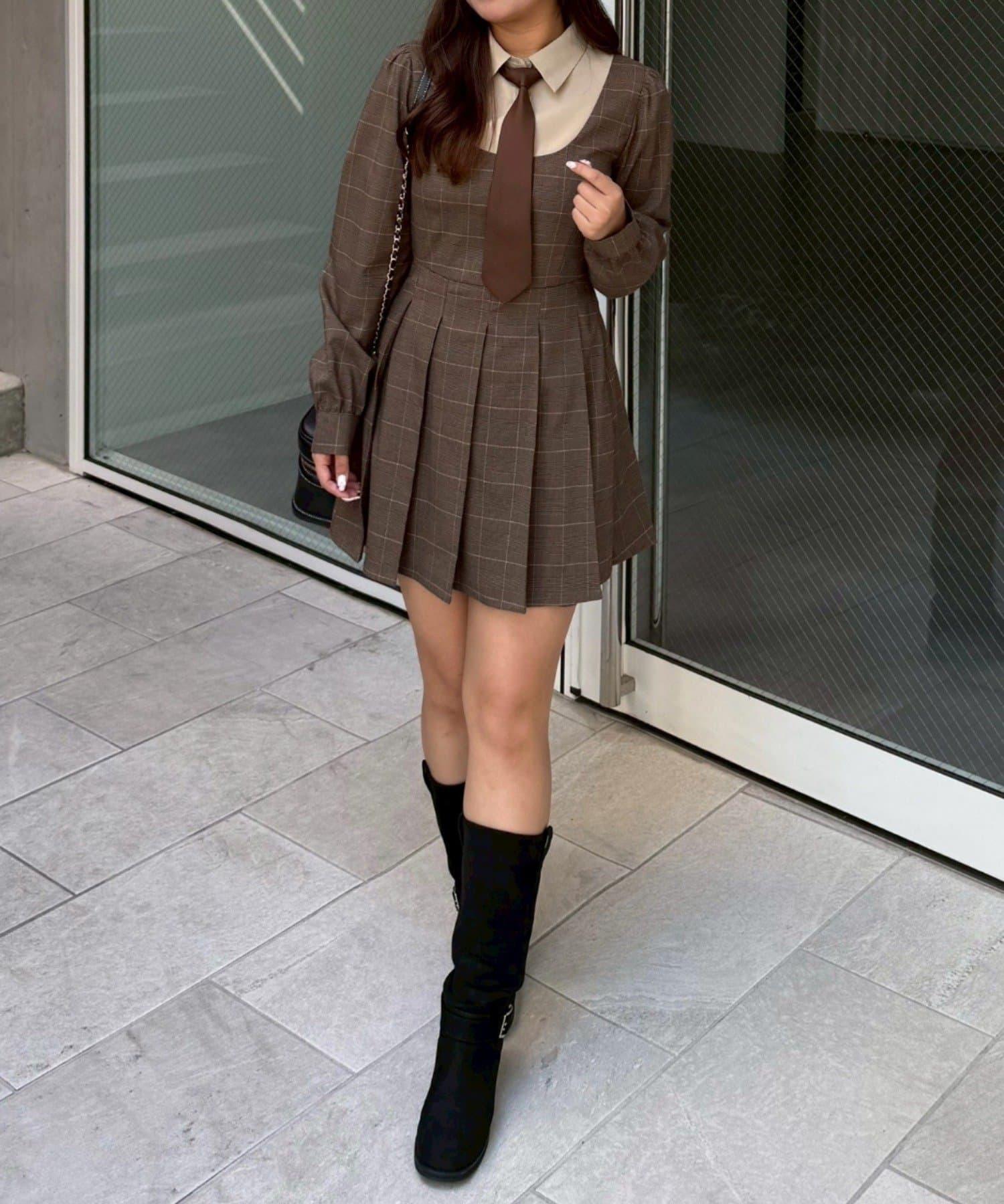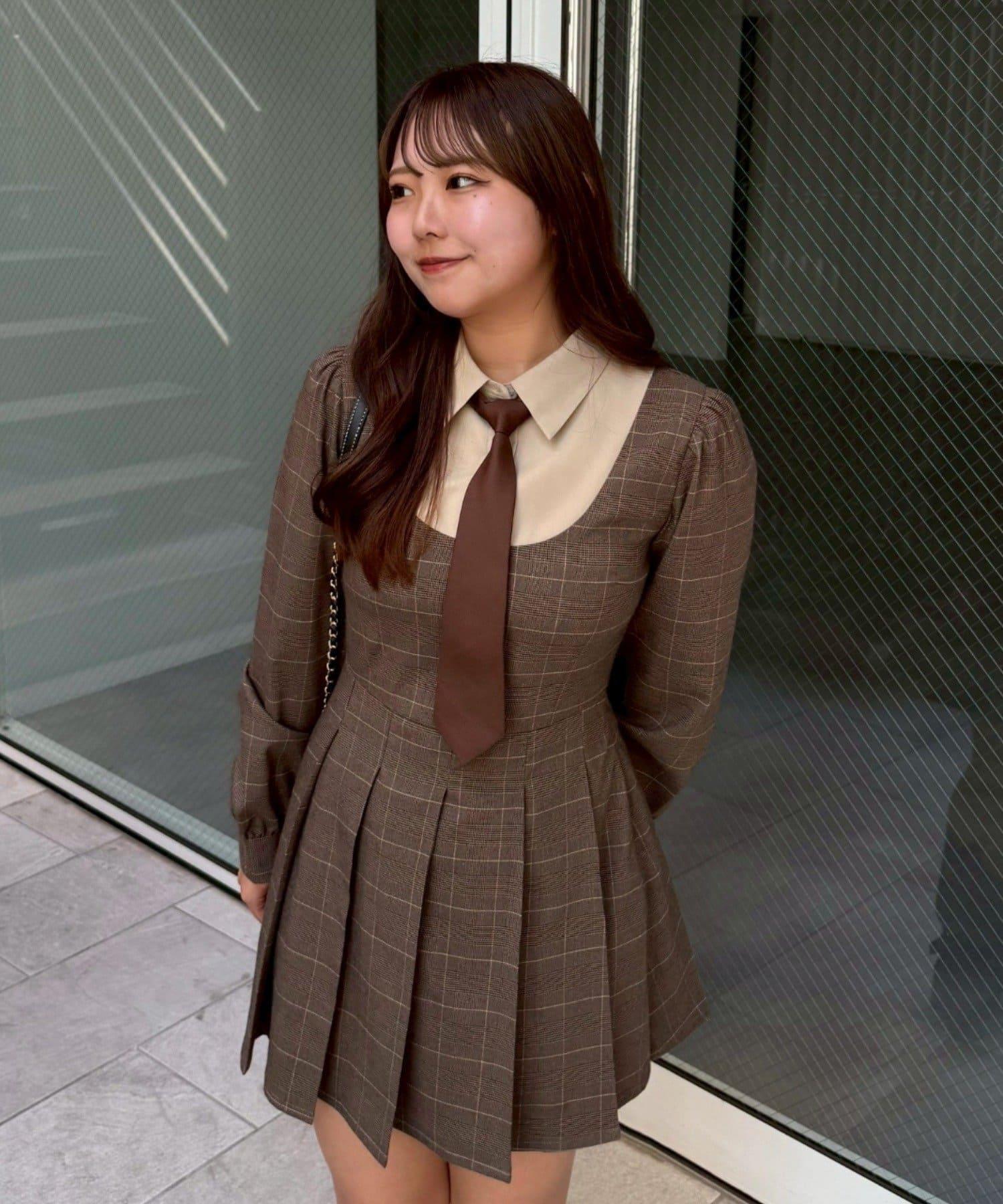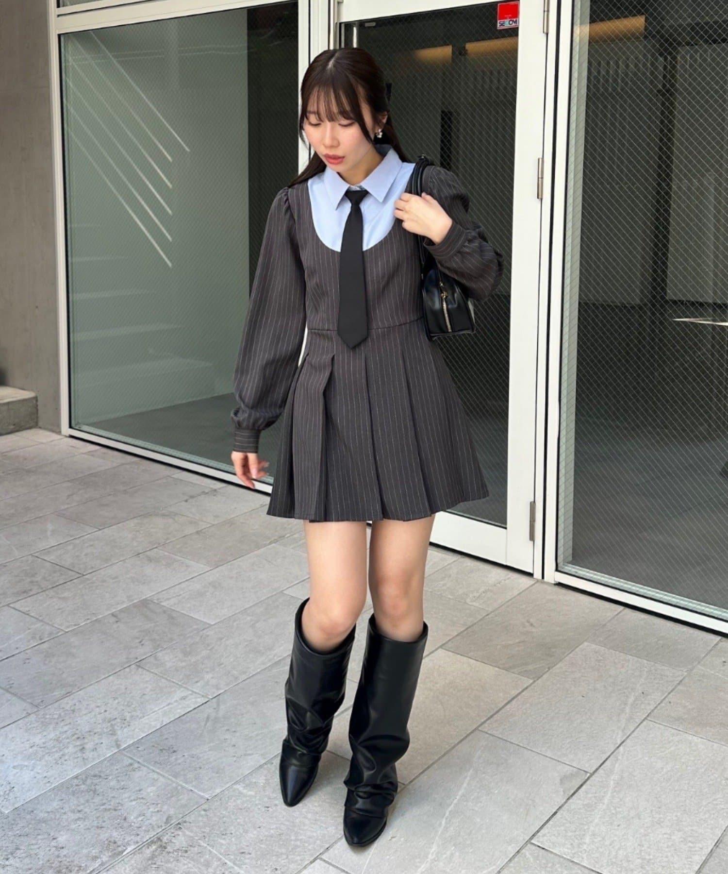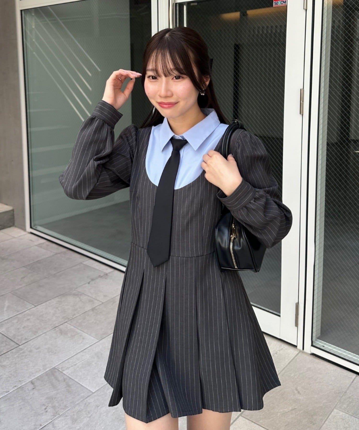 領口整齊的設計營造出優雅的氛圍,即使是迷你長度的領帶也不會過於甜美。