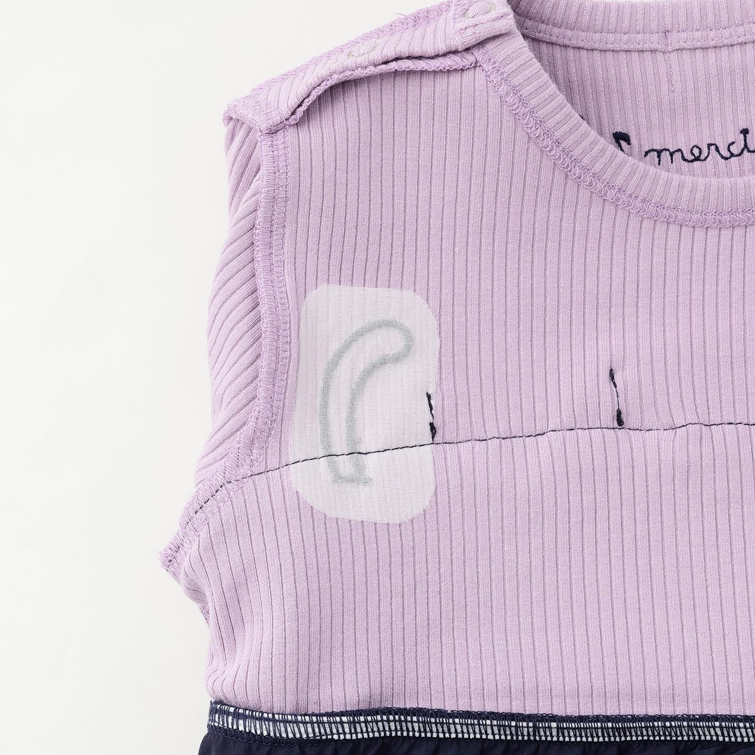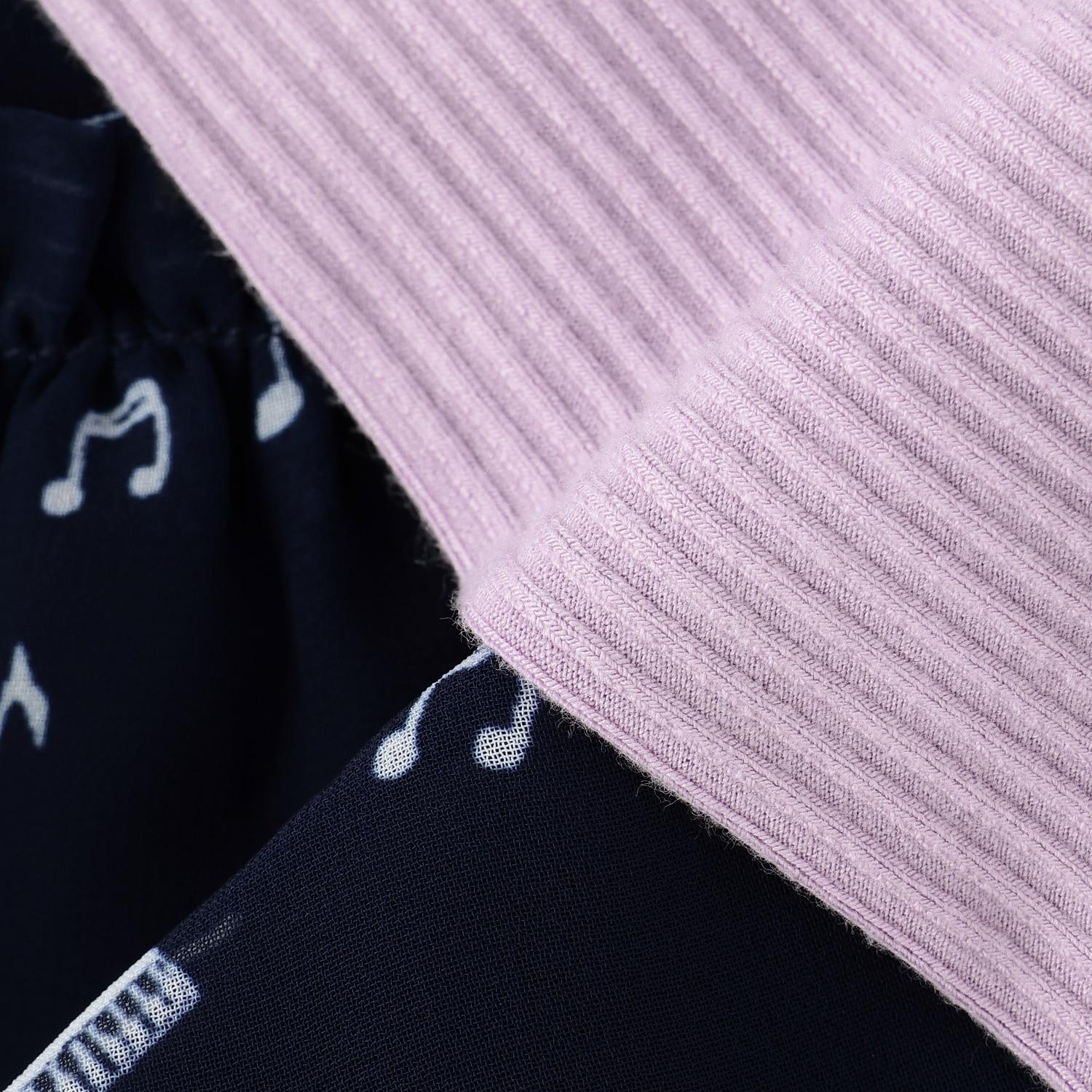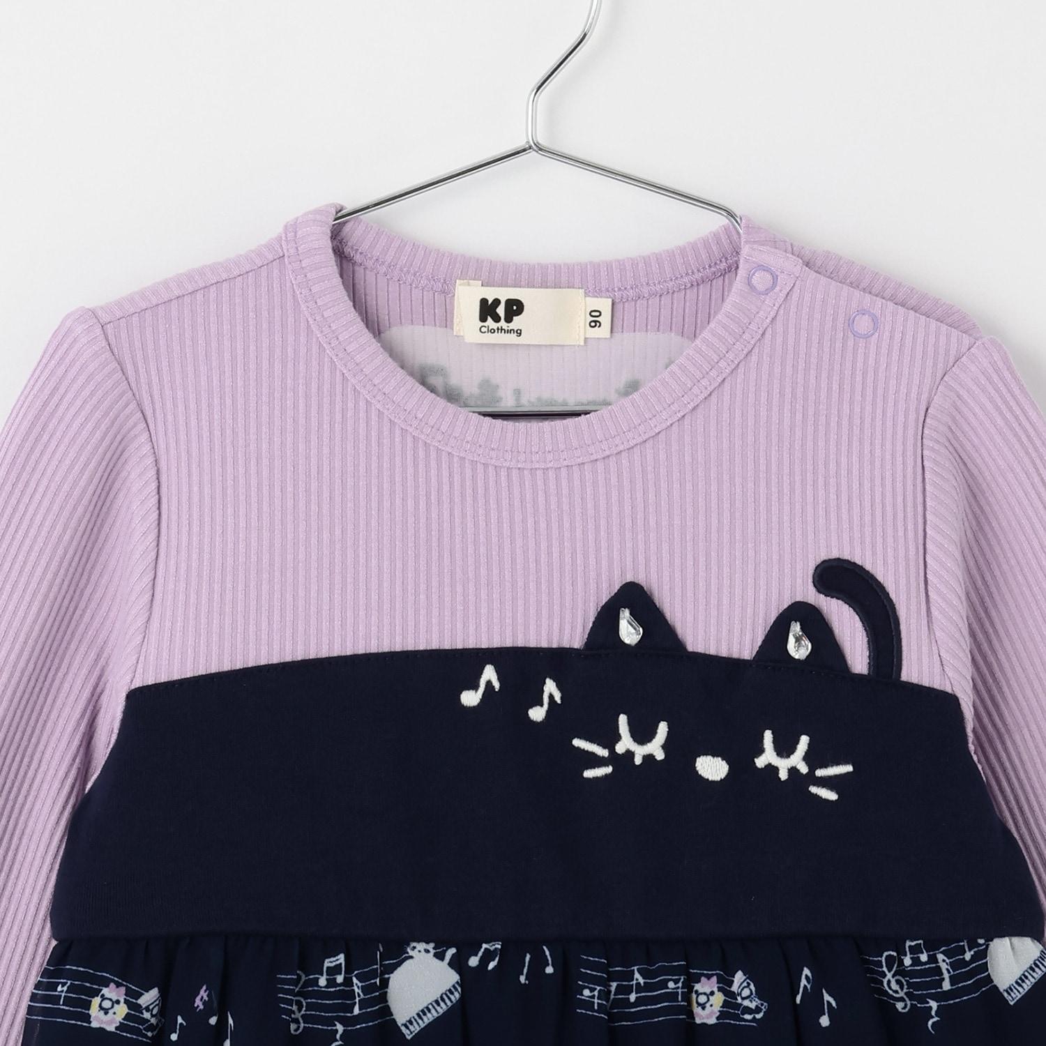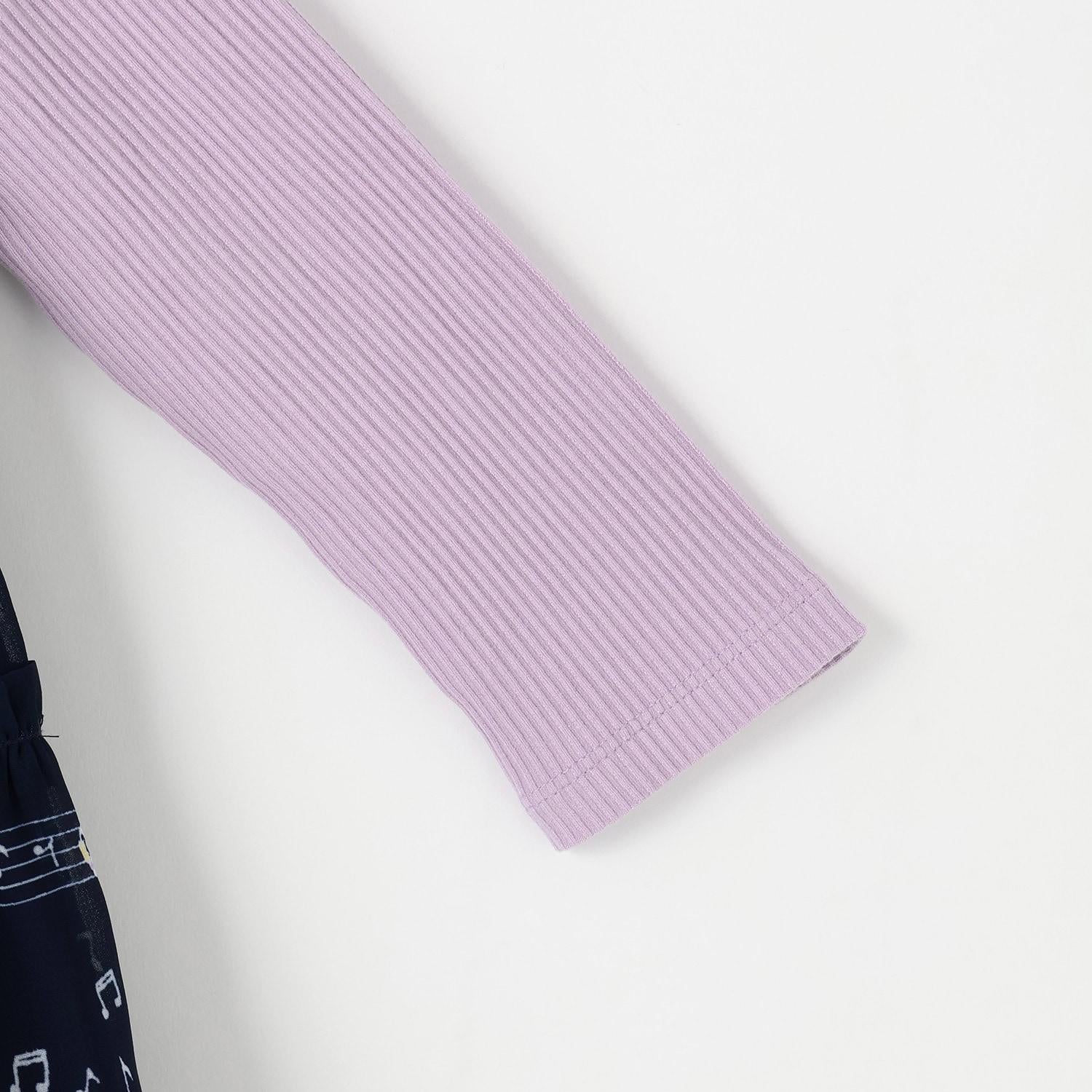 雪紡層疊式連衣裙,印有 MIMI 作為音樂家、鋼琴和五線譜的圖案。半身裙式的過渡部分印有可可的臉部圖案和可愛的裝飾。90 厘米版的左肩開口。