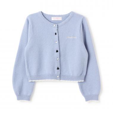 迷人的音符形小紐扣和下襬的迷你荷葉邊。