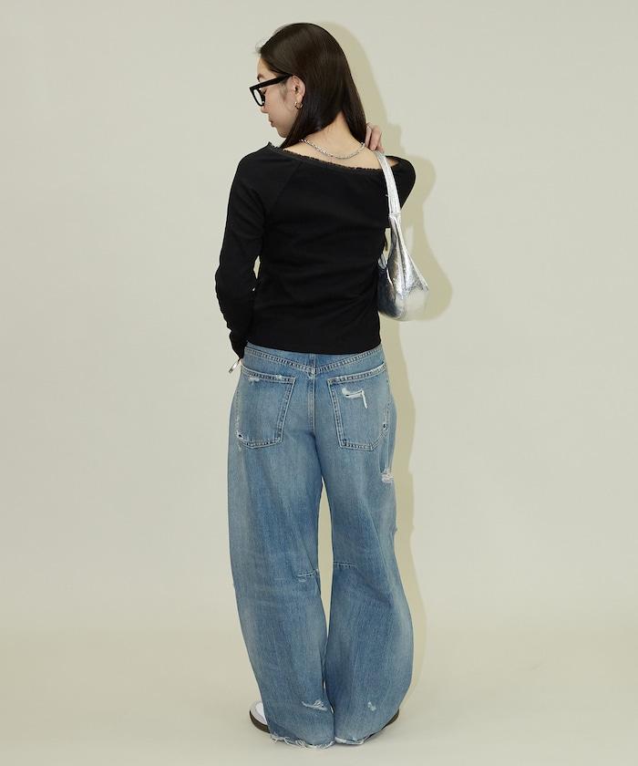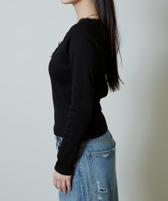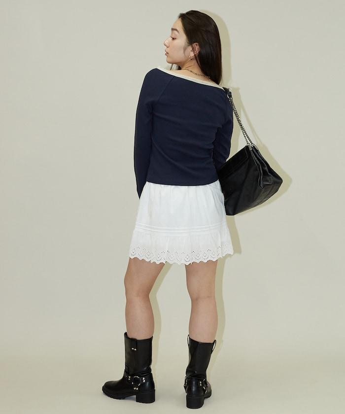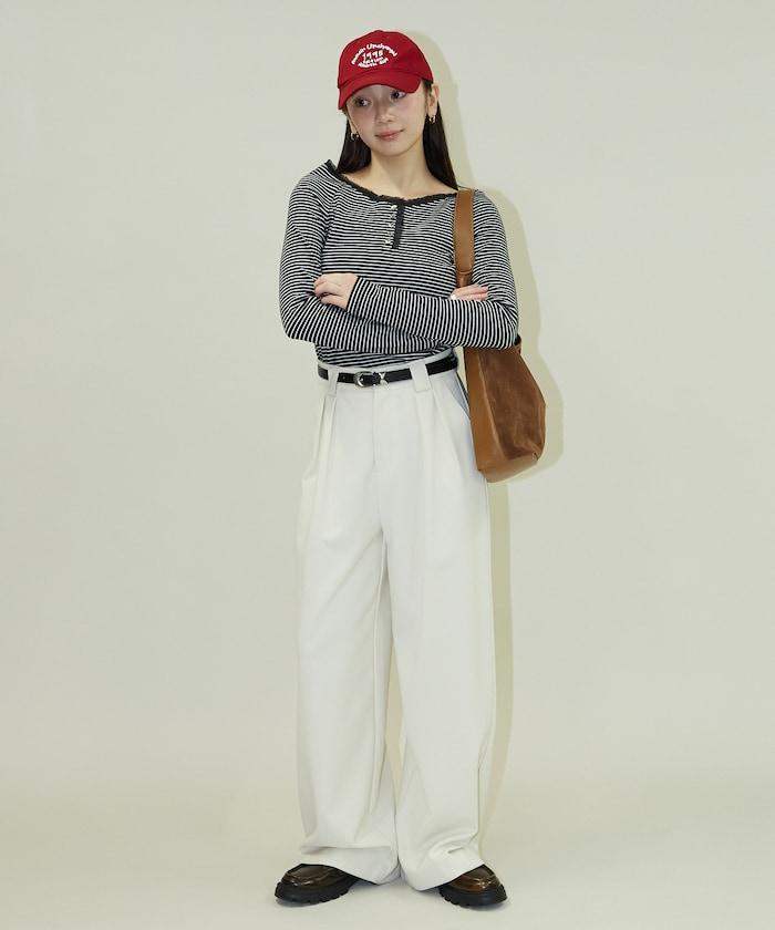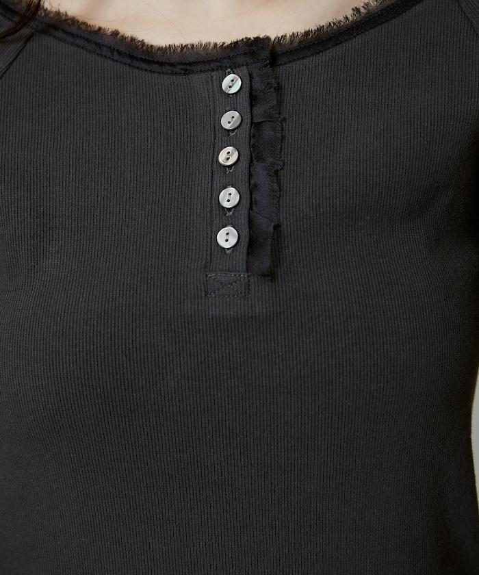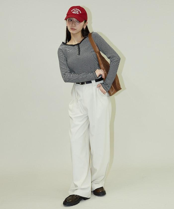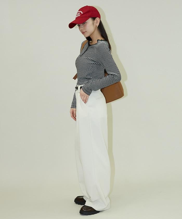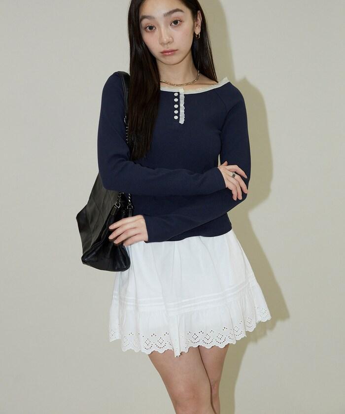 羅紋上衣,採用雞心領設計,衣領處有微妙的彩色編碼細節。