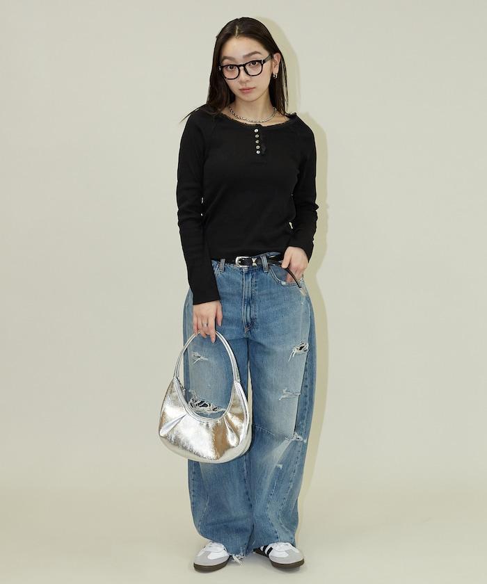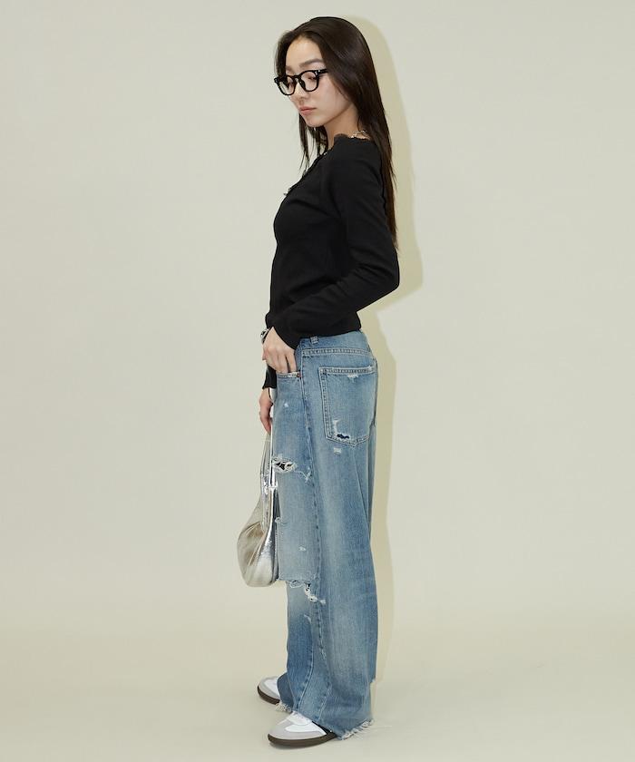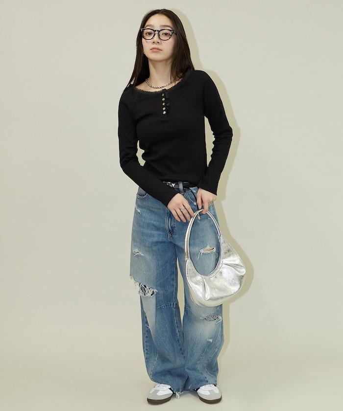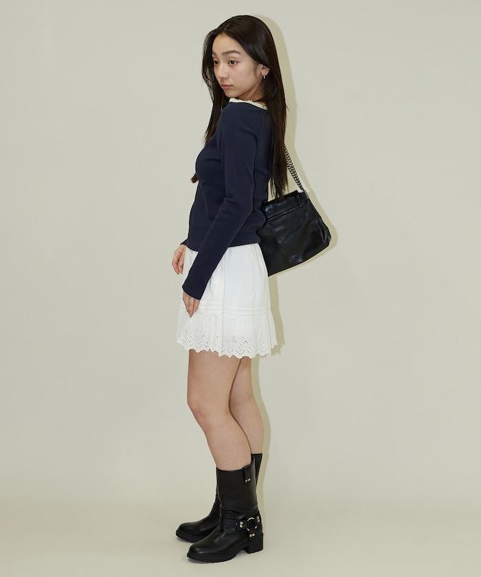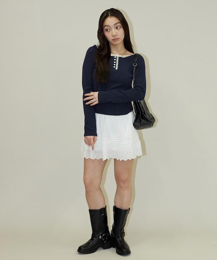 將其作為吊帶裙或牛仔裙的內搭,以雞心領設計為點綴,完成層次搭配。