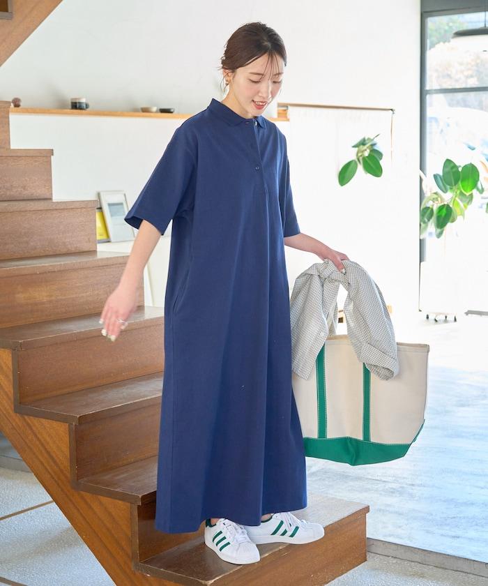 這款連衣裙採用經典的馬球領設計,充滿季節氣息。
