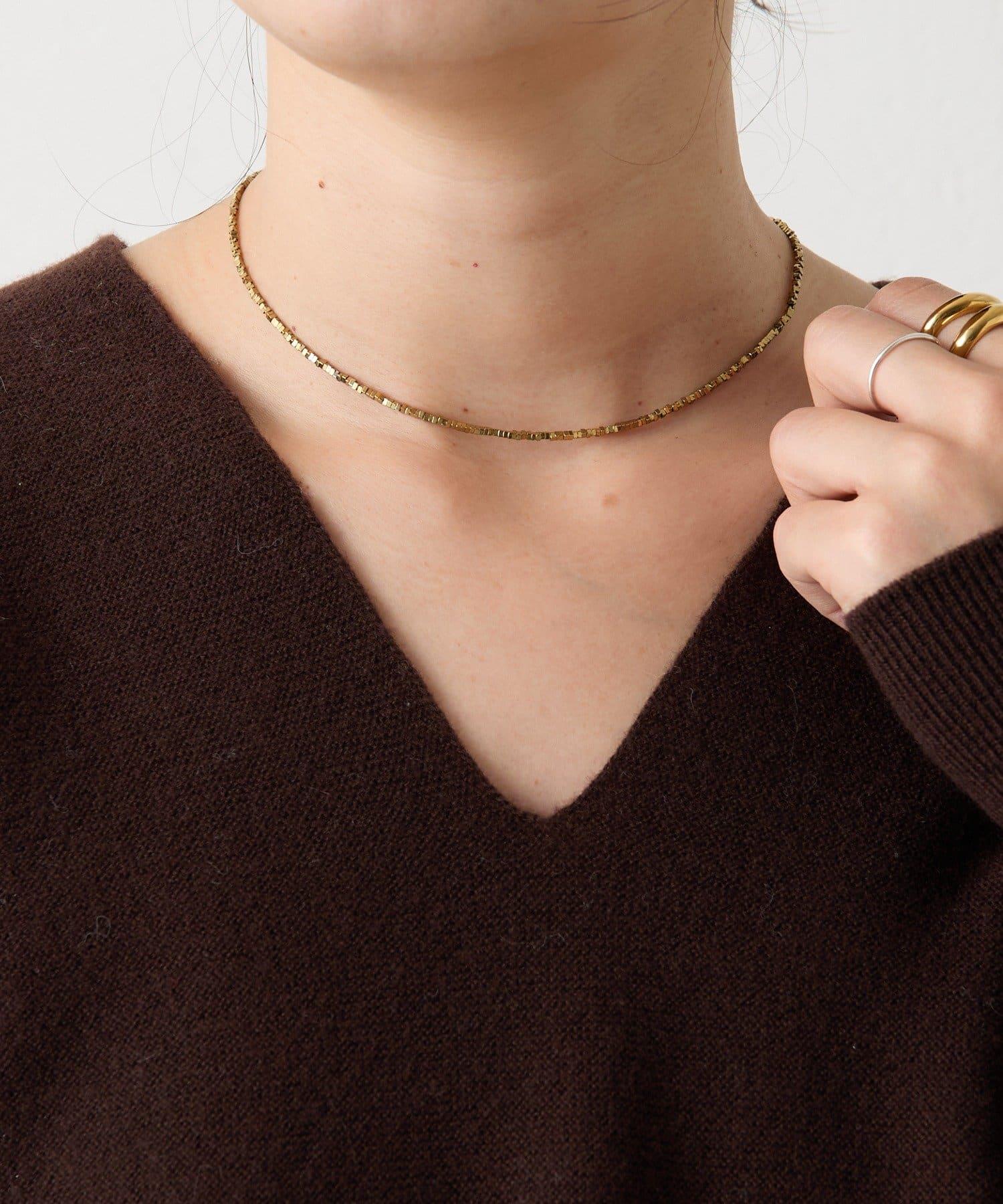 方形切割的赤鐵礦珠子為頸部增添了微妙的亮點。