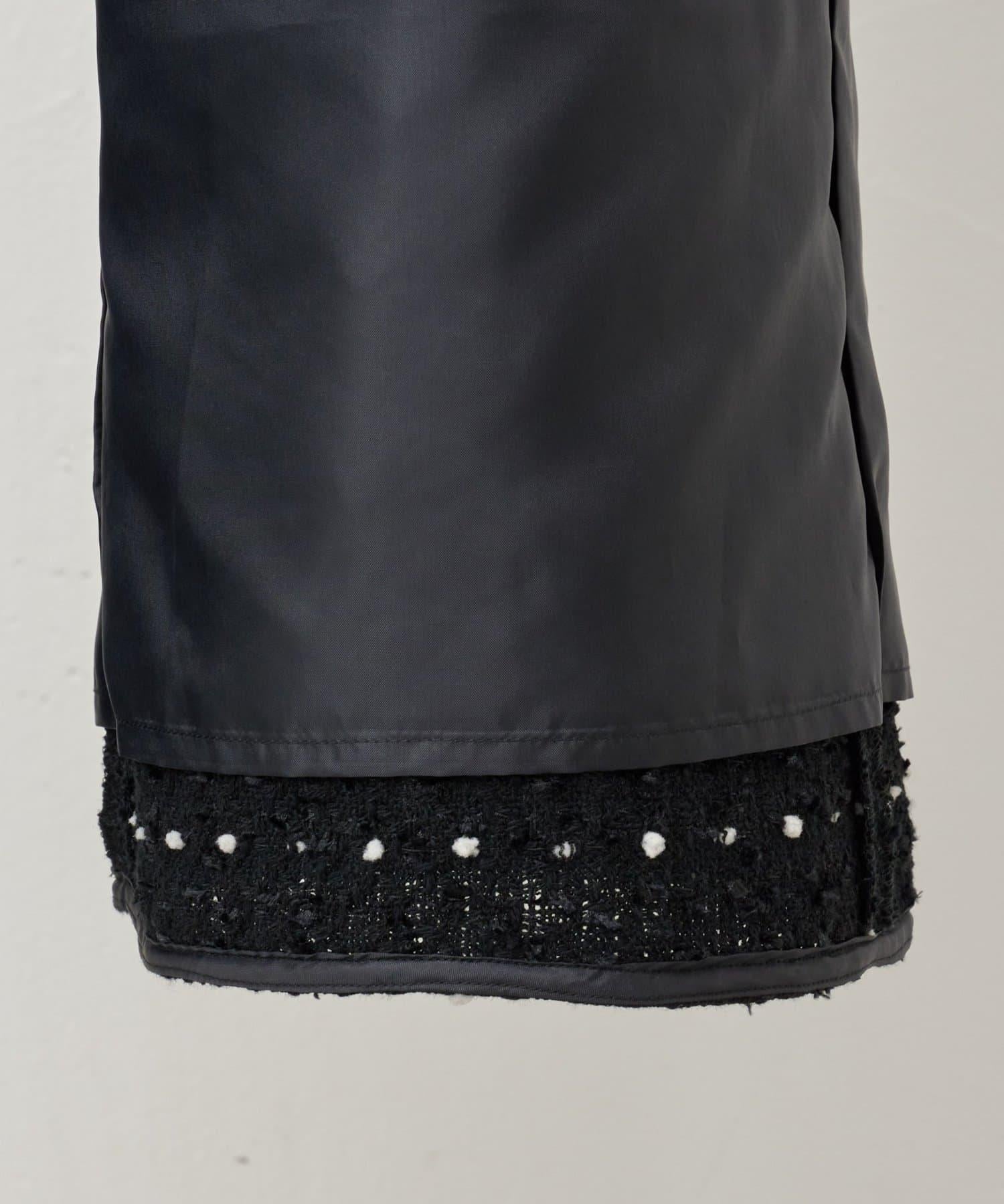 粗花呢面料採用閃亮紗線和白色編織紗線編織而成,表現出凹凸感。