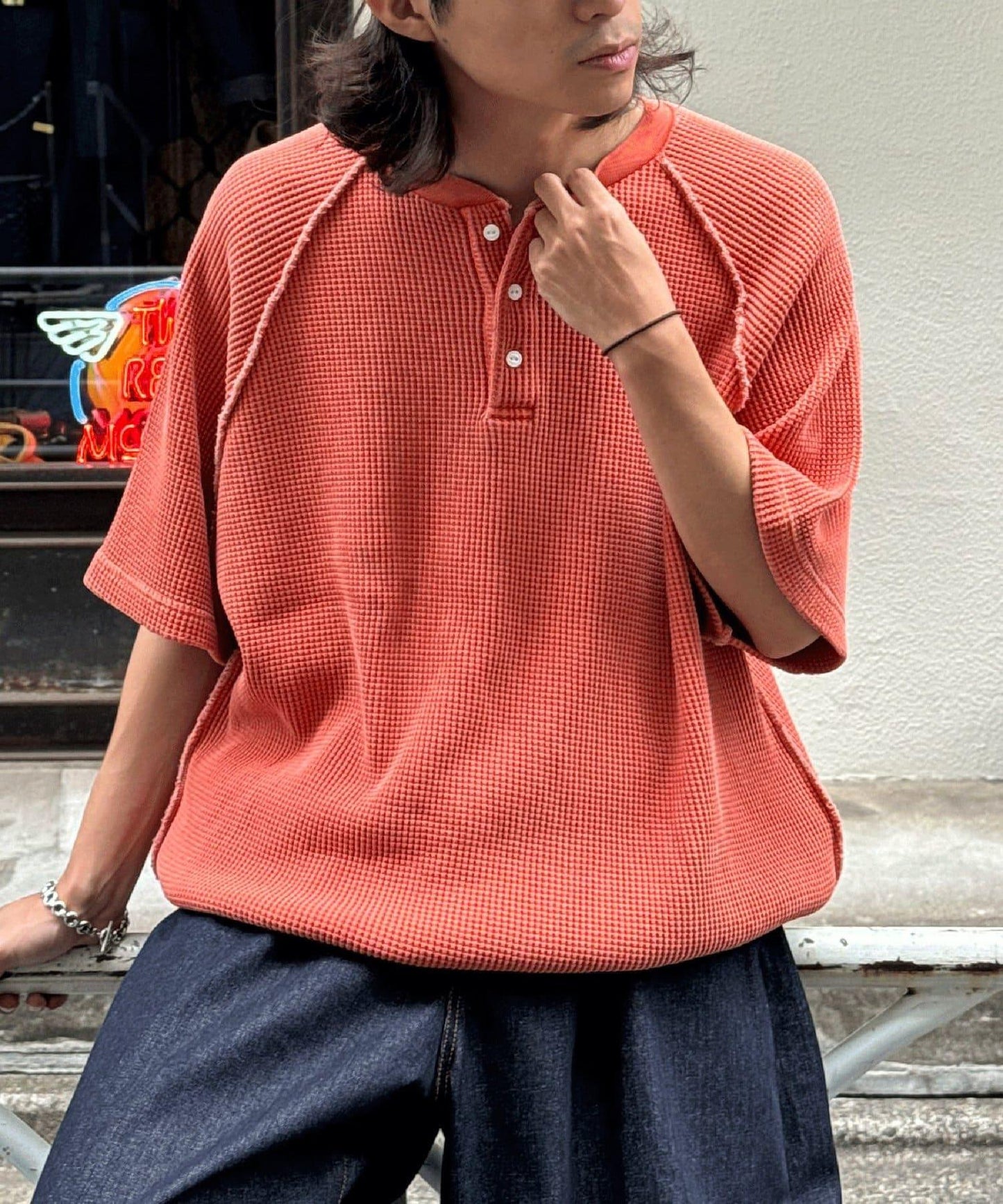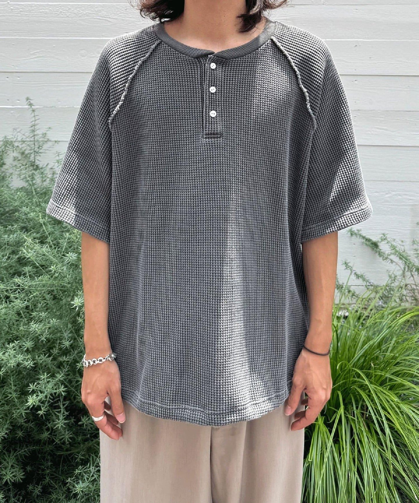 這款華夫格雞心領剪裁縫製 T 恤有著迷人的顏料色調。