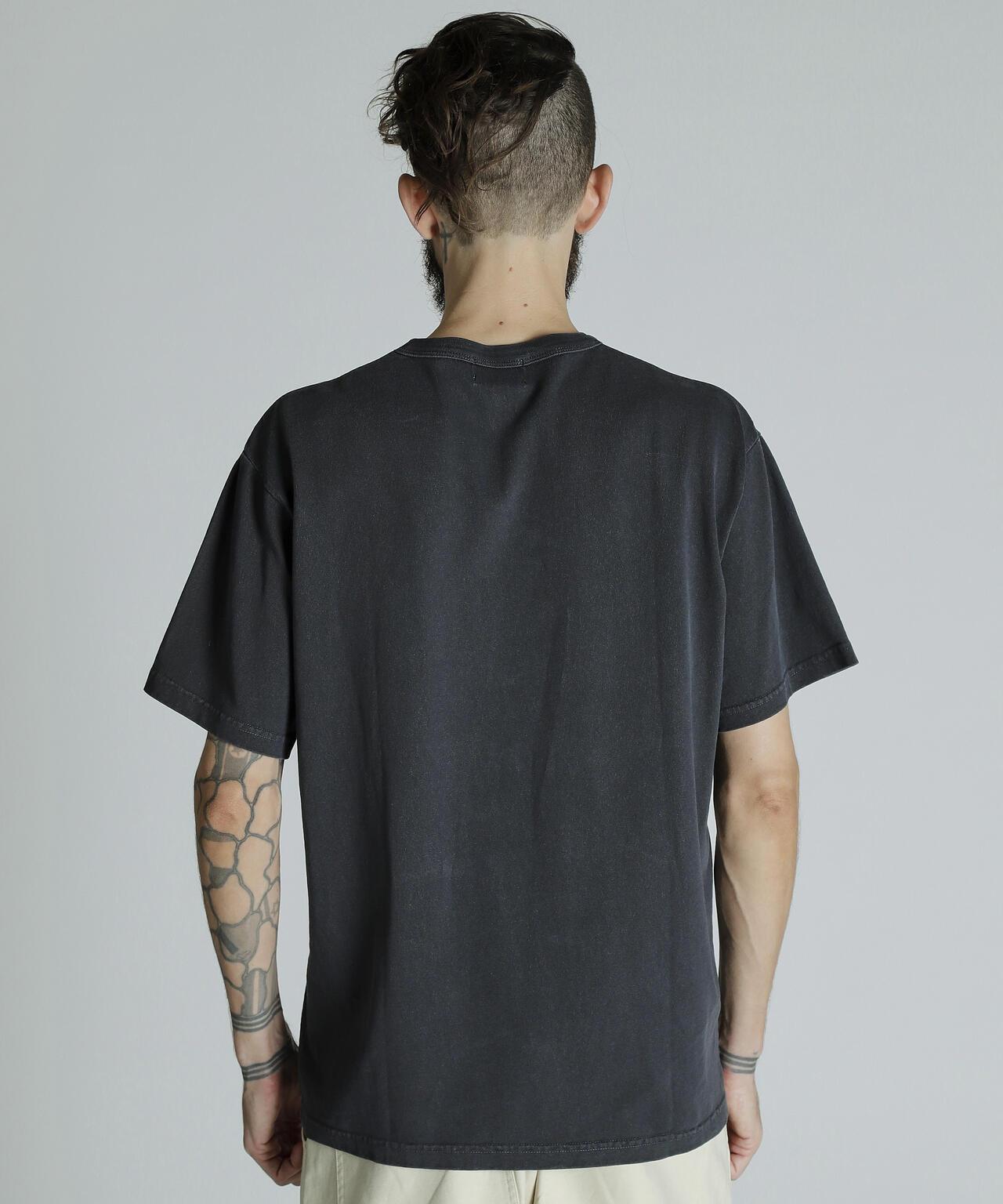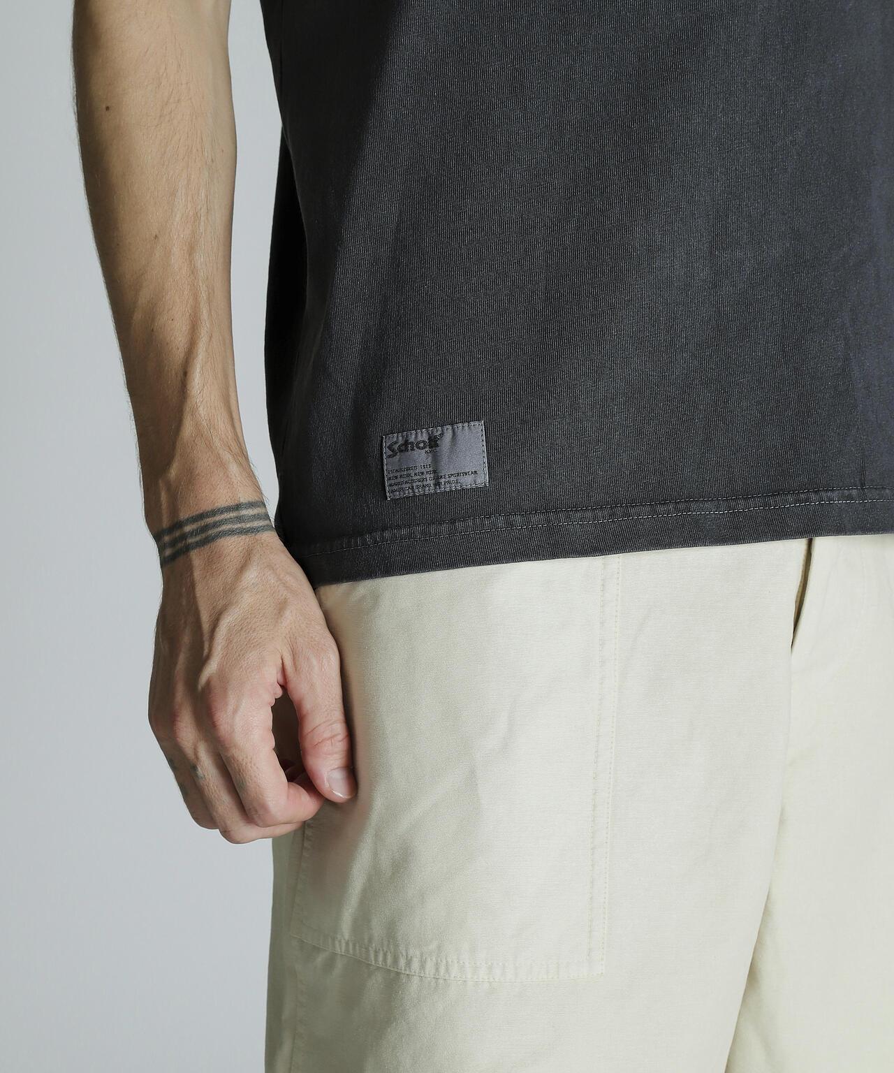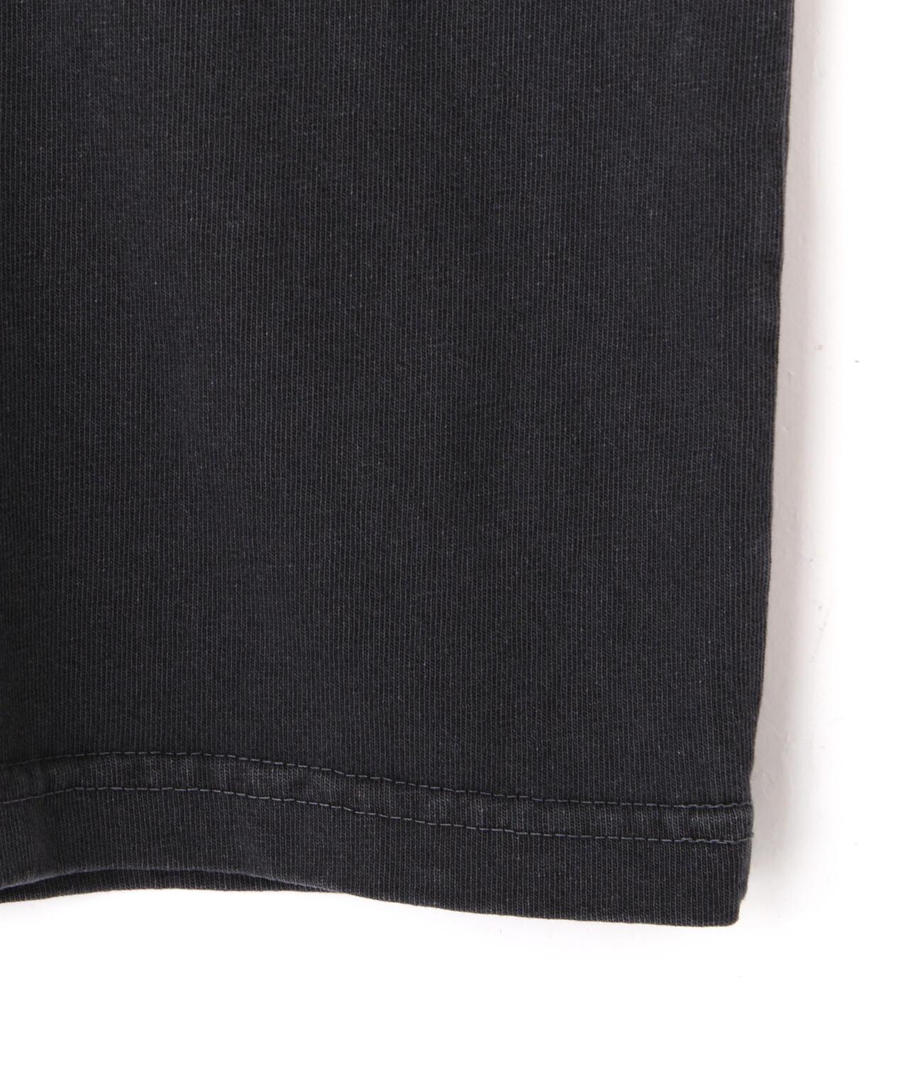 採用堅實厚實的 7 盎司紗體的 T 恤,具有開口紗線特有的蓬鬆體積感。另一方面,乾爽、粗糙和堅硬的質地給人一種美國品牌特有的力量感和粗獷感,使其成為可以穿很多年的單品。領子採用了粘合劑領,縫製時將領子部分的帶子纏繞在身體上。它具有首屈一指的耐用性,衣身堅實厚實,堅韌的結構足以應對大量使用,非常吸引人。此外,這款 T 恤經過顏料處理,採用的印花彷彿浸透了面料,自然地融入其中。從一開始,您就能享受到獨特的質感和磨損感。還可以享受每次穿著和洗滌後逐漸褪色的過程。