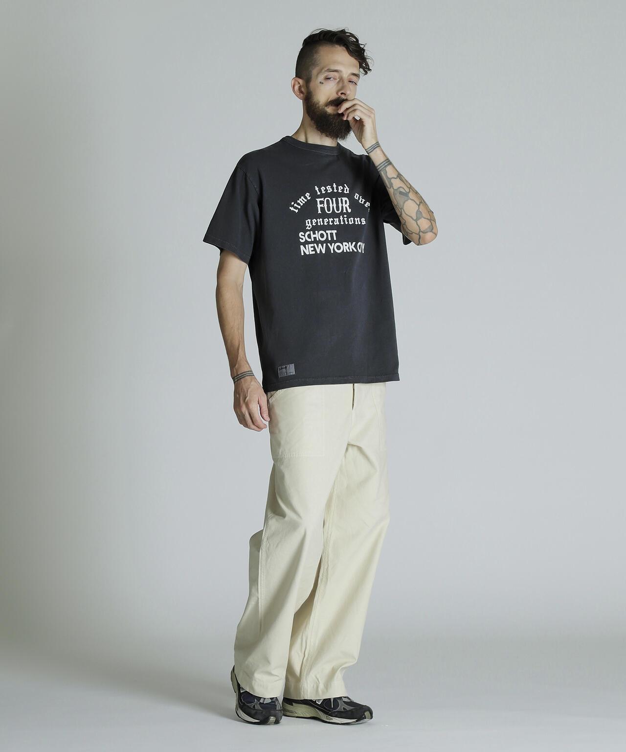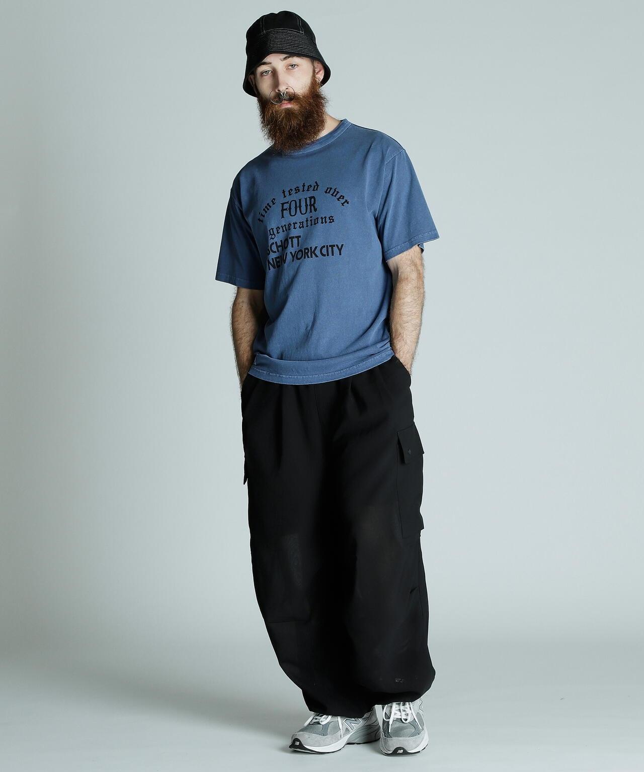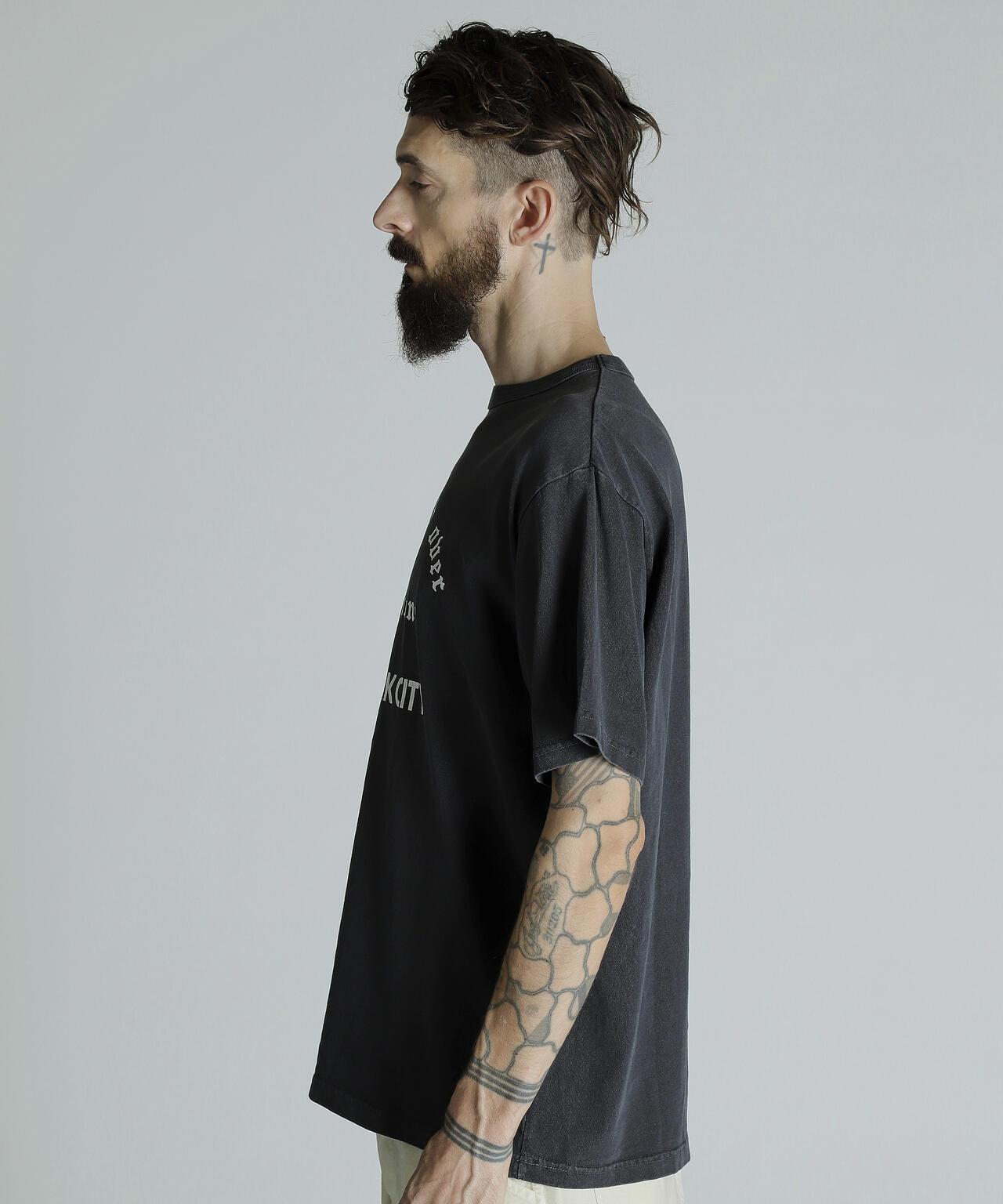 採用堅實厚實的 7 盎司紗體的 T 恤,具有開口紗線特有的蓬鬆體積感。另一方面,乾爽、粗糙和堅硬的質地給人一種美國品牌特有的力量感和粗獷感,使其成為可以穿很多年的單品。領子採用了粘合劑領,縫製時將領子部分的帶子纏繞在身體上。它具有首屈一指的耐用性,衣身堅實厚實,堅韌的結構足以應對大量使用,非常吸引人。此外,這款 T 恤經過顏料處理,採用的印花彷彿浸透了面料,自然地融入其中。從一開始,您就能享受到獨特的質感和磨損感。還可以享受每次穿著和洗滌後逐漸褪色的過程。