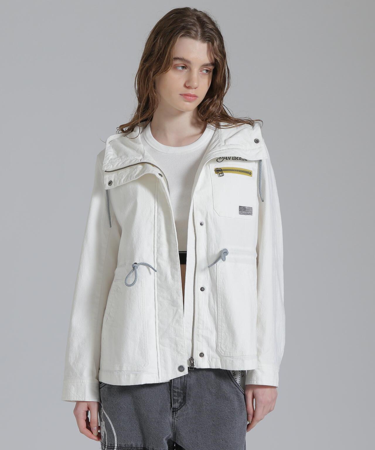 AVIREX 官方旗艦店] 2025 春季新品彩色拉鍊連體夾克 - 收緊腰部,也可穿出簡潔廓形。繩帶和拉鍊的配色是點睛之筆。這款夾克適合春秋兩季穿著,不受時尚潮流影響。推薦造型長度超過臀部,便於造型。這款外套易於搭配各種廓形的下裝,如裙子和褲子。純色面料可在春季作為外衣穿著,也可在秋季搭配靴子,打造時髦造型。AVIREX WOMAN] 該系列將純正軍裝的功能性和設計感投射到女式休閒裝上。作為一個獨特而永恆的女裝品牌。