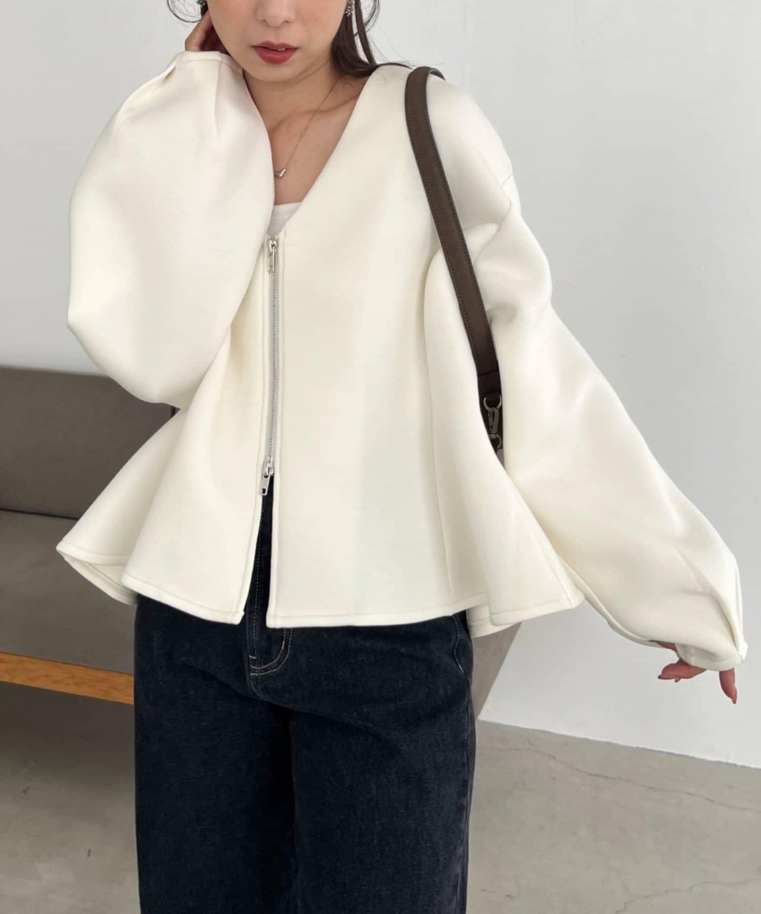 【顯瘦提臀】荷葉邊拉鍊開衫