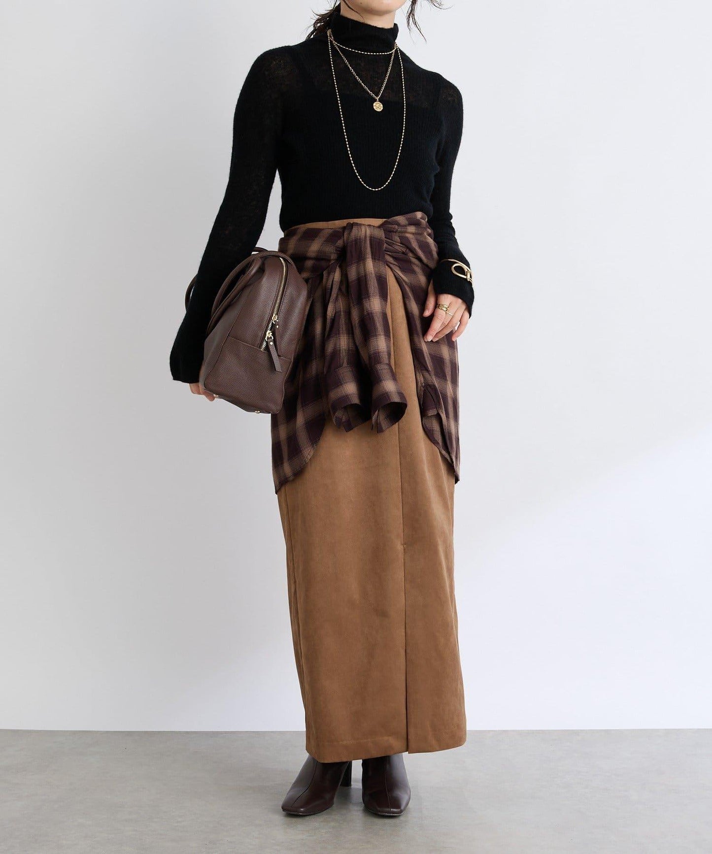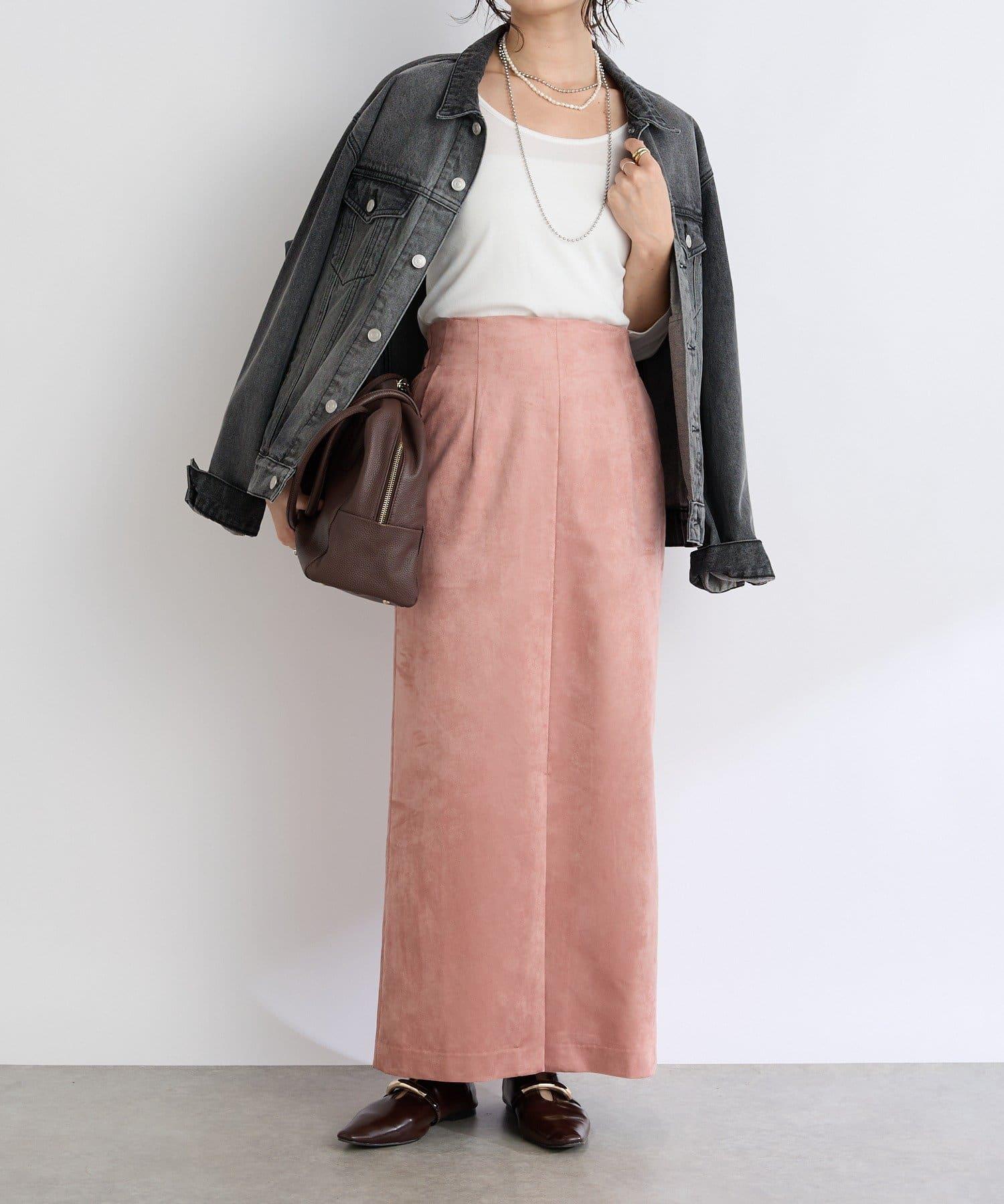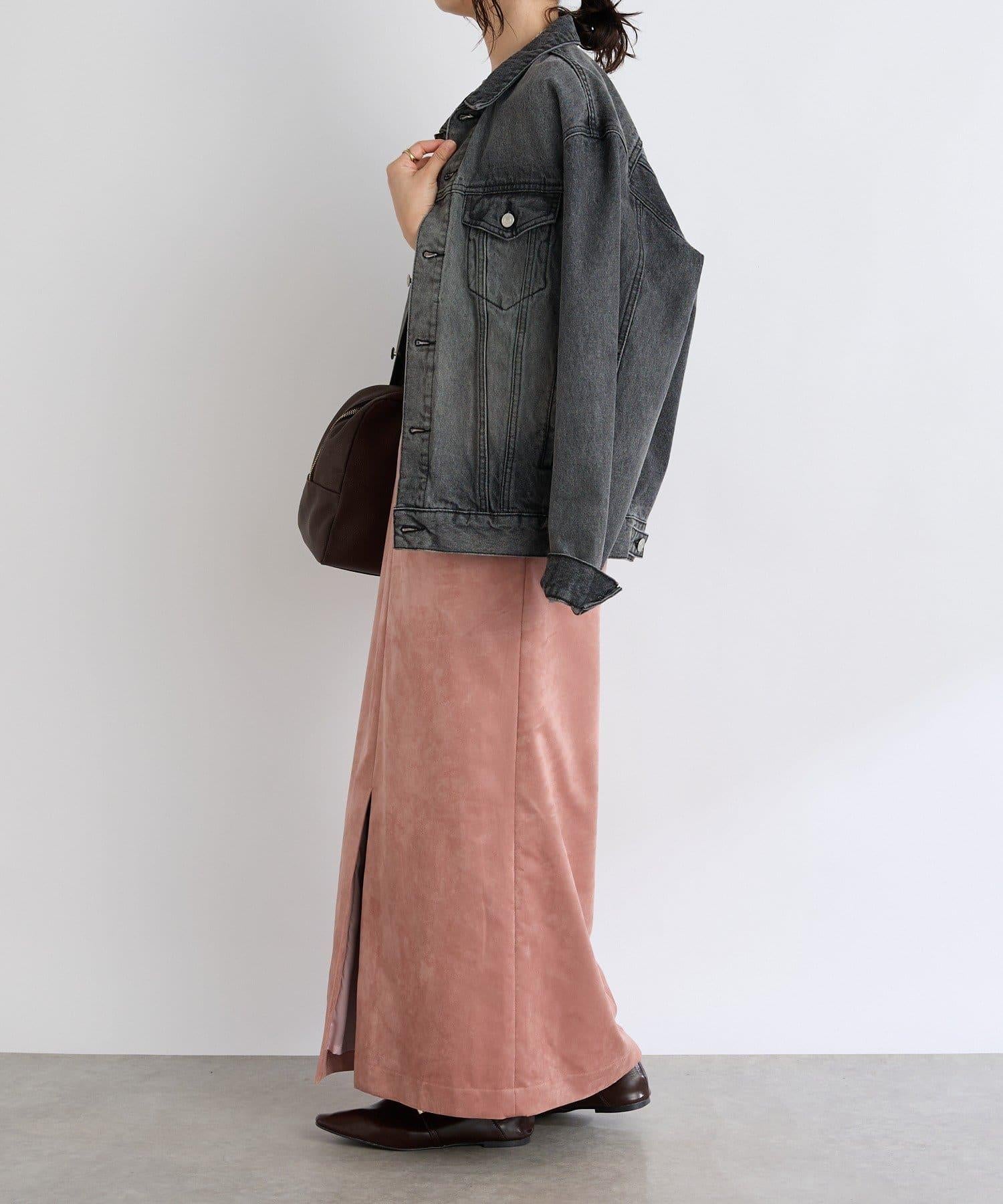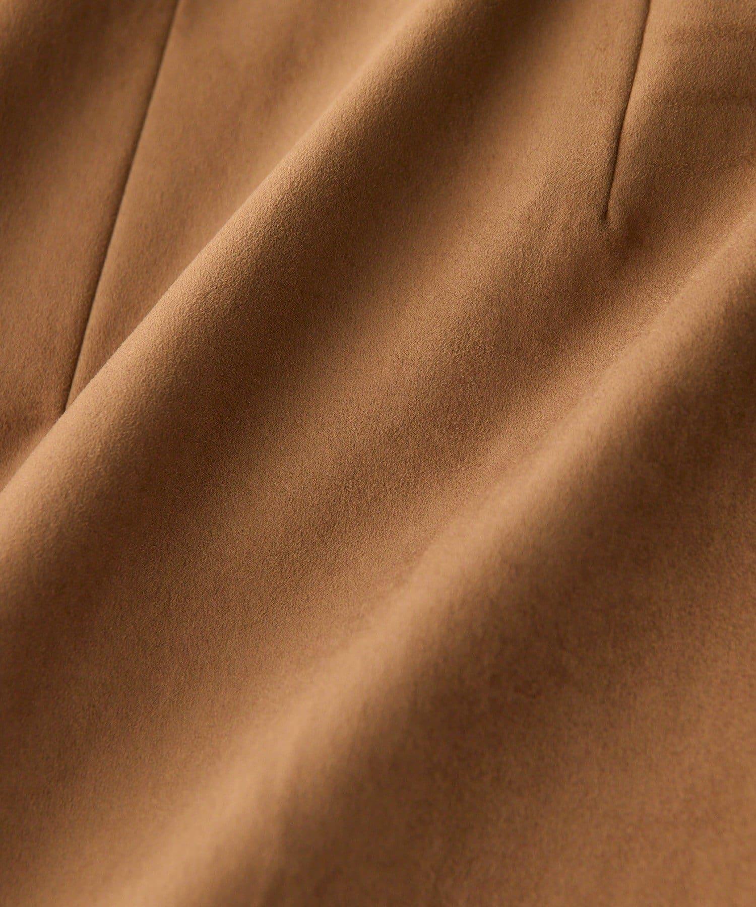 採用本季流行的仿麂皮材質,是一款應季單品。