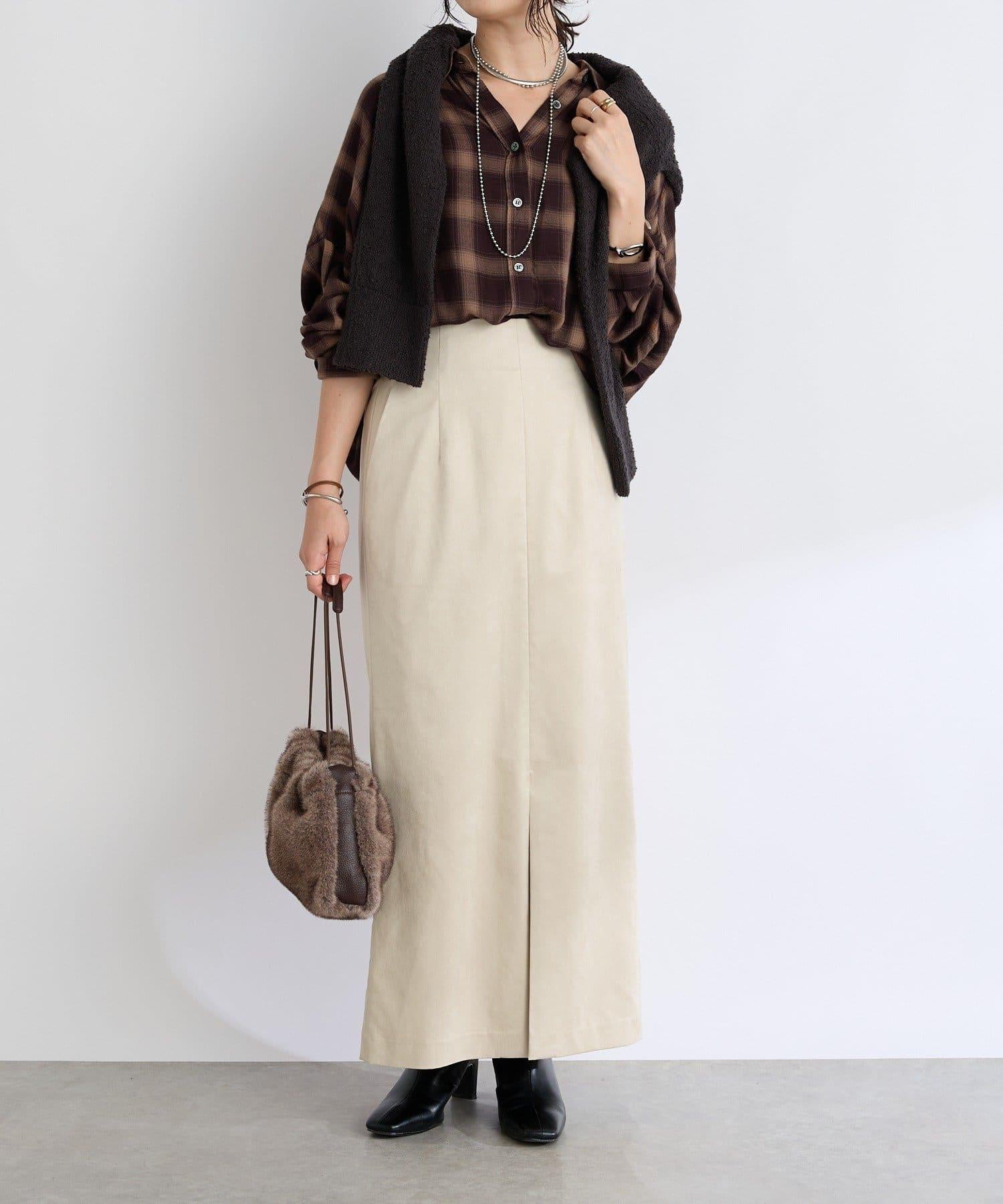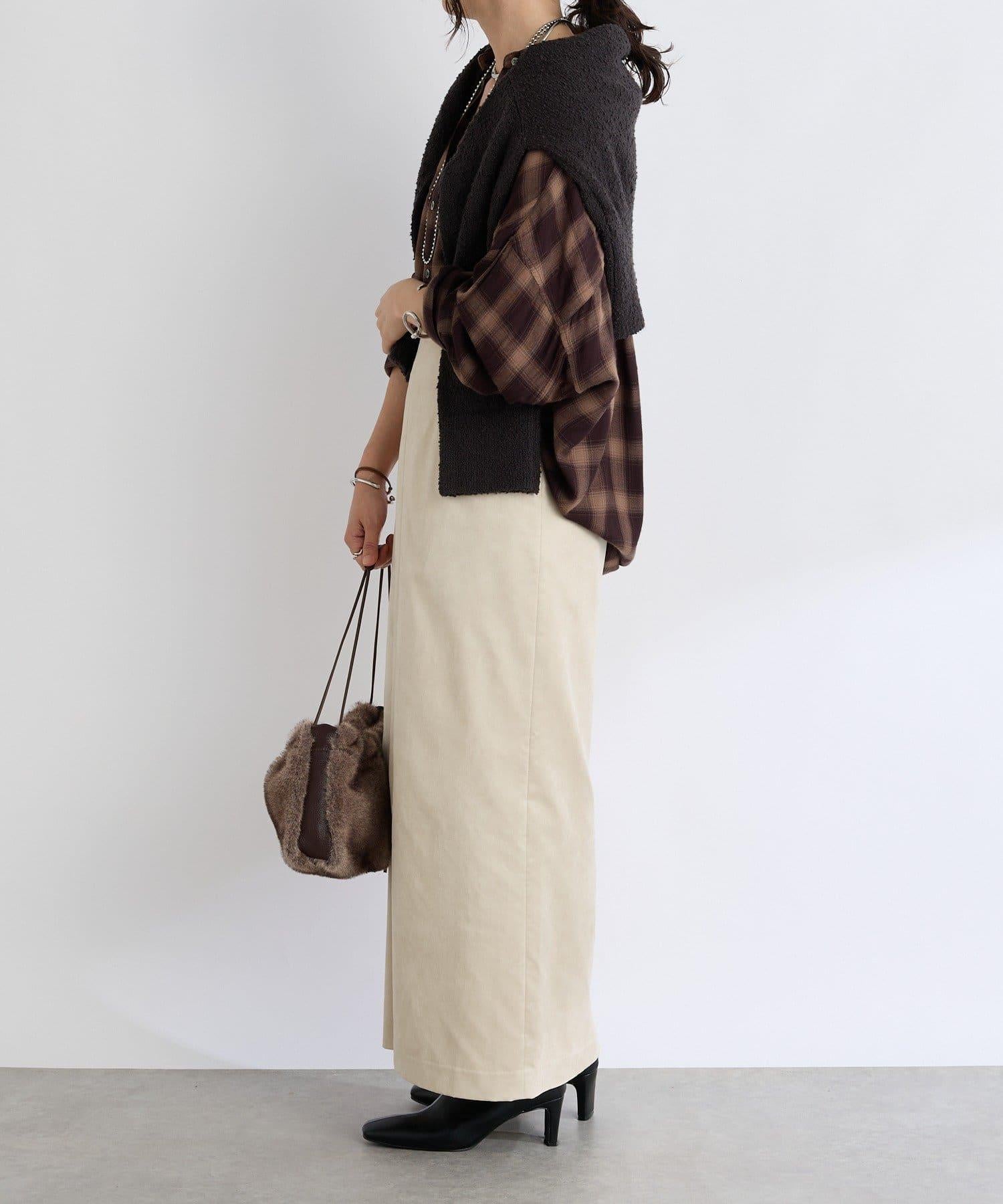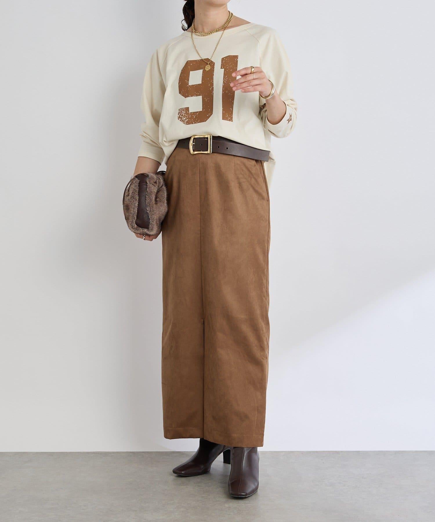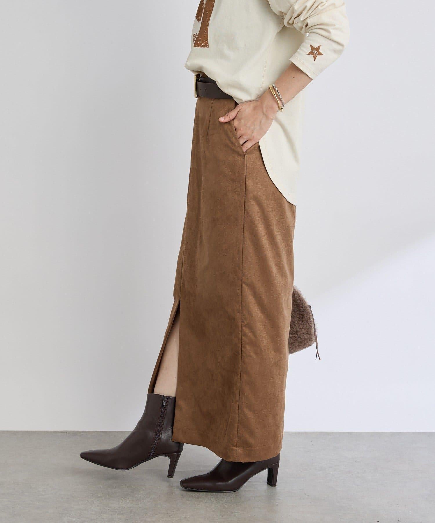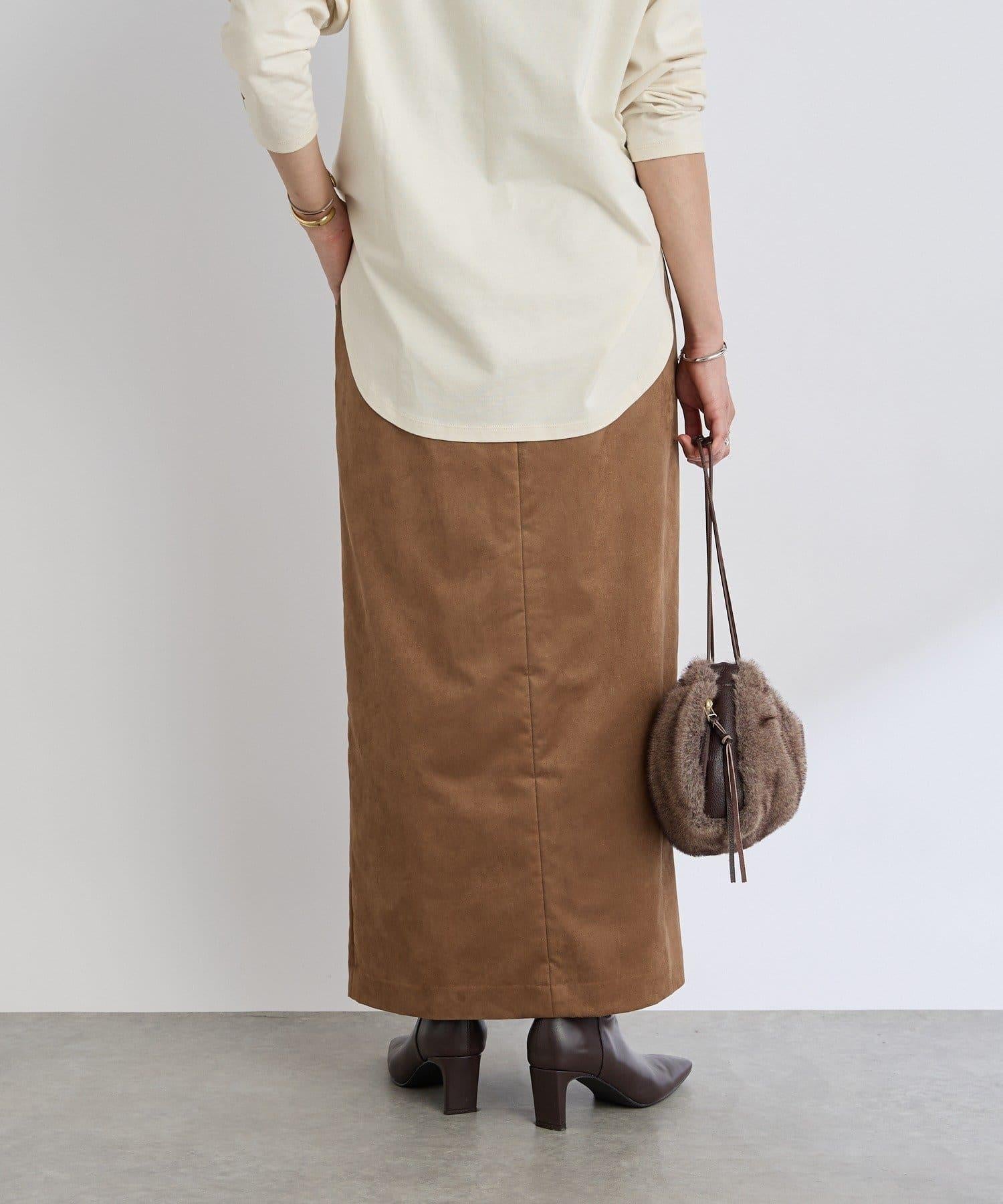 採用本季流行的仿麂皮材質,是一款應季單品。