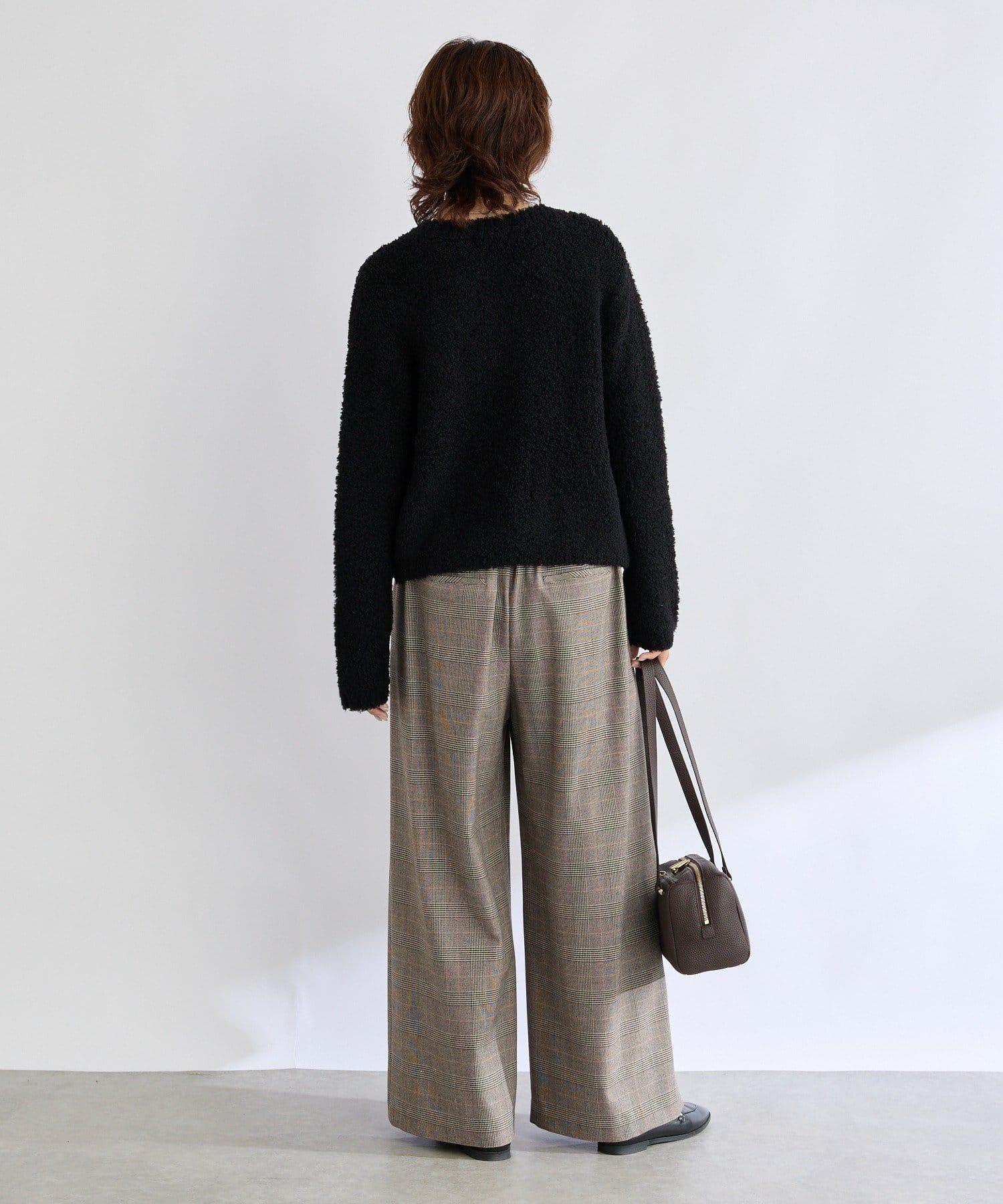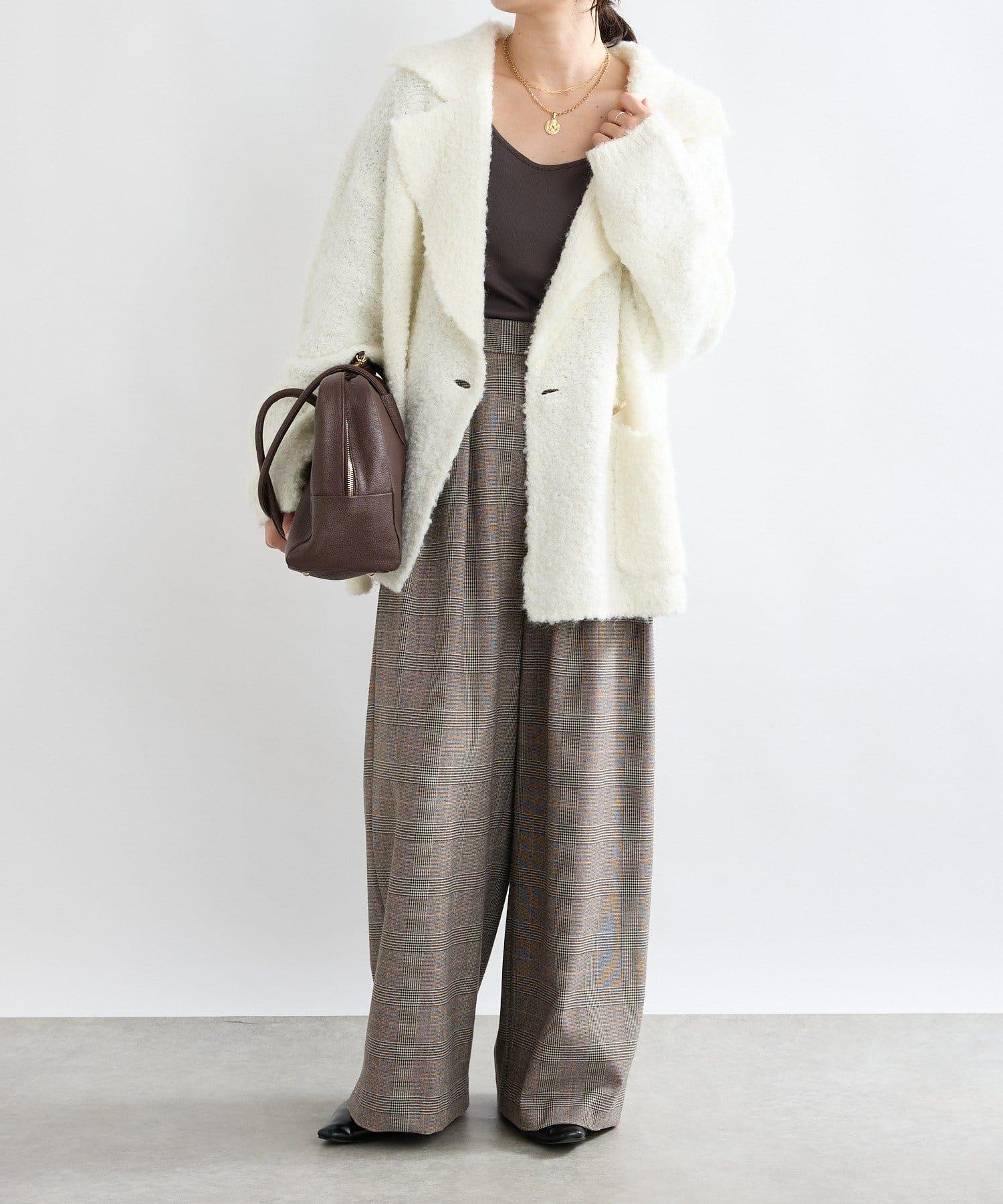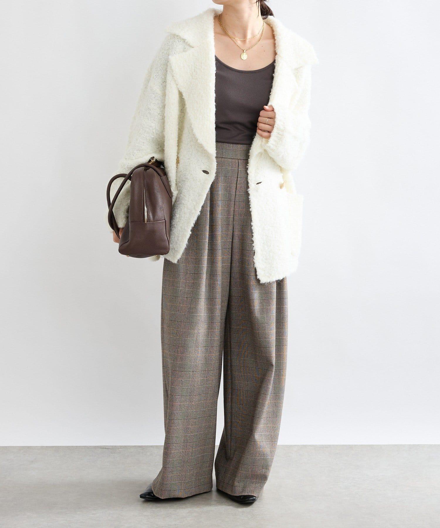 外觀時尚的長褲,由保暖的仿毛材料製成