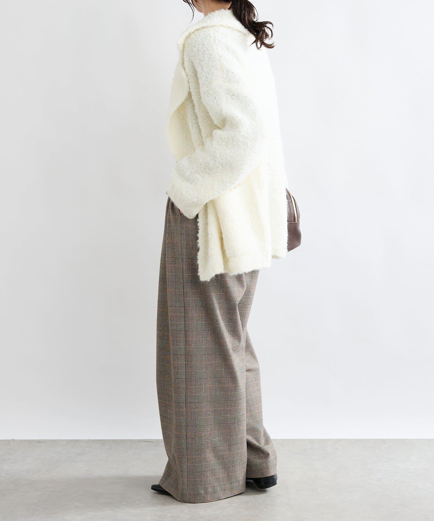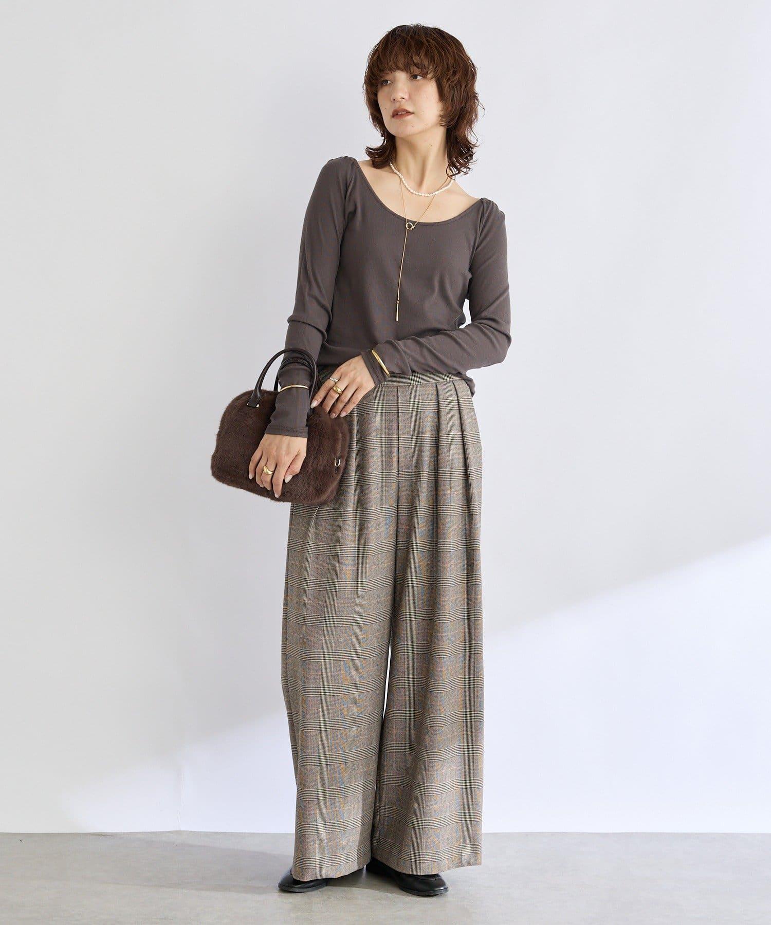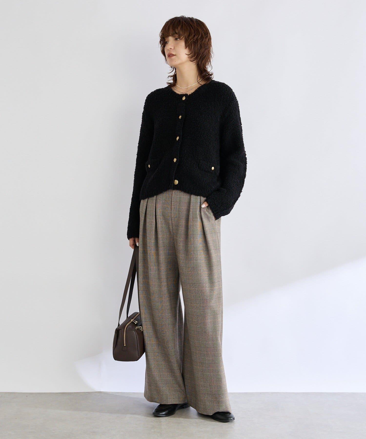外觀時尚的長褲,由保暖的仿毛材料製成