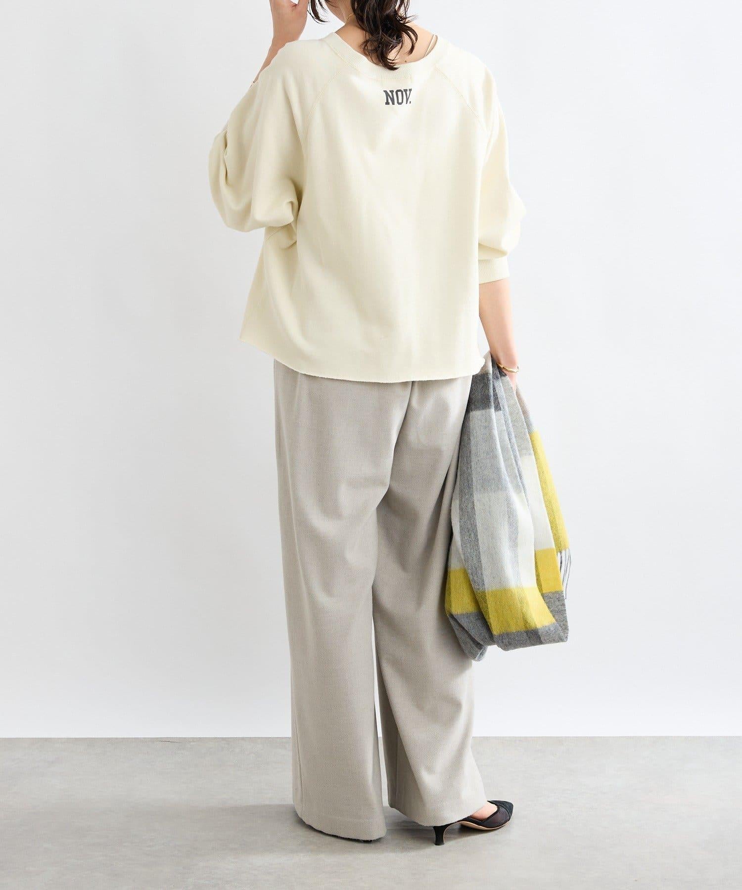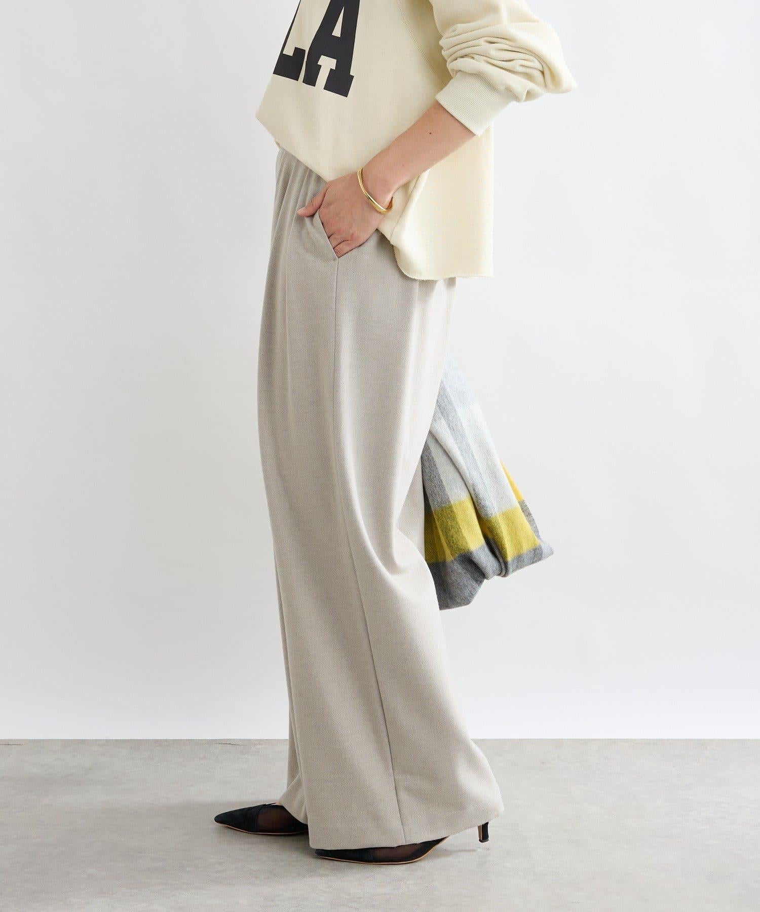 這款秋冬季面料的長褲採用了內搭寬鬆休閒褲的細節和輪廓。