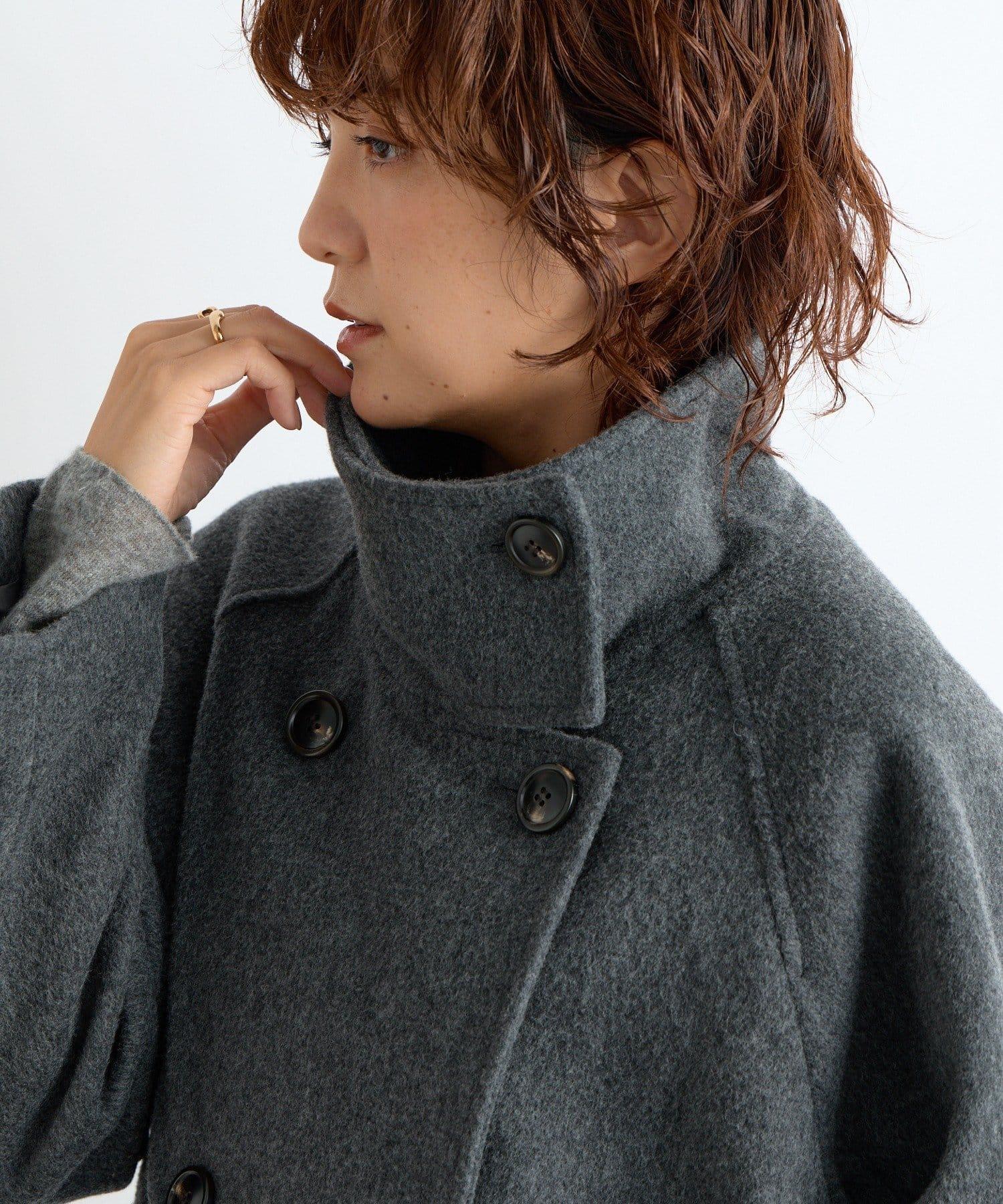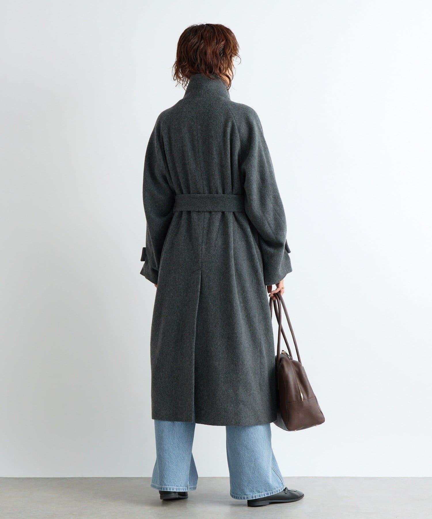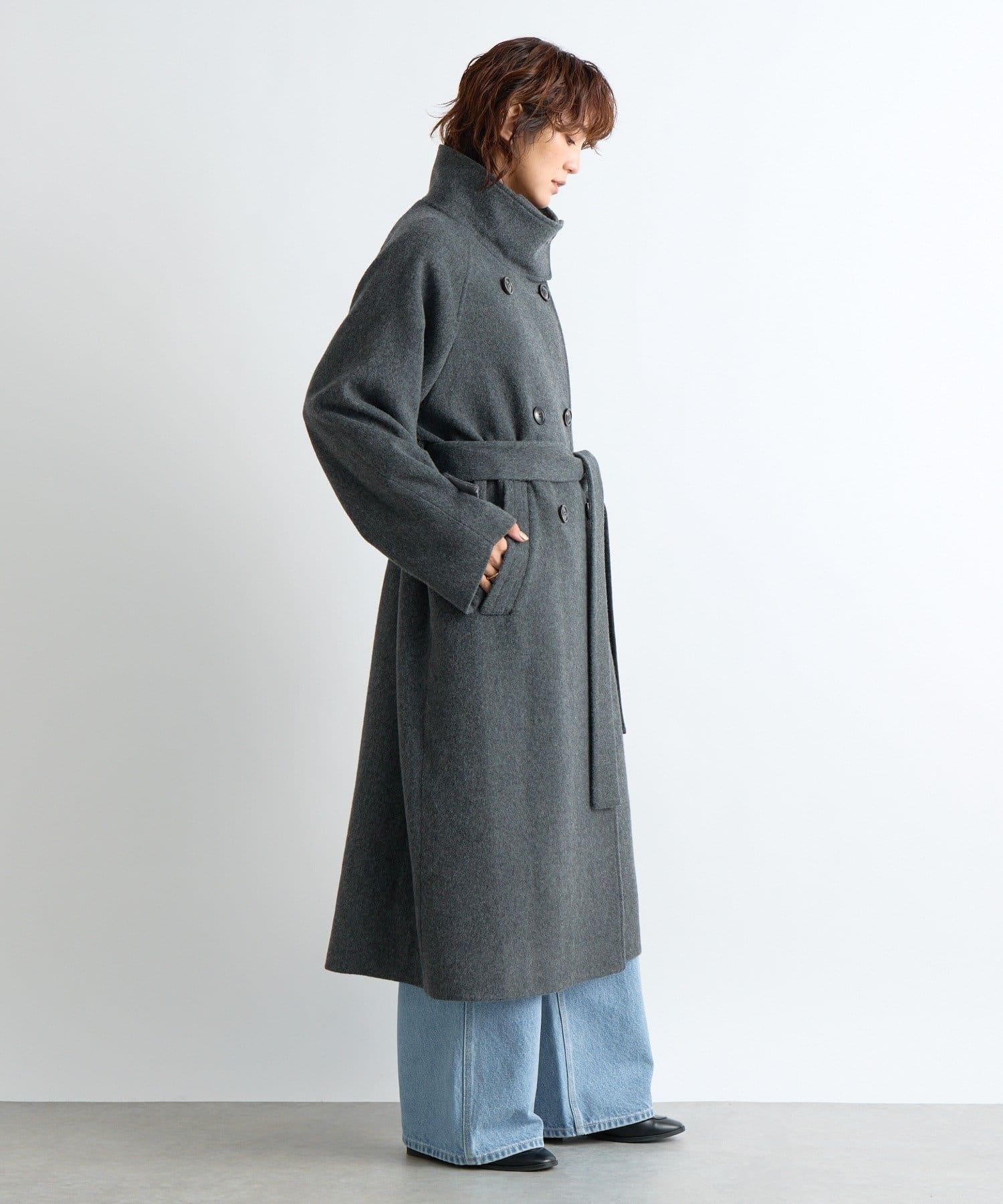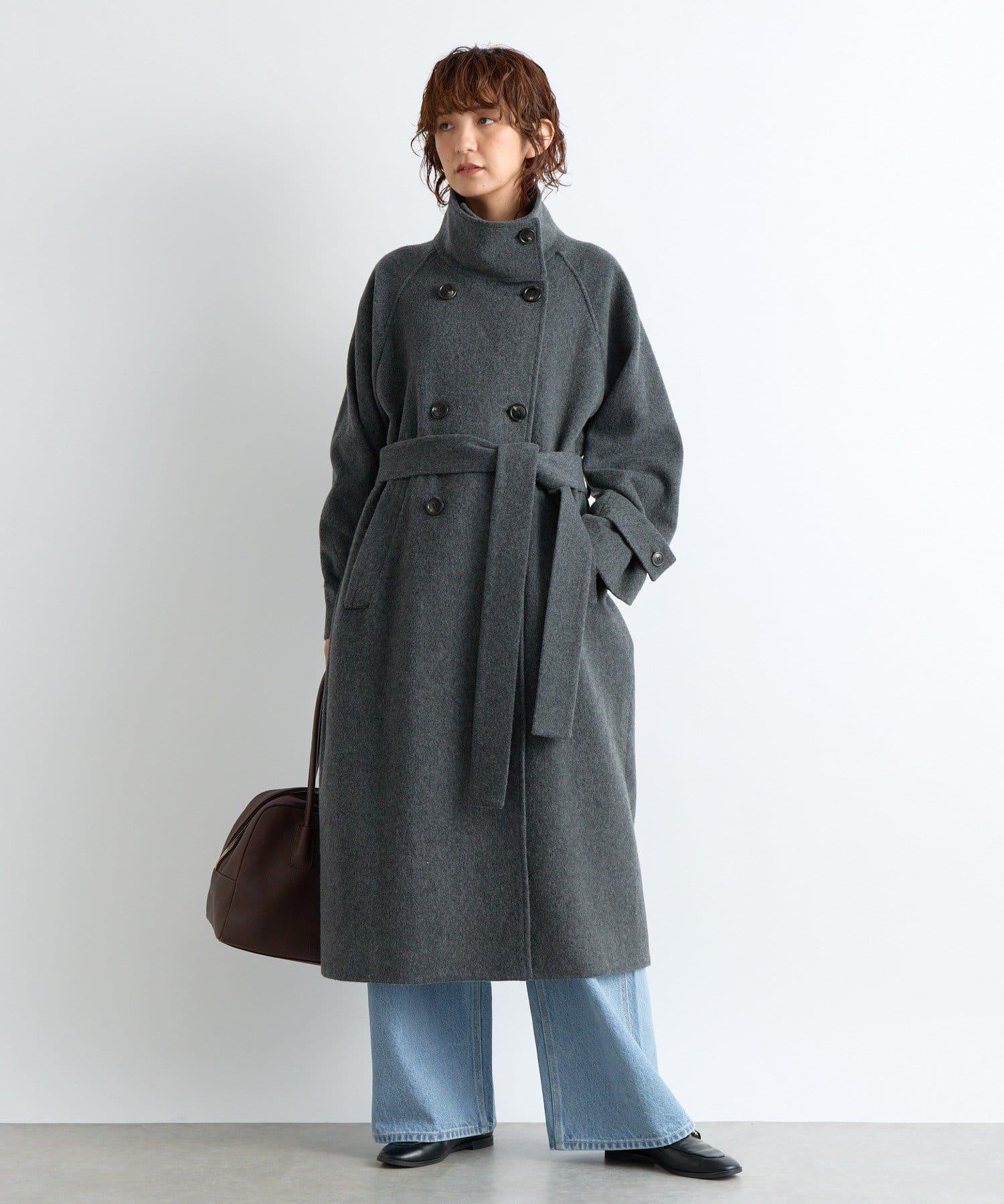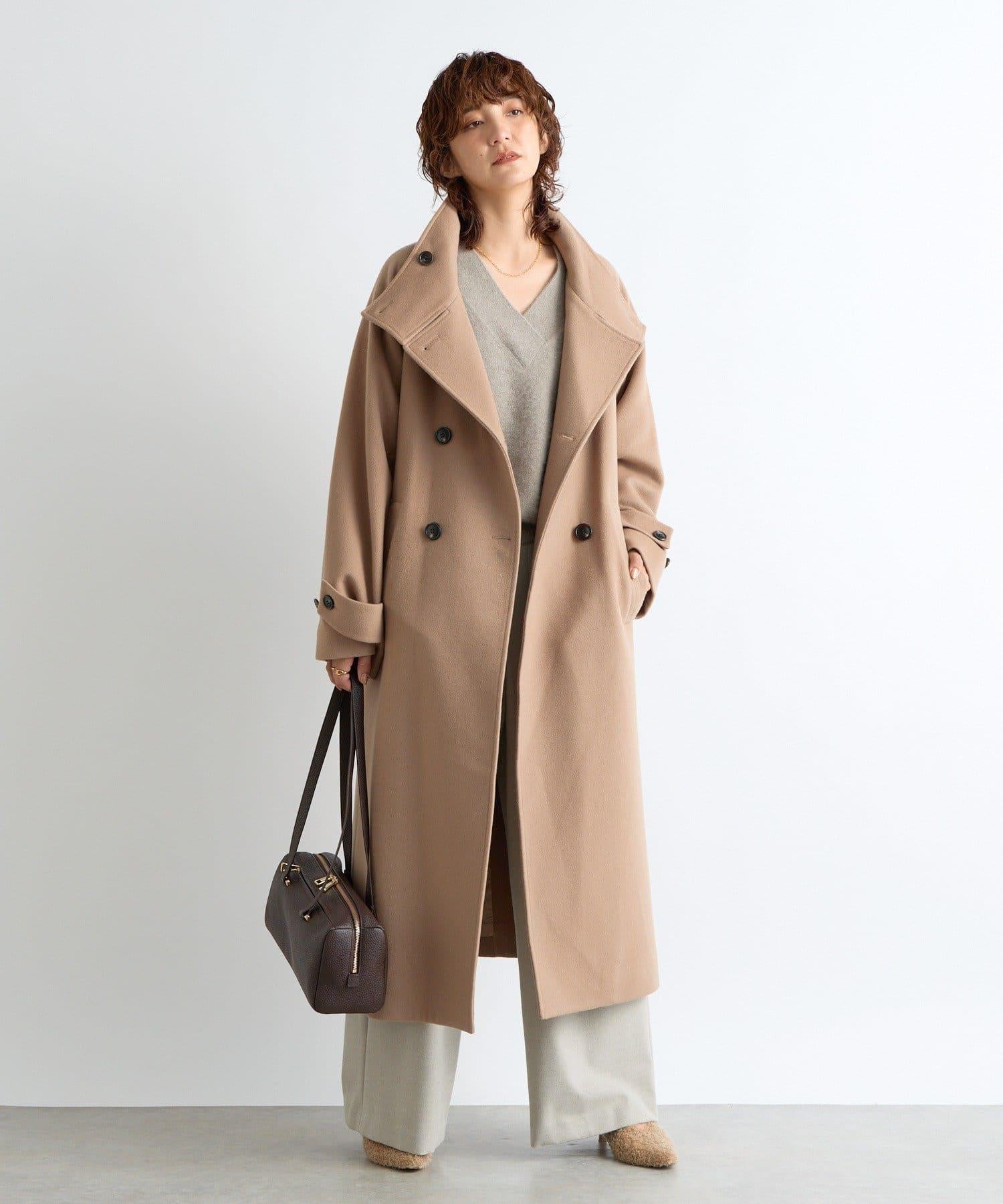 領口設計的大衣很討人喜歡,可立穿也可平放。