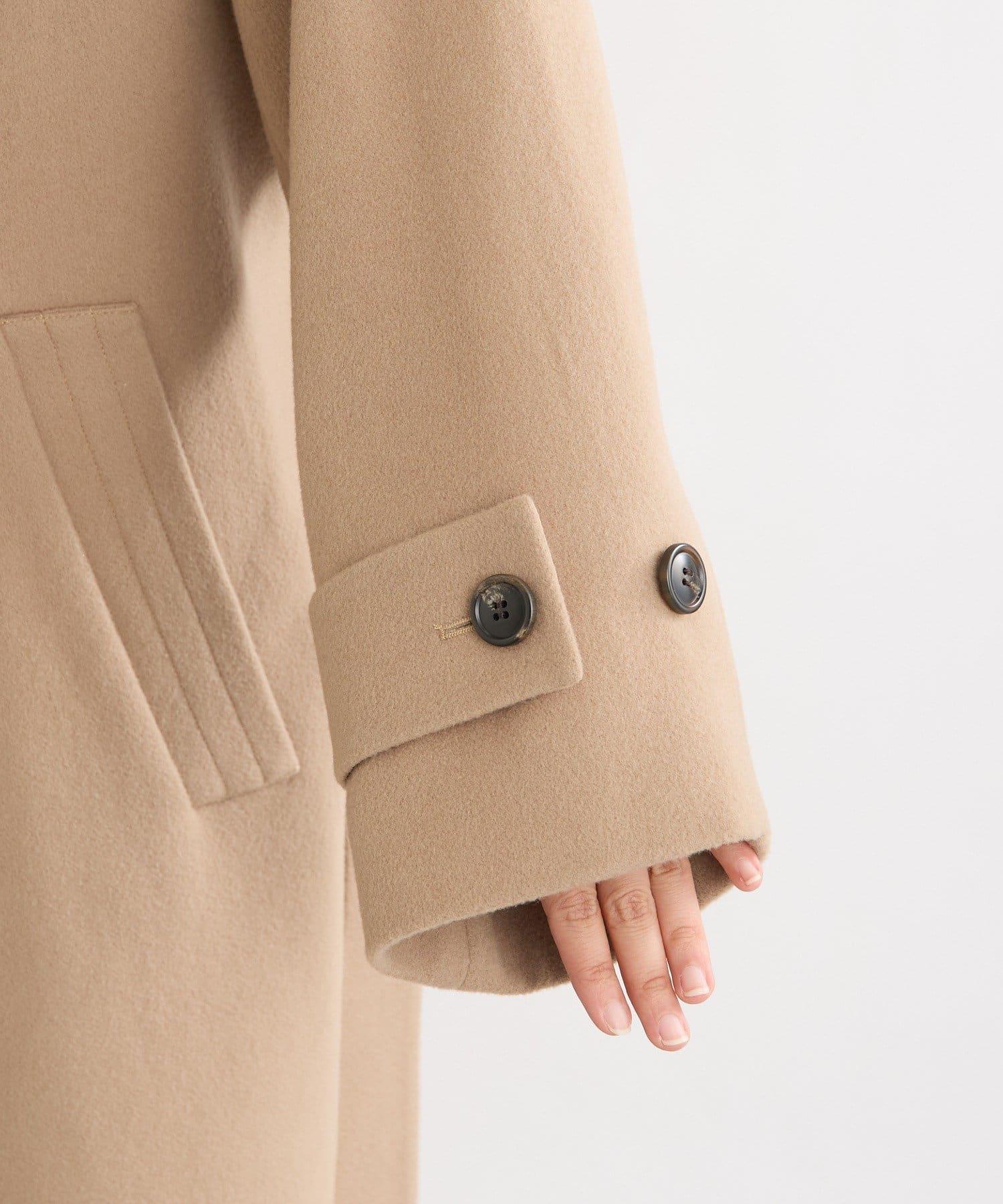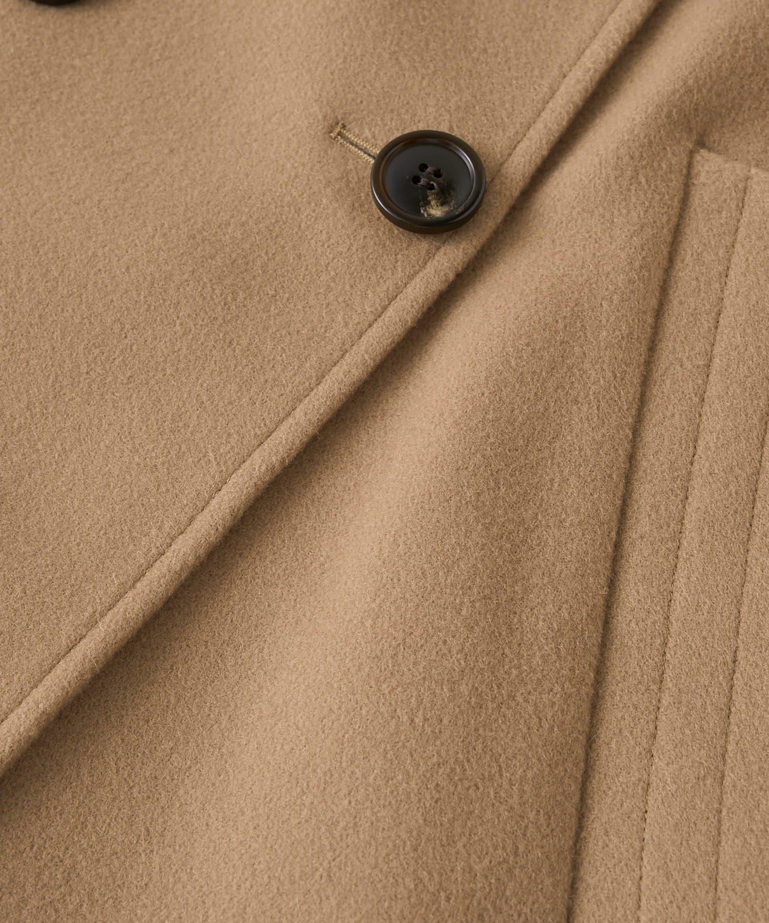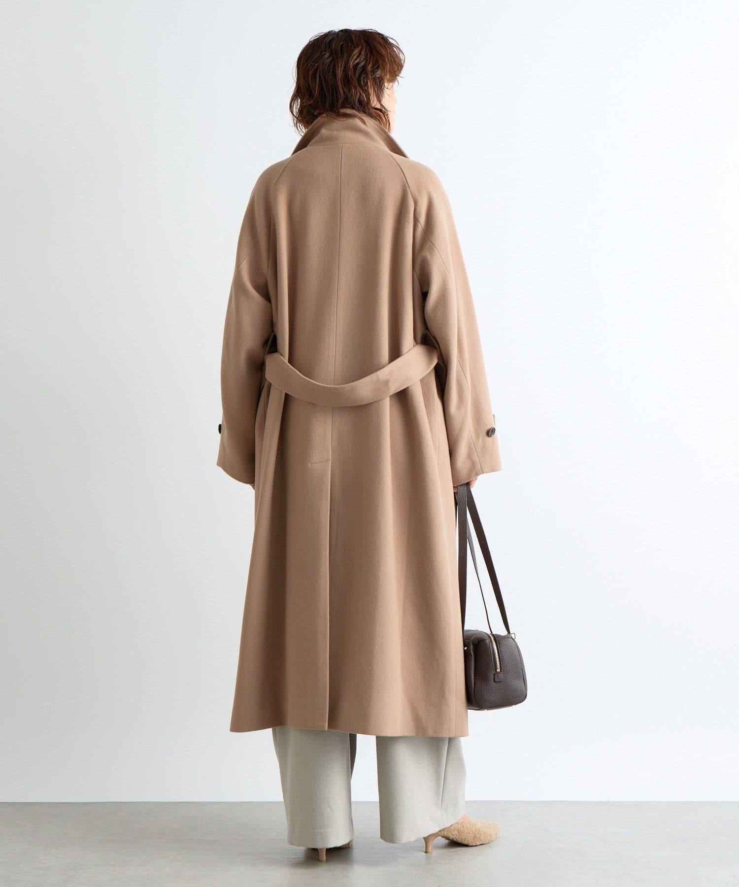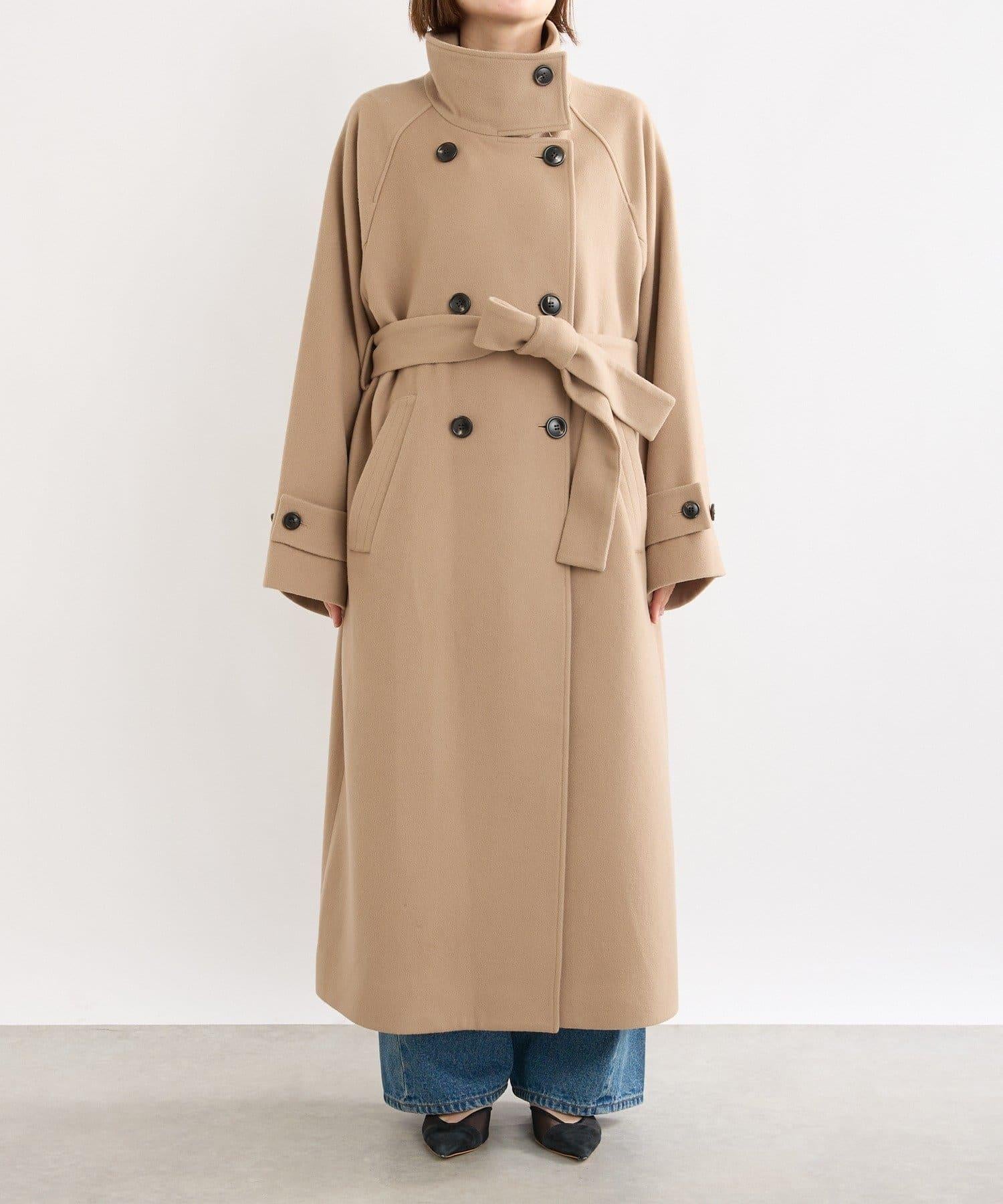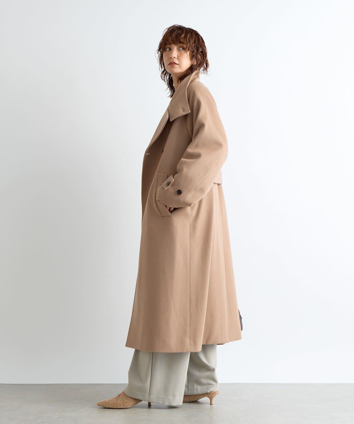 領口設計的大衣很討人喜歡,可立穿也可平放。
